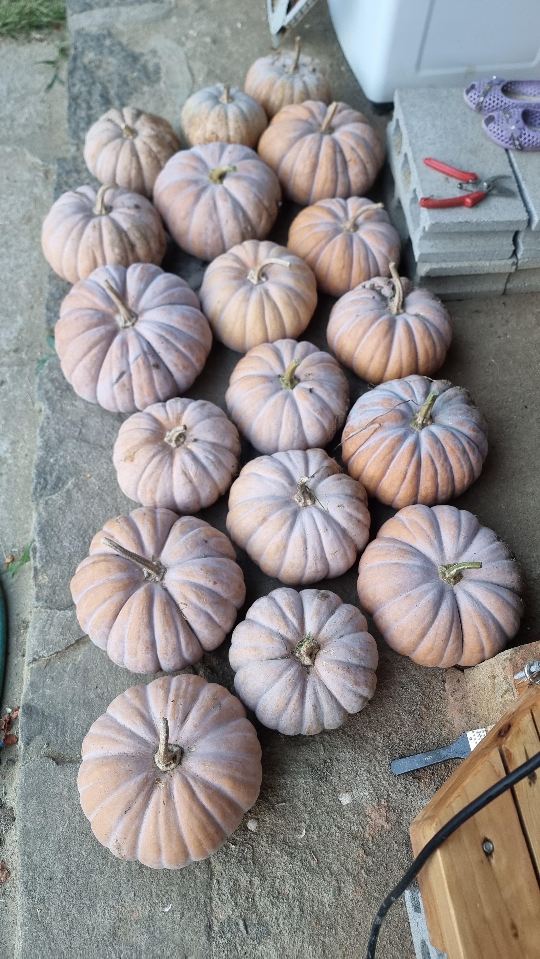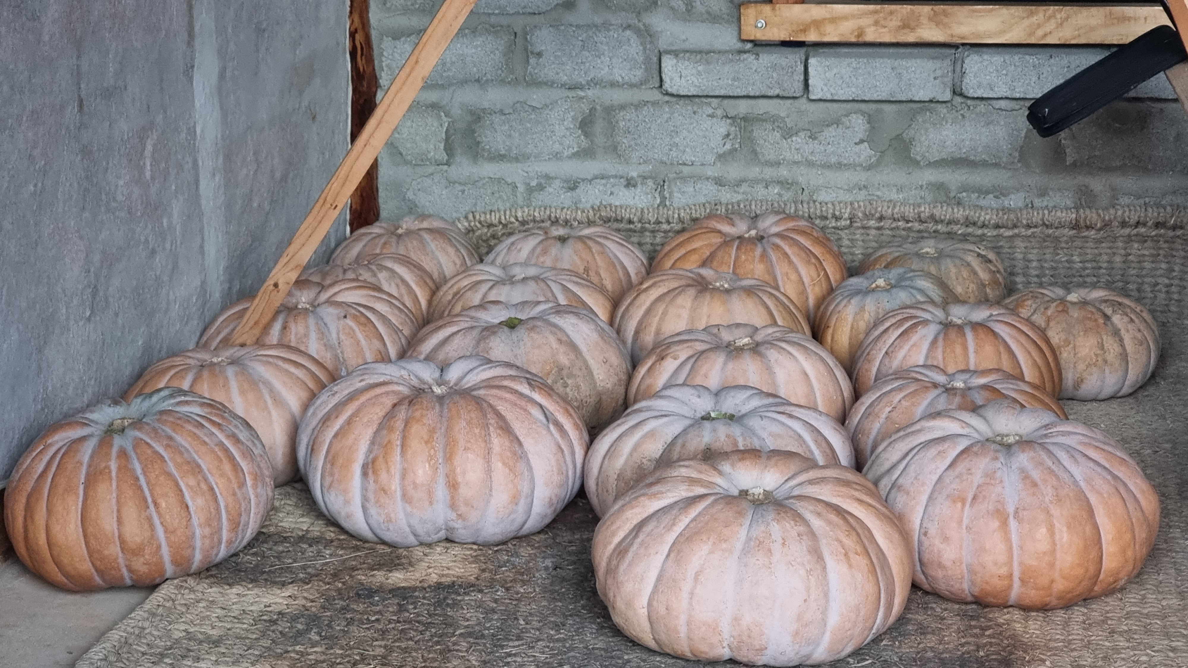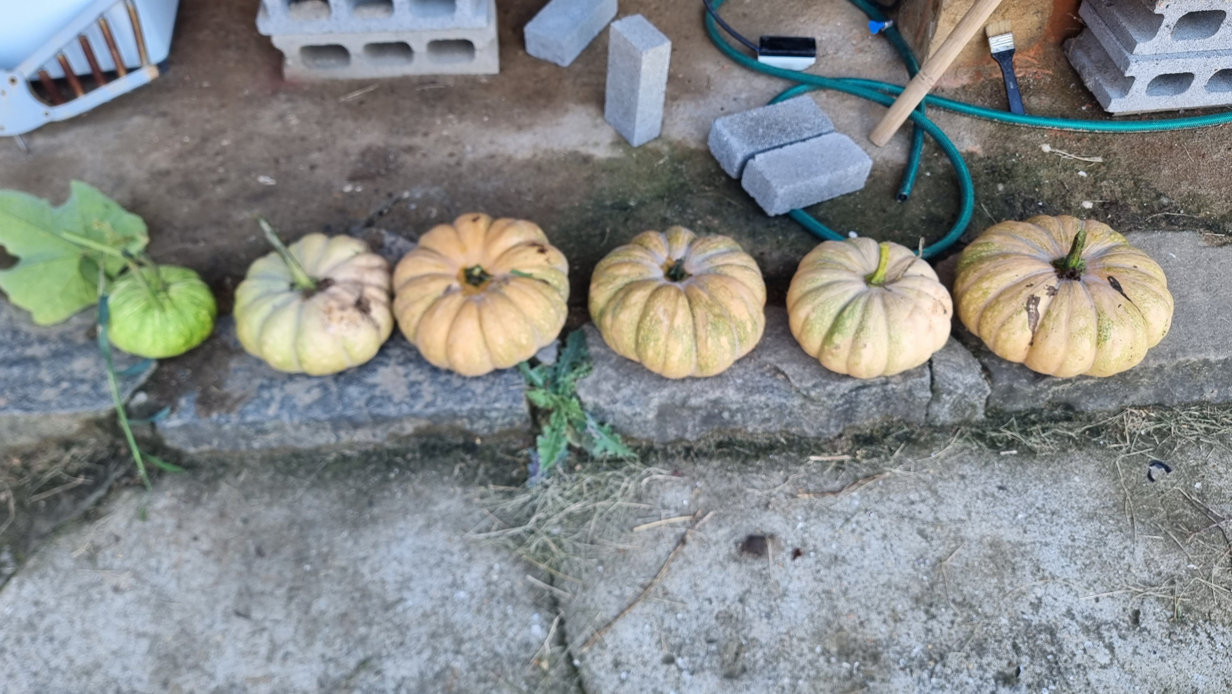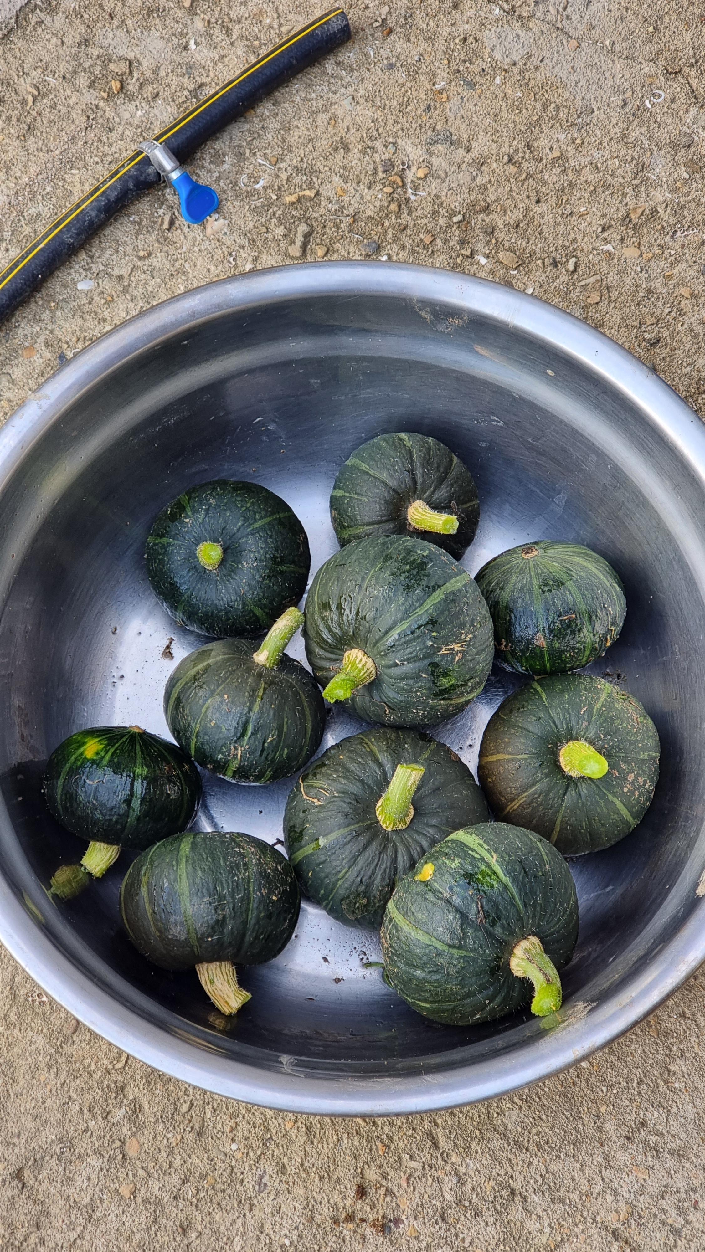 - 어제보다 오늘이 더 맑은 날이다. 그렇다면 더 더운 날이 된다는 것이지. 간단한 아침 일정을 하고 나서 단호박을 완전 철수시켰다. 오늘 마지막으로 딴 것이 9개니, 얼마 전에 딴 2개를 포함해서 큰 것이든 작은 것이든 총 124개를 딴 것이다. 딴지 제법 시일이 지난 것과 함께 가끔 쪄 먹거나 밥할 때 넣어 먹는 재미가 있을 듯하다. 오늘은 호박도 5개 땄다. 작고 둥근 호박은 무슨 종류인지 모르겠다. 맷돌 호박은 밭에 아직 10개 정도가 더 있다. 이런 호박은 쉽게 요리해서 먹을 수 있을 것 같지는 않은데, 물론 호박전을 부치거나 호박죽을 끓여 먹기도 하지만 이 호박들도 쪼개어 밥할 때 조금씩 넣어 먹어도 괜찮을 듯하다.