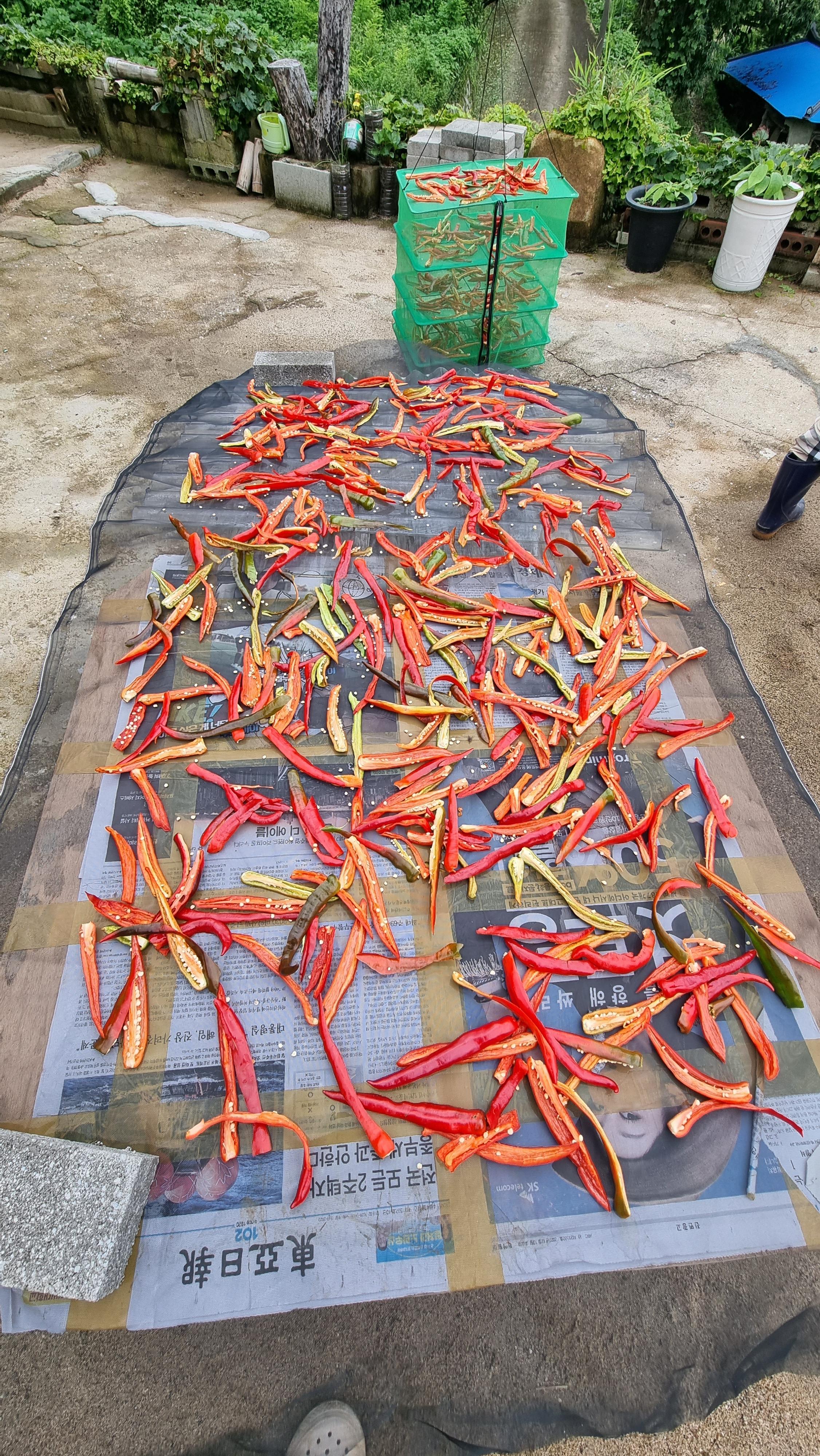 - 아침을 먹고는 어제 딴 고추와 아침에 딴 가지를 말리는 작업을 좀 했다. 날씨가 좋지 않아서 잘 마를 것 같지가 않다. 그래서 선풍기 좀 틀어 놓기도 했다. 요즘은 고추를 말리는 데 건조기가 없으면 안될 것 같아 주문을 했더니만 내달 10일 정도에 배달이 된단다. 해외 직구인 모양이고 배달가능일을 체크하지 못한 내 탓이다. 낮에 비가 조금씩 내리기도 했다. 또 태풍이 오고 많은 비가 온단다.