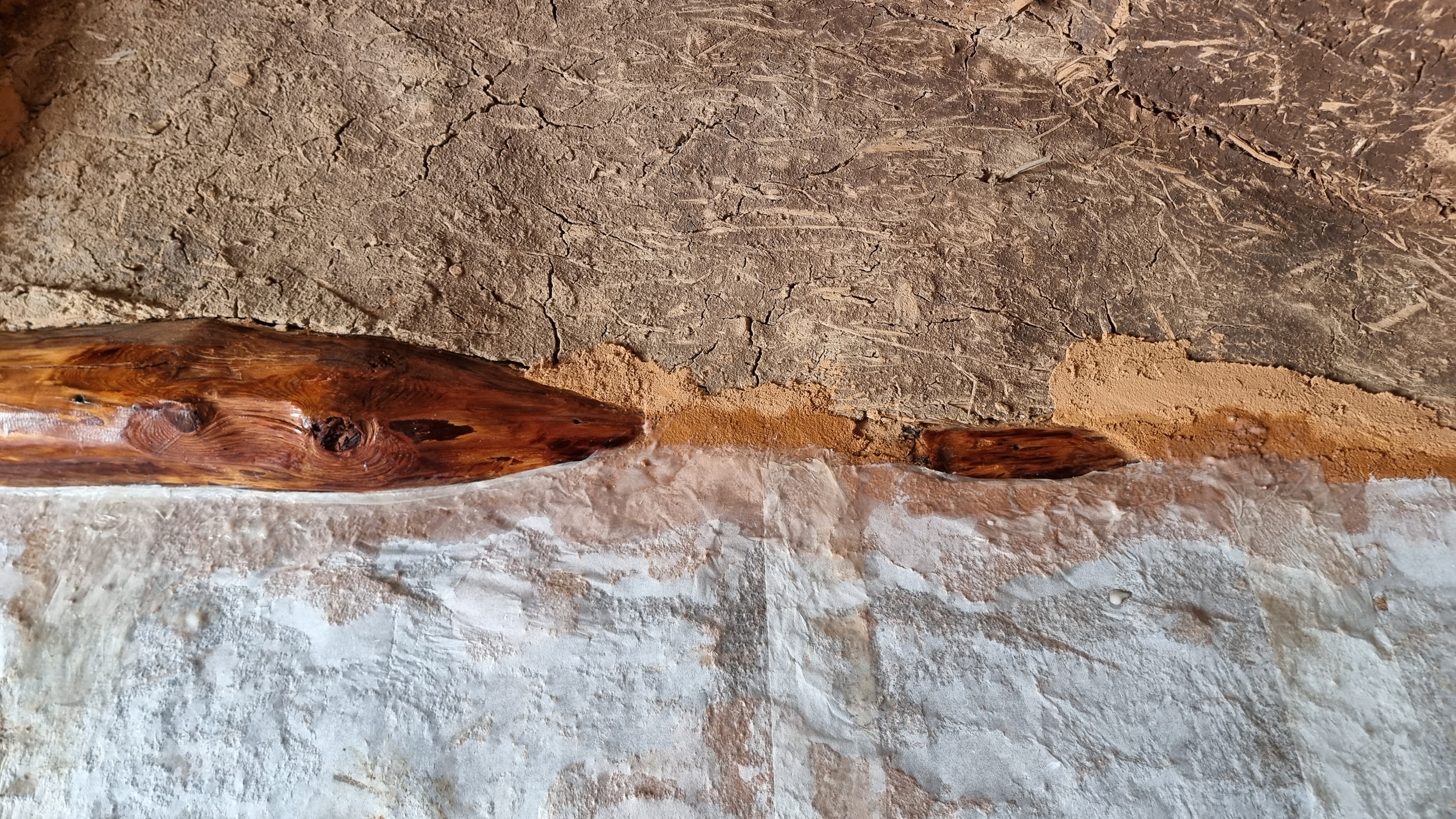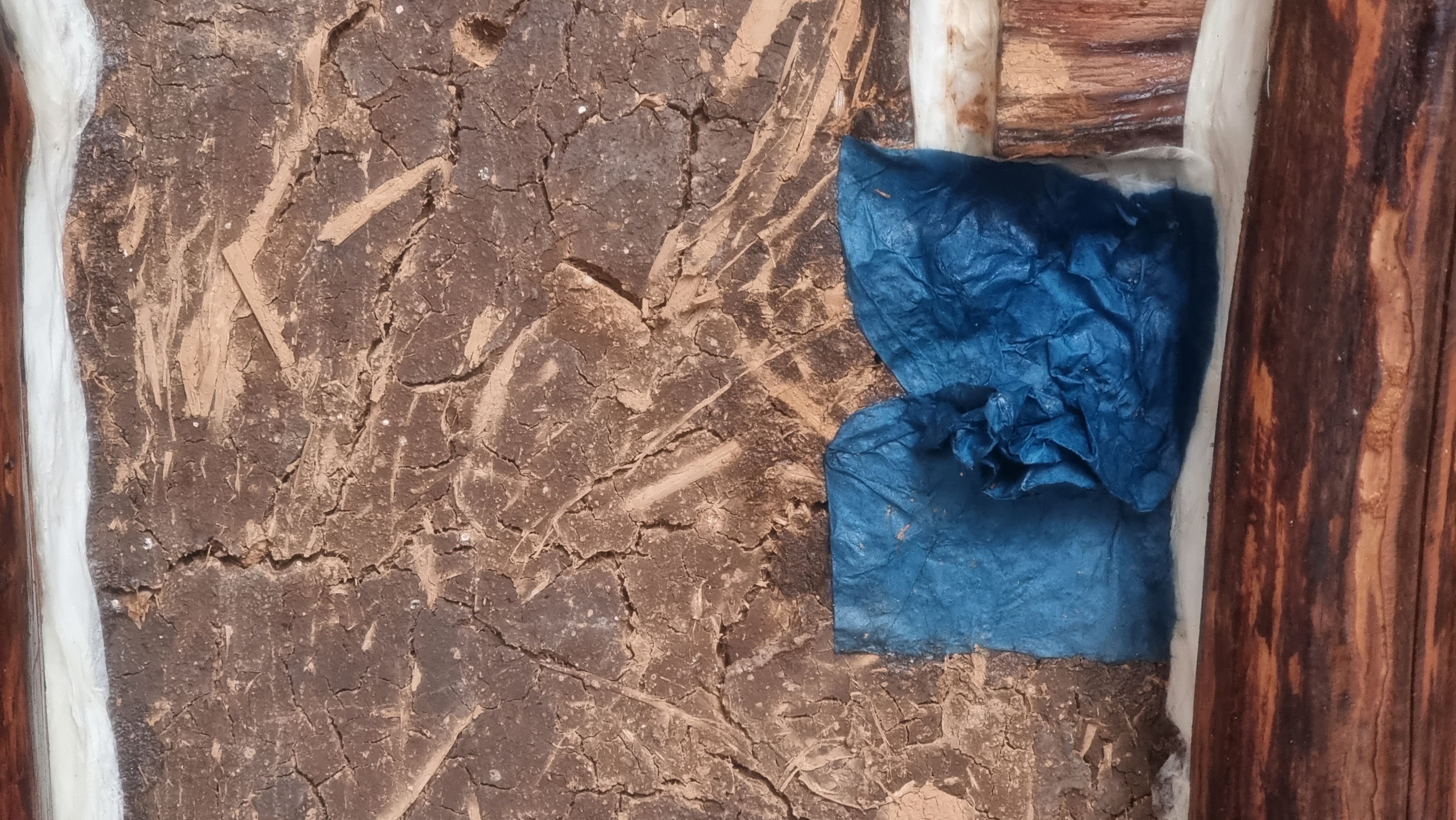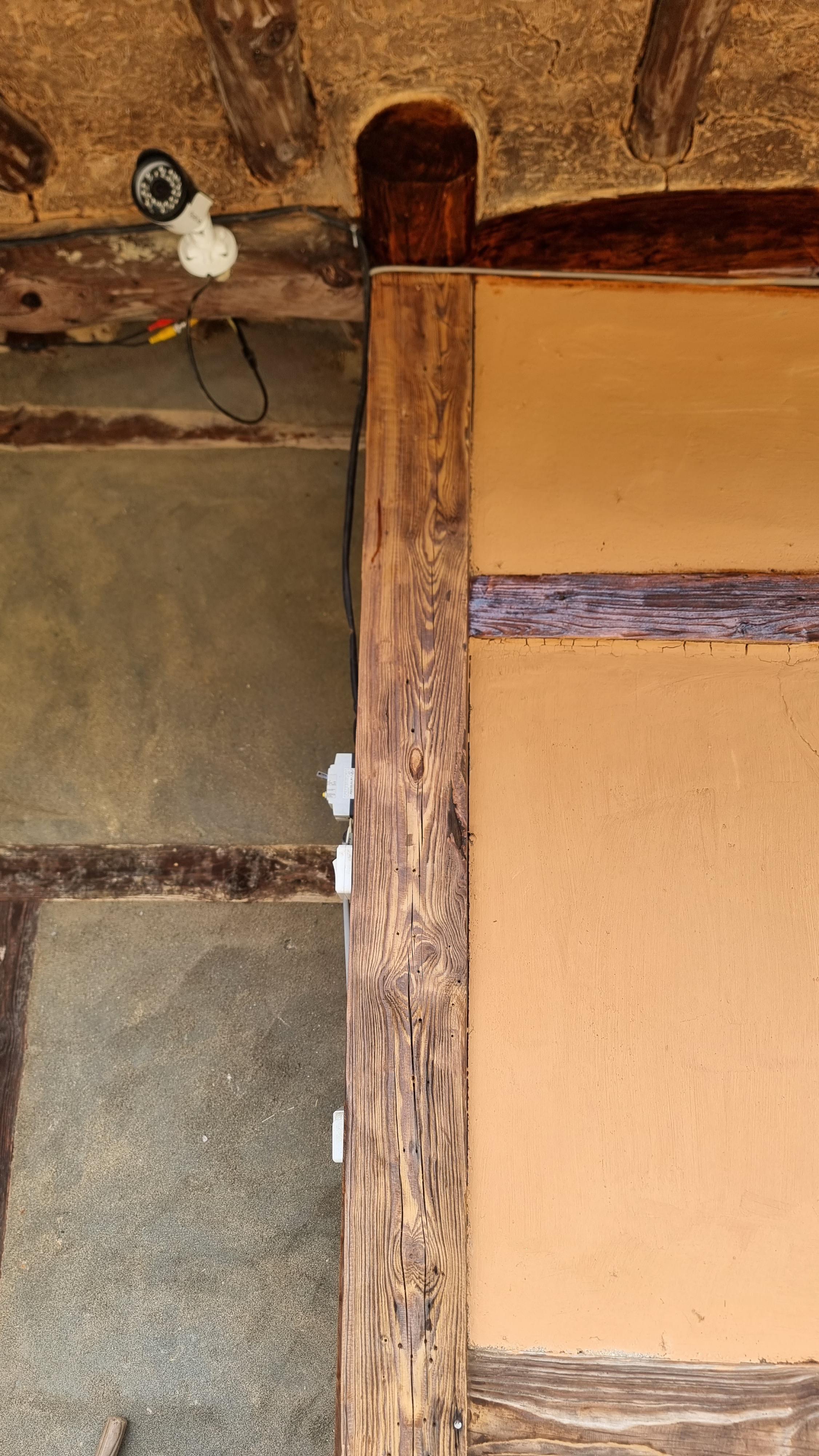 - 생각대로라면 옛날 황토벽 그대로 두고 싶지만 워낙 오래된 벽이라 가끔 흙들이 떨어지기 때문에 이를 막기위한 최소한의 조치로 하는 거다. 얇은 한지를 우퉁불퉁한 벽에 바른다는 것이 쉽지는 않았다. 처음 서너 번은 실패를 해서 큰 한지 한 장 정도는 버려야만 했다. 그래서 큰 한지를 4등분 정도로 잘라 조각조각 붙이기로 했다.