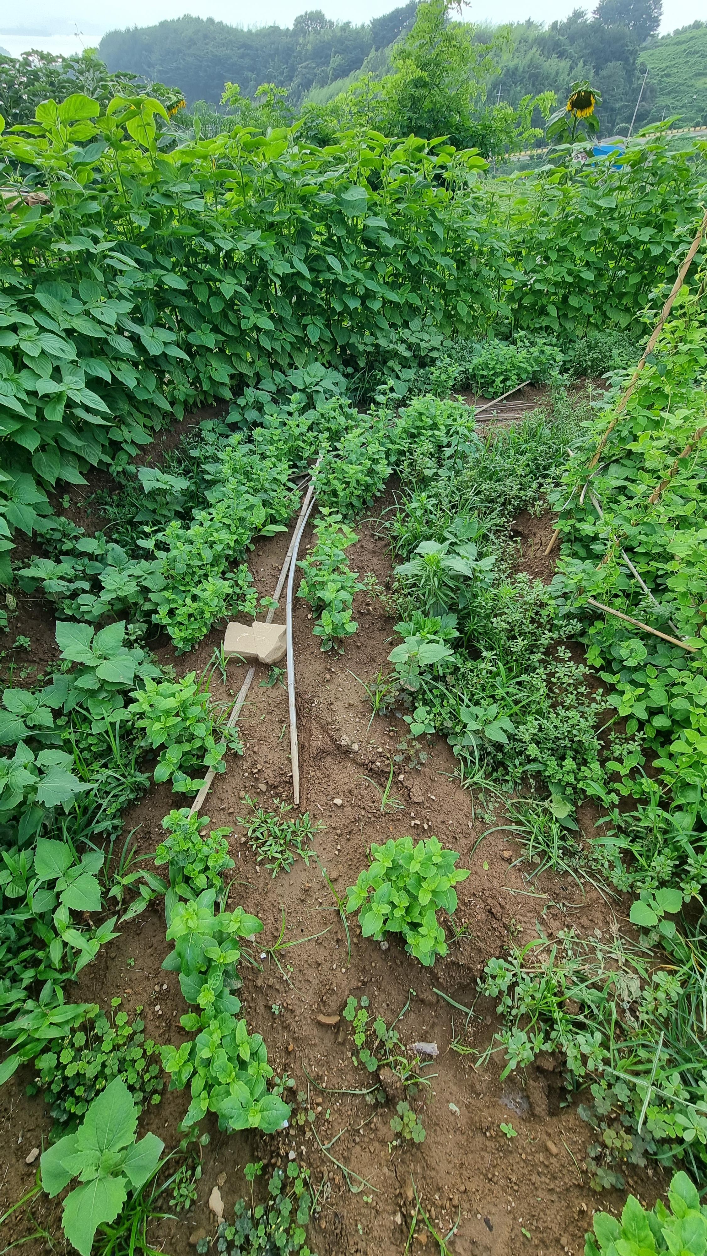 - 새벽에 날이 밝기 전까지는 엄청난 비가 쏟아졌다. 신기하게도 날이 밝아지니 잦아 들었고, 처마 밑에서 하기도 했지만 마당에서 운동도 할 수 있었다. 종일 비가 왔다 갔다 하는 하루였다. 거의 실내에서 있었고, 비가 그친 틈을 타서 뒷밭을 잠시 둘러보기도 했다.