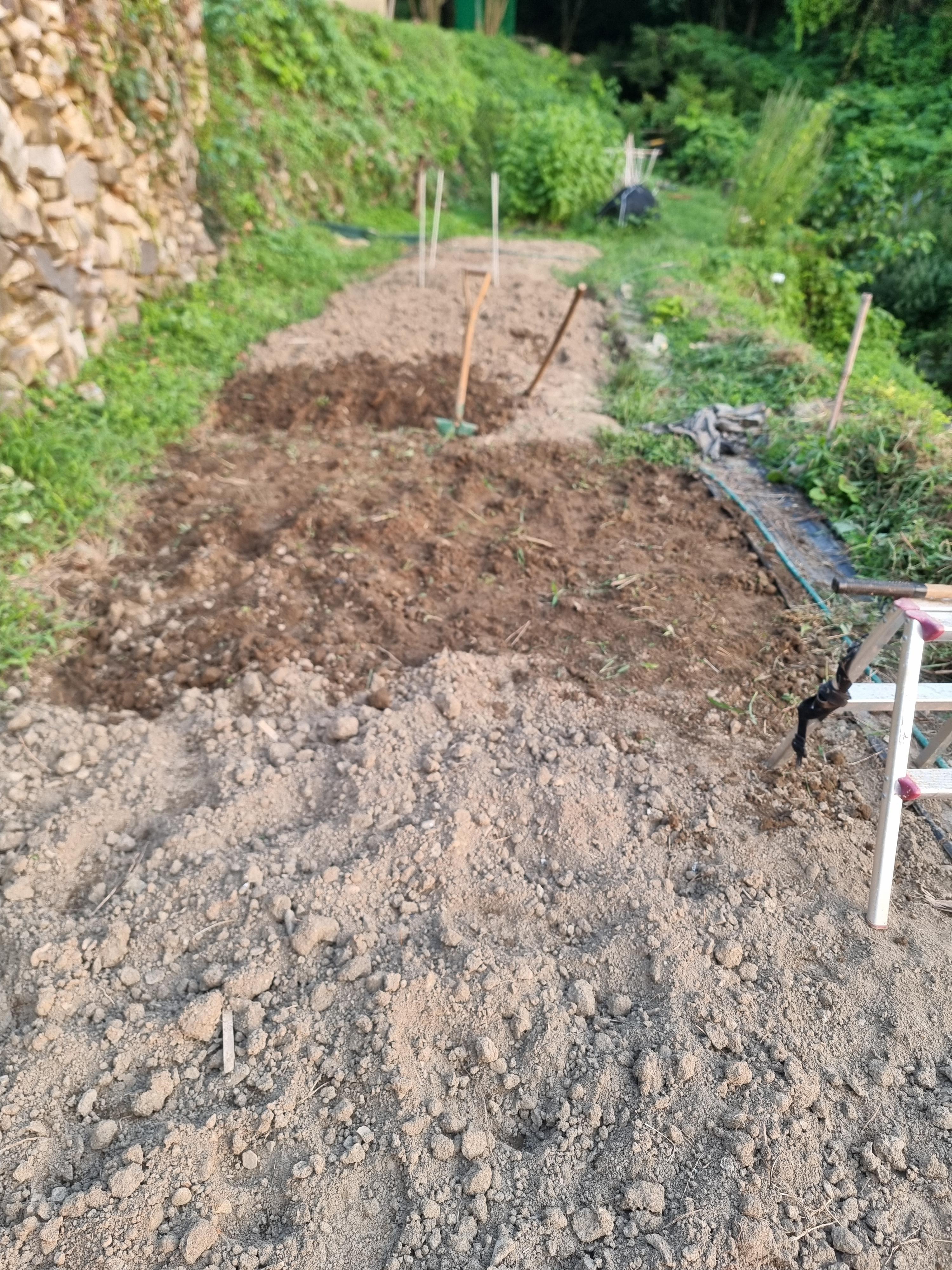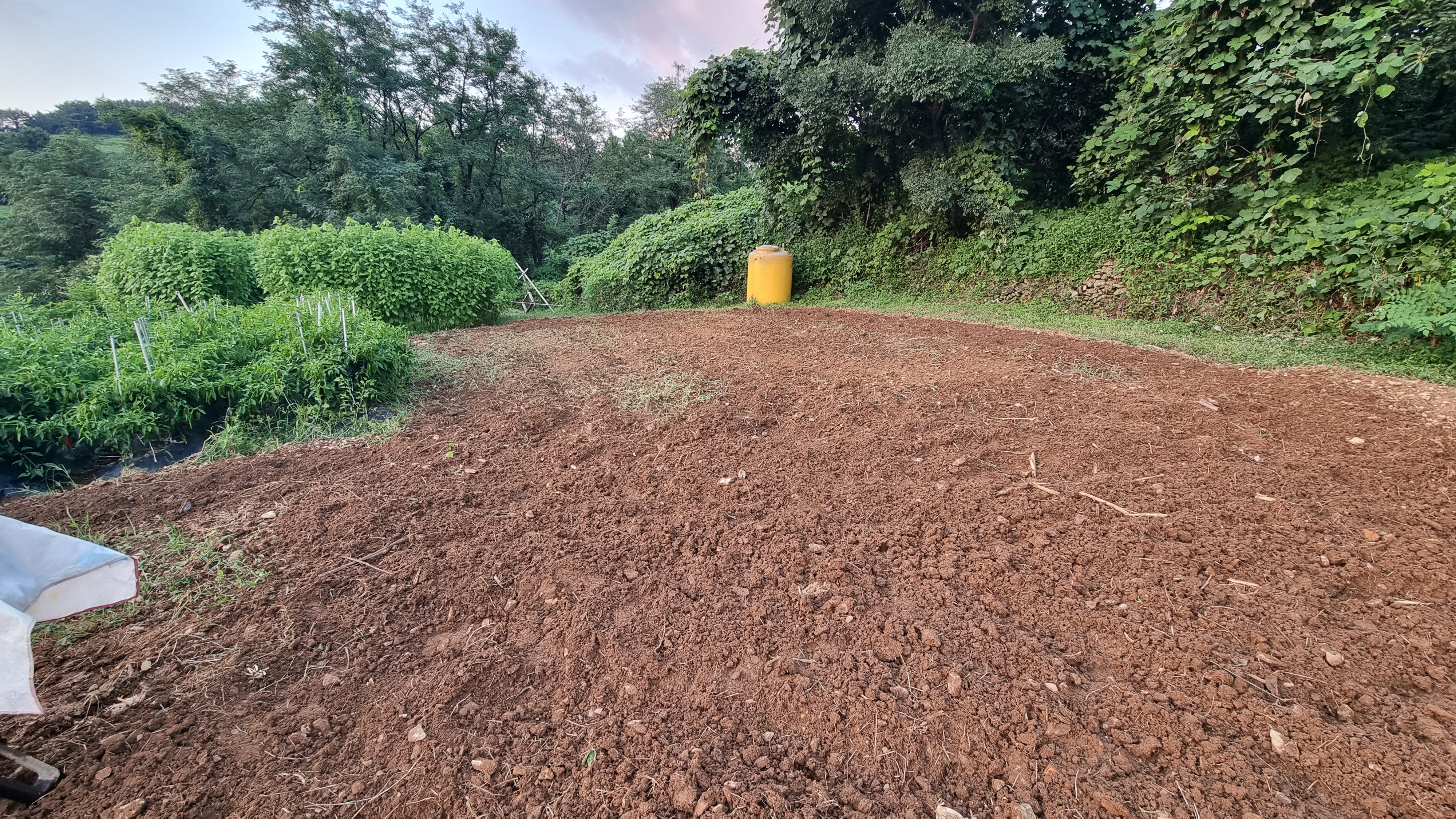 - 아침 일찍 일어나 잠시 체조를 하고는 바로 채소밭 일구기 작업을 시작했다. 지금 일구는 채소밭은 김장 채소를 심을 곳인데, 봄에 단호박을 심어 수확했던 곳이다. 쇠스랑을 사용하기도 하고, 삽을 사용해서 파기도 했다. 김장 채소를 심을 땅을 일구기 위해서는 깊이 파 일구어야 한단다. 우선 전체적으로 한 번 뒤집은 후 얼마 후 비닐 멀칭을 할 때 한 번 더 뒤집어야 할 듯하다.