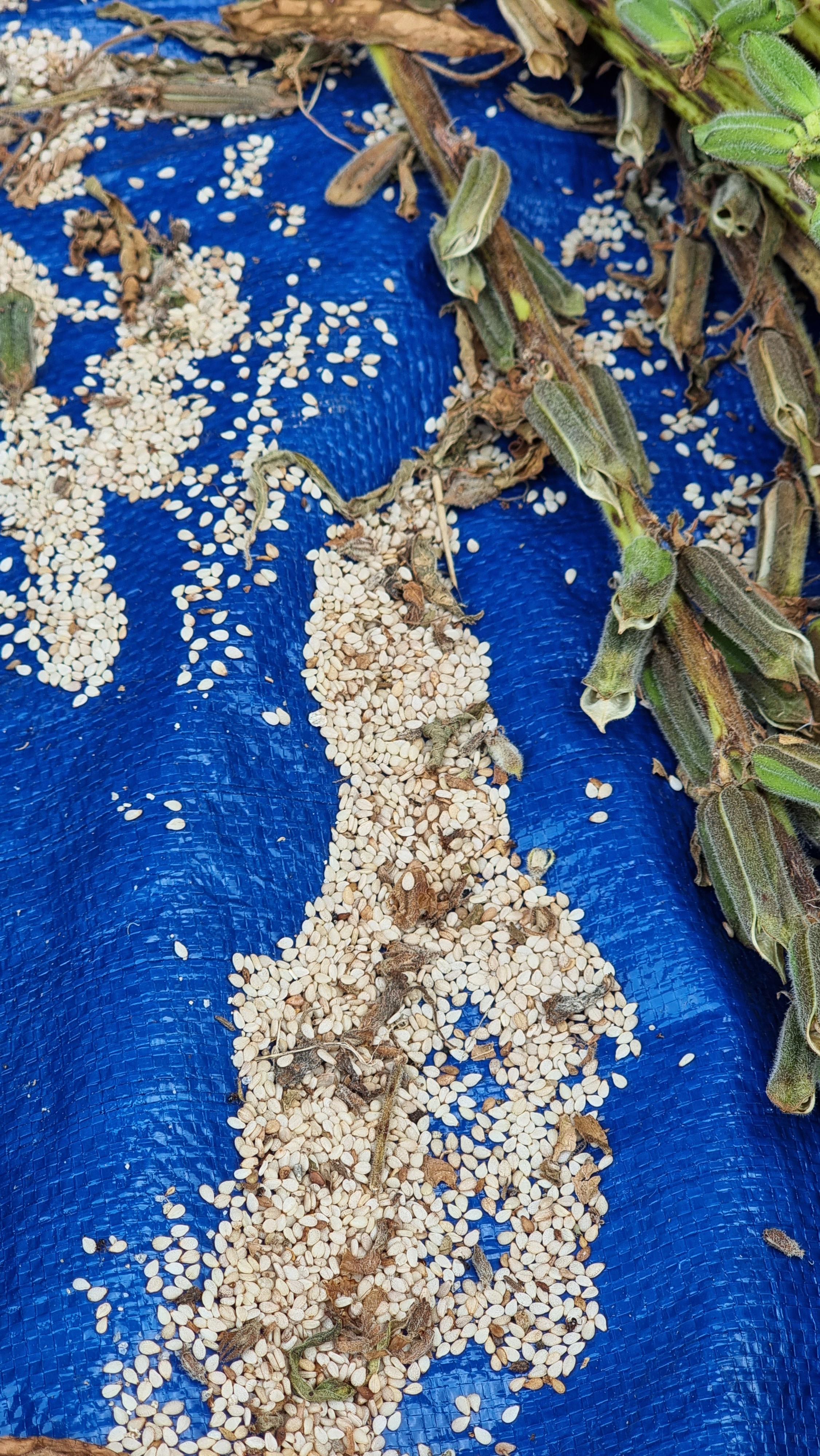 ◈ 23.08.20 - 남해, 일(맑음) : 참깨 수확, 경운기 운행 연습, 참깨 털기 등.
