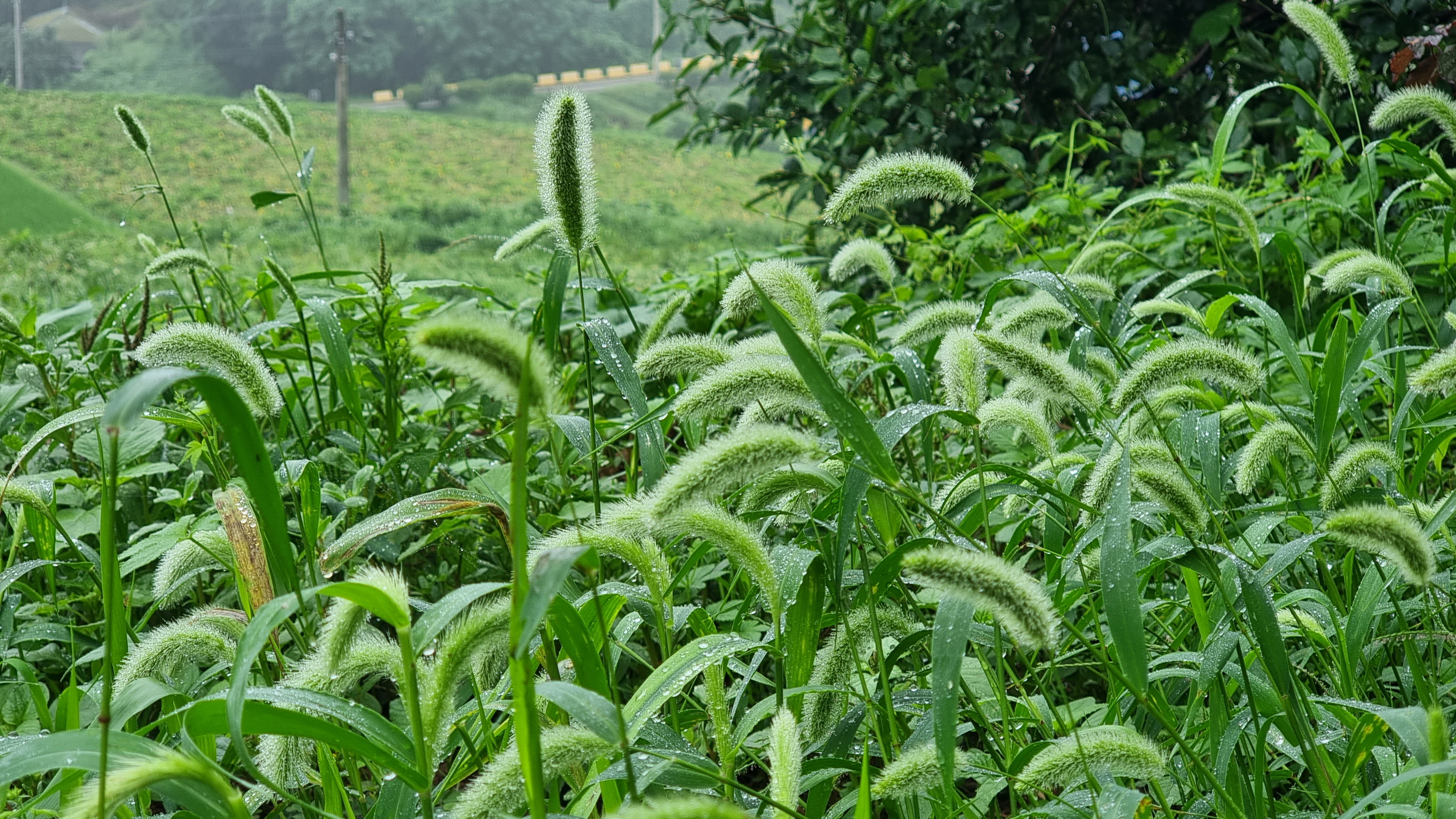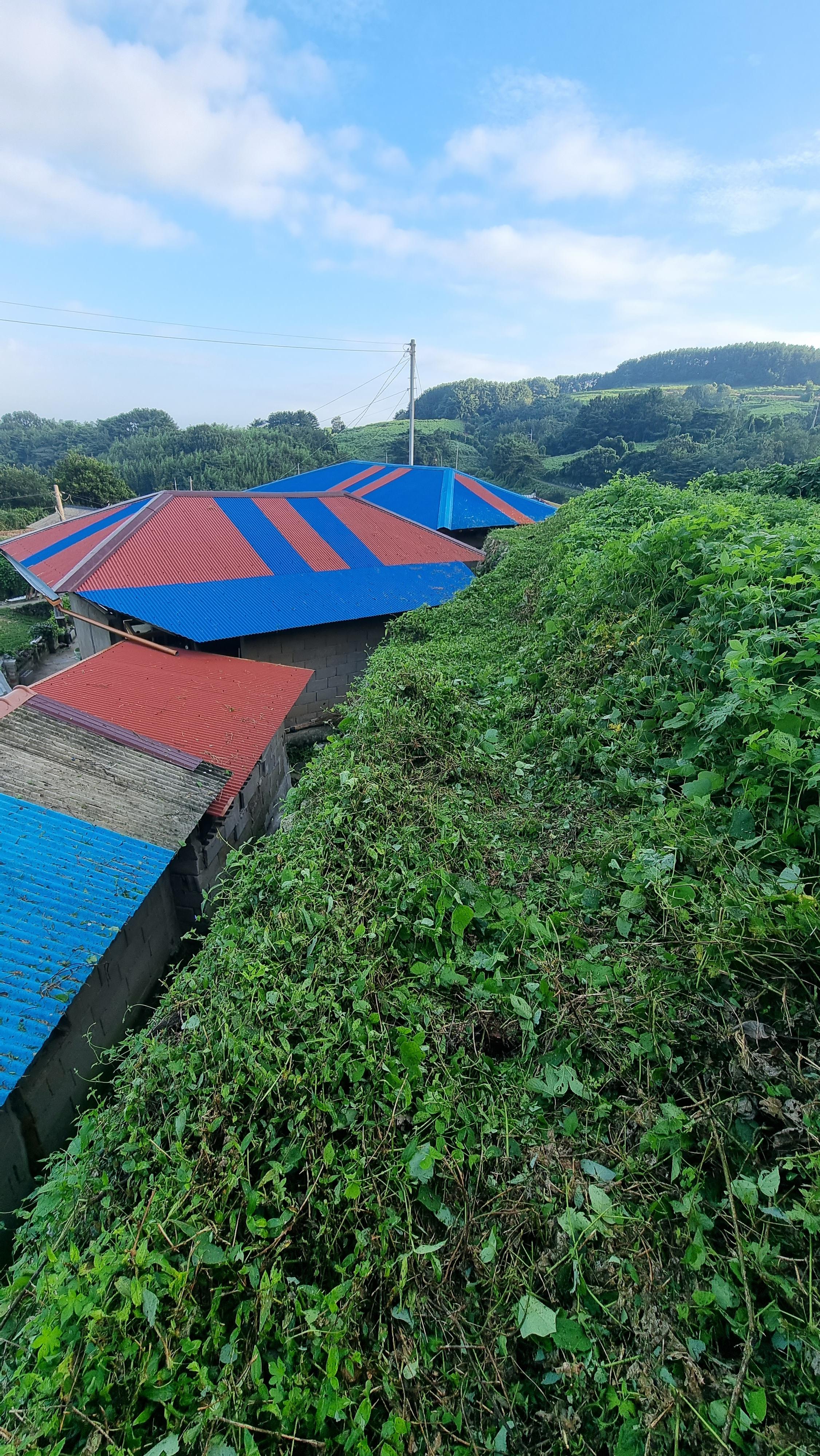 - 아침 운동을 마치고 바로 쓰레기 봉투를 배출 장소에 갔다 두었다. 그리고는 예초기를 메고 또 예초 작업을 했는데, 이번에는 집앞 진입로와 본채와 아랫채 뒷편, 밭으로 가는 길 등을 했다. 집 뒤편에서 예촉작업을 하고 나면 우리집 지붕 위에는 그 잔재들이 흔적을 남긴다. 한차례 많은 비가 내리거나 태풍이 오고 나면 또 깨끗해진다.