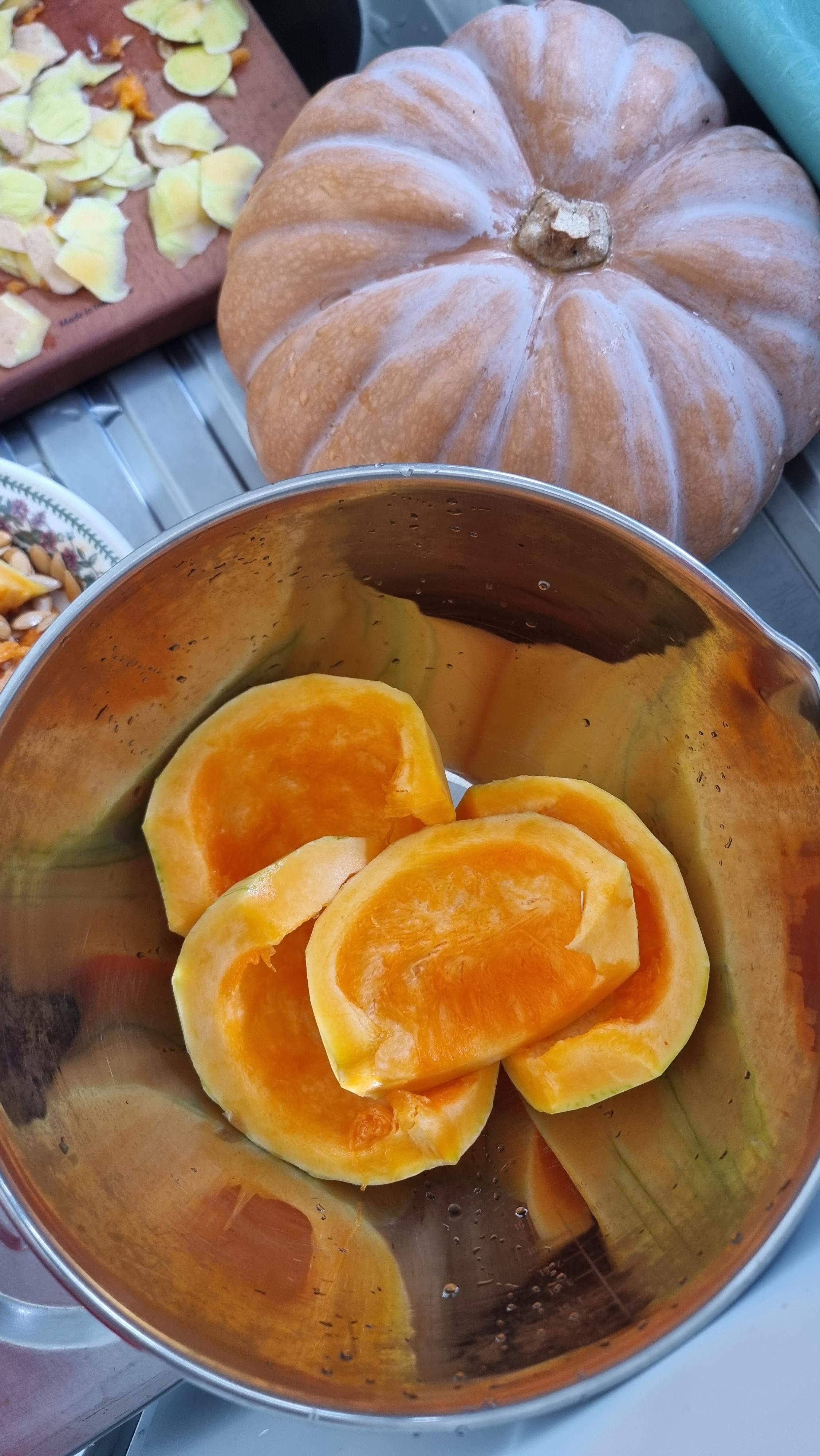 - 오후에는 몸 컨디션이 좀 좋지 않다. 이곳에 와서 처음 느껴보는 현상이다. 몸살기 같은 것인데, 열이 조금 있고, 목에 가래가 조금 끼고, 조금 욱씬 거리고....큰 몸살은 아닌 듯한데, 오늘 자고 일어나봐야 알 듯하다. 오늘 저녁에는 '늙은 호박' 하나를 쪼개어 일부는 썰어서 말리고, 또 한 조각은 밥할 때 넣었다. 호박을 밥할 때 넣으면 솥에 물을 평소보다 적게 부어야 하는 것은 당연할 텐데, 어느 정도 줄여야 할지 감이 오지 않는다. 그래서 평소보다 2/3 정도 넣고 밥을 했다. 밥이 적당한 상태다. 주부화가 되어가는가 보다.
