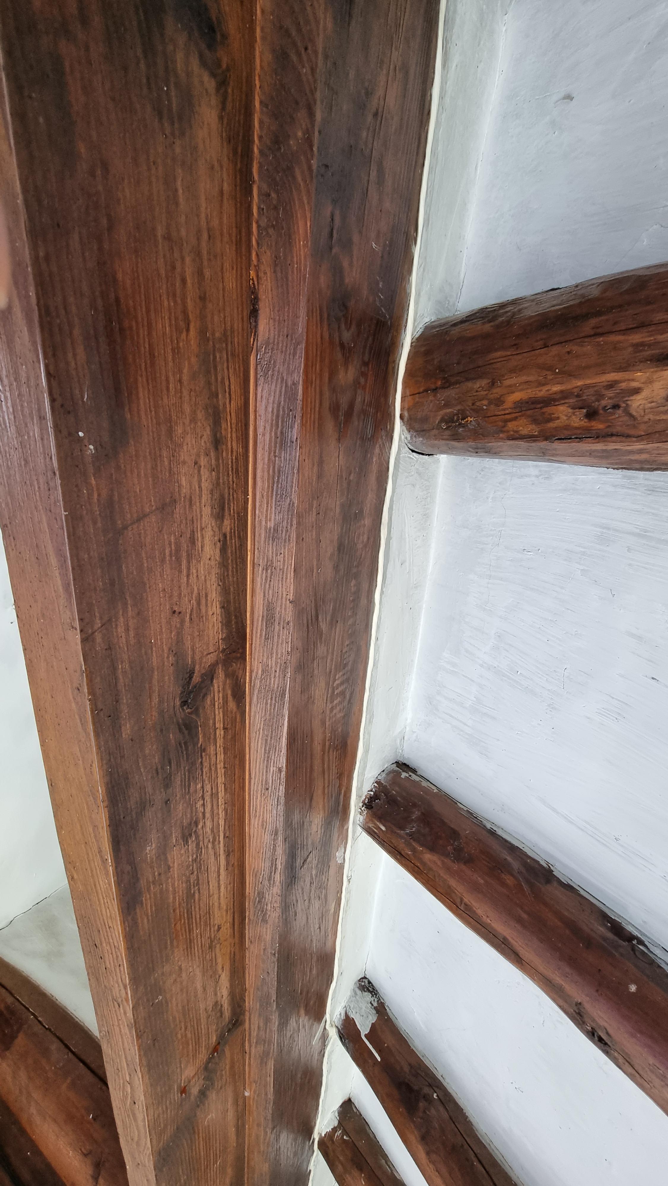 - 오늘 하루 내내 천장의 서까래와 벽면 사이 틈을 메우는 일로 다 보냈다. 사다리에 올라가 그 틈새에 작은 붓으로 풀을 바르고 한지에 풀을 묻혀 가늘게 꼬아서 틈 사이를 메웠다. 고개를 젖히고 천장을 보면서 하는 일이라 작업에 어려움이 있었다. 오늘 서까래의 반 정도를 했다. 다른 일을 하지 않고 그 일만 한다면 이틀 정도면 마무리 될 듯하다. 이 일이 끝나면 본채 마루 위도 그런 작업을 해야겠다. 바람이 심하게 불고 나면 마루에 흙들이 조금씩 떨어지곤 한다.