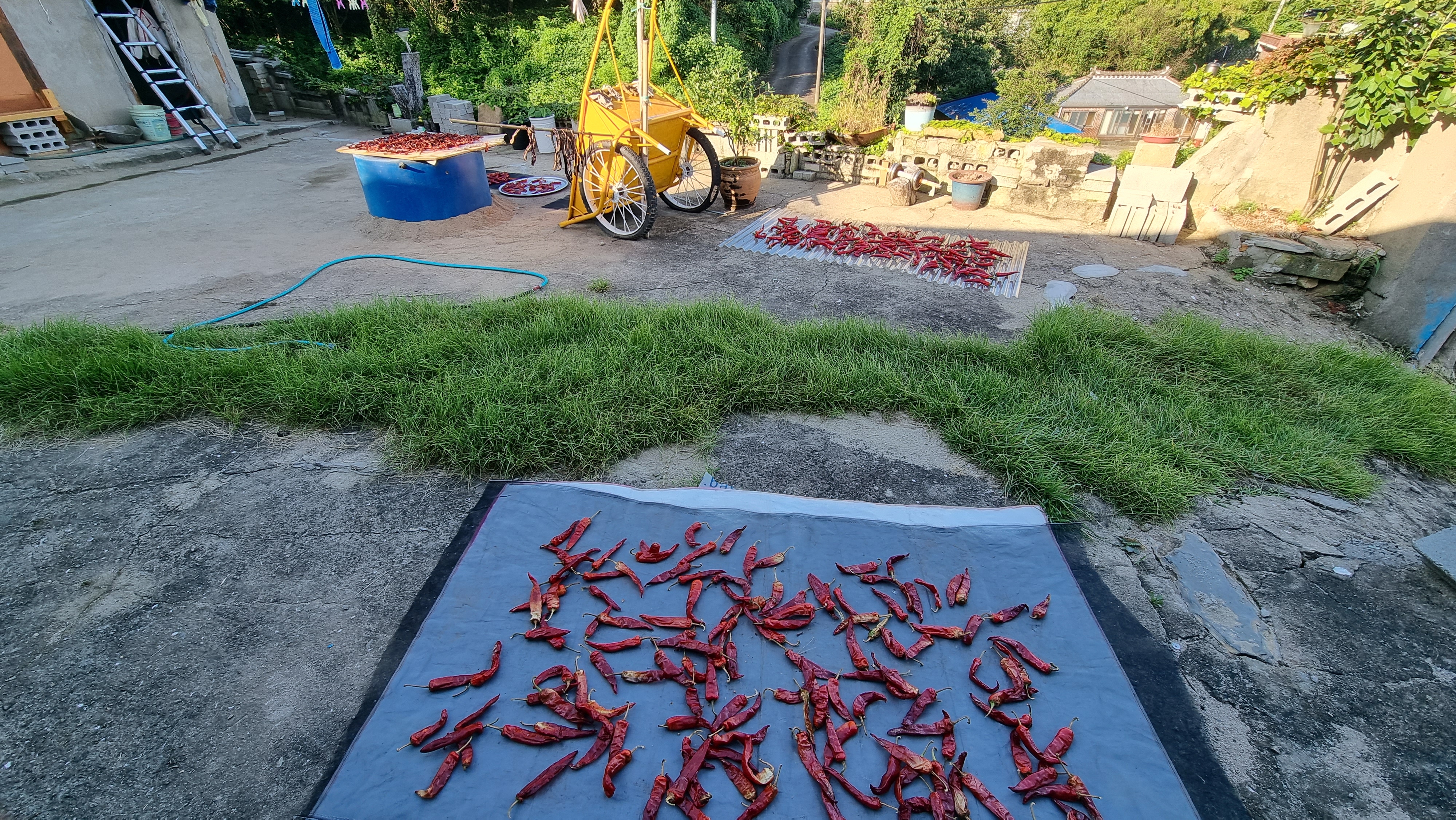 ◈ 23.07.22 - 남해, 토(흐림) : 예초 작업, 고추 및 가지 말리기 등.