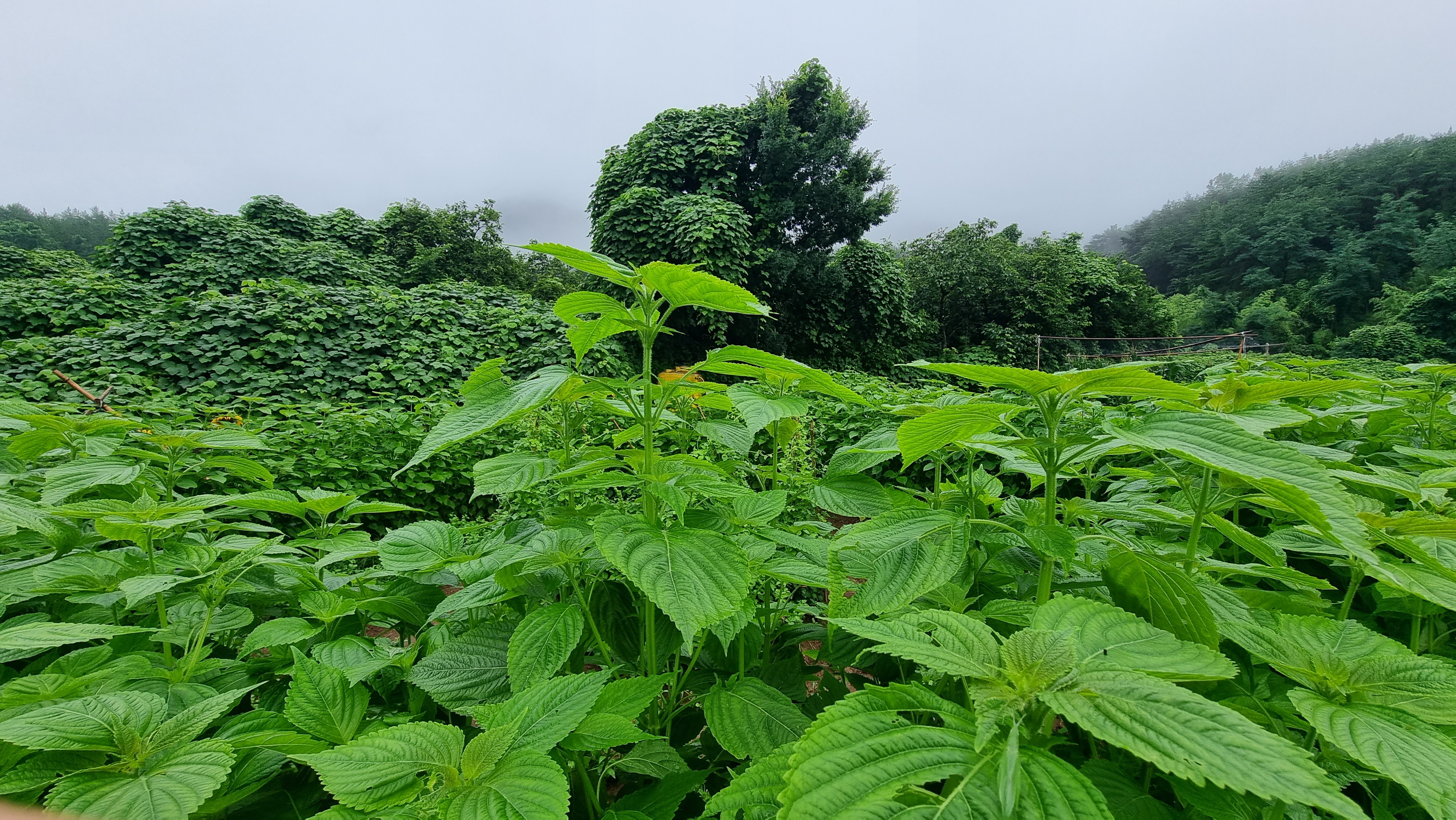 ◈ 23.07.04 - 남해, 화(비) : 들깨밭 풀 뽑기, 다락 쉼터 밑 벽 보수, 다실 창틀 등 니스 칠하기 등.