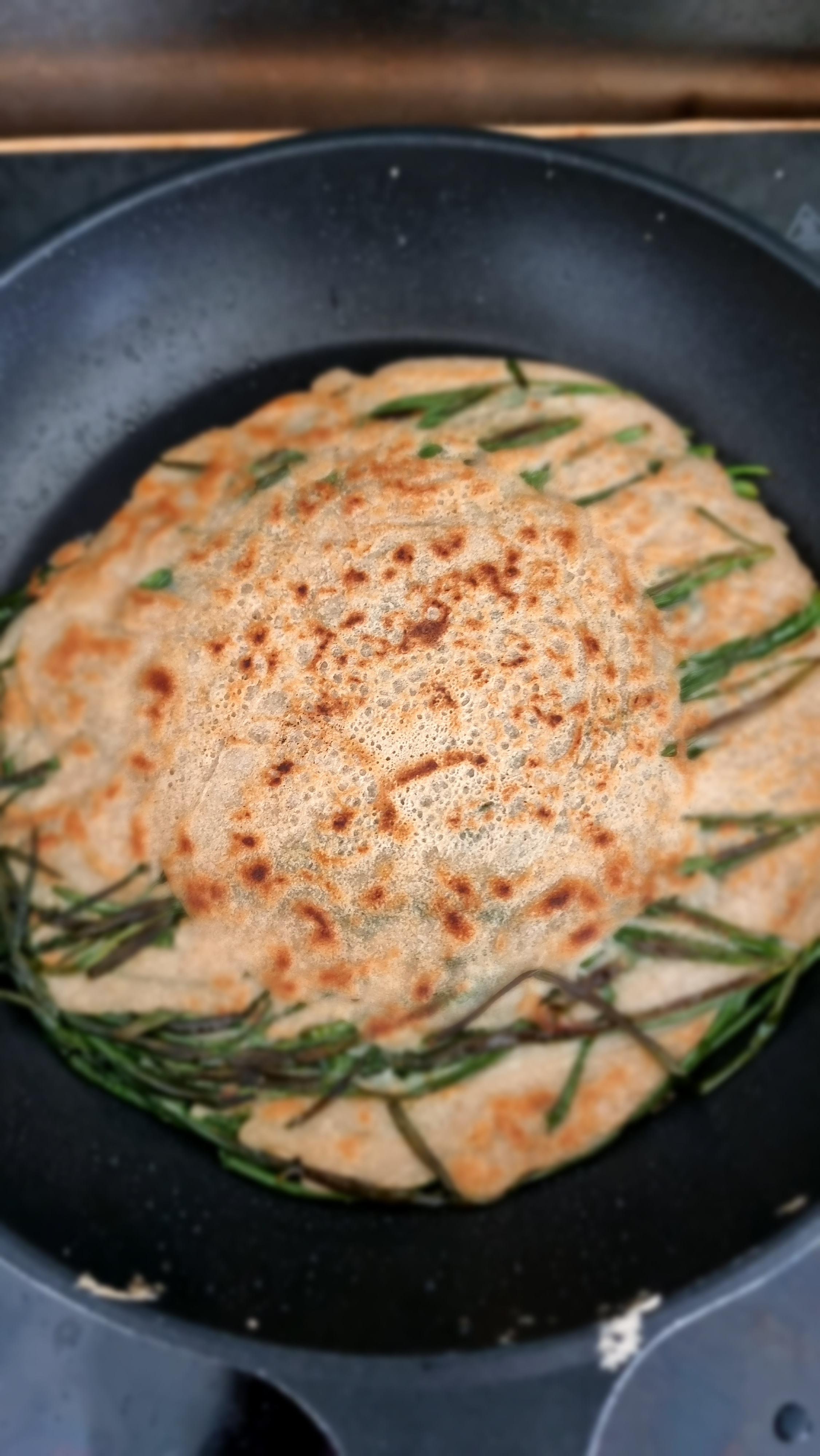 - 오늘 점심은 지금 한창 먹기 좋을 만큼 자란 부추를 조금 베어 부추전을 만들었다. 부추전은 처음으로 부쳐봤는데 후딱 뒤집기도 멋지게 성공했다. 메밀가루와 밀가루를 조금씩 섞고 소금을 조금 넣었는데, 그런대로 한끼 반찬으로는 훌륭했다. 낮에도 비가 내렸다, 맑았다를 반복해 밭일은 하지 못했다. 저녁 쯤해서는 그래도 날씨가 좋아 밭에 나가 돌을 좀 골라냈다. 그런데 큰 돌이 묻혀 있는 곳이 있어 팠더니 큰 돌이 제법 많이 나온다. 날씨 좋은 날 주위를 다시 한 번 파봐야겠다.