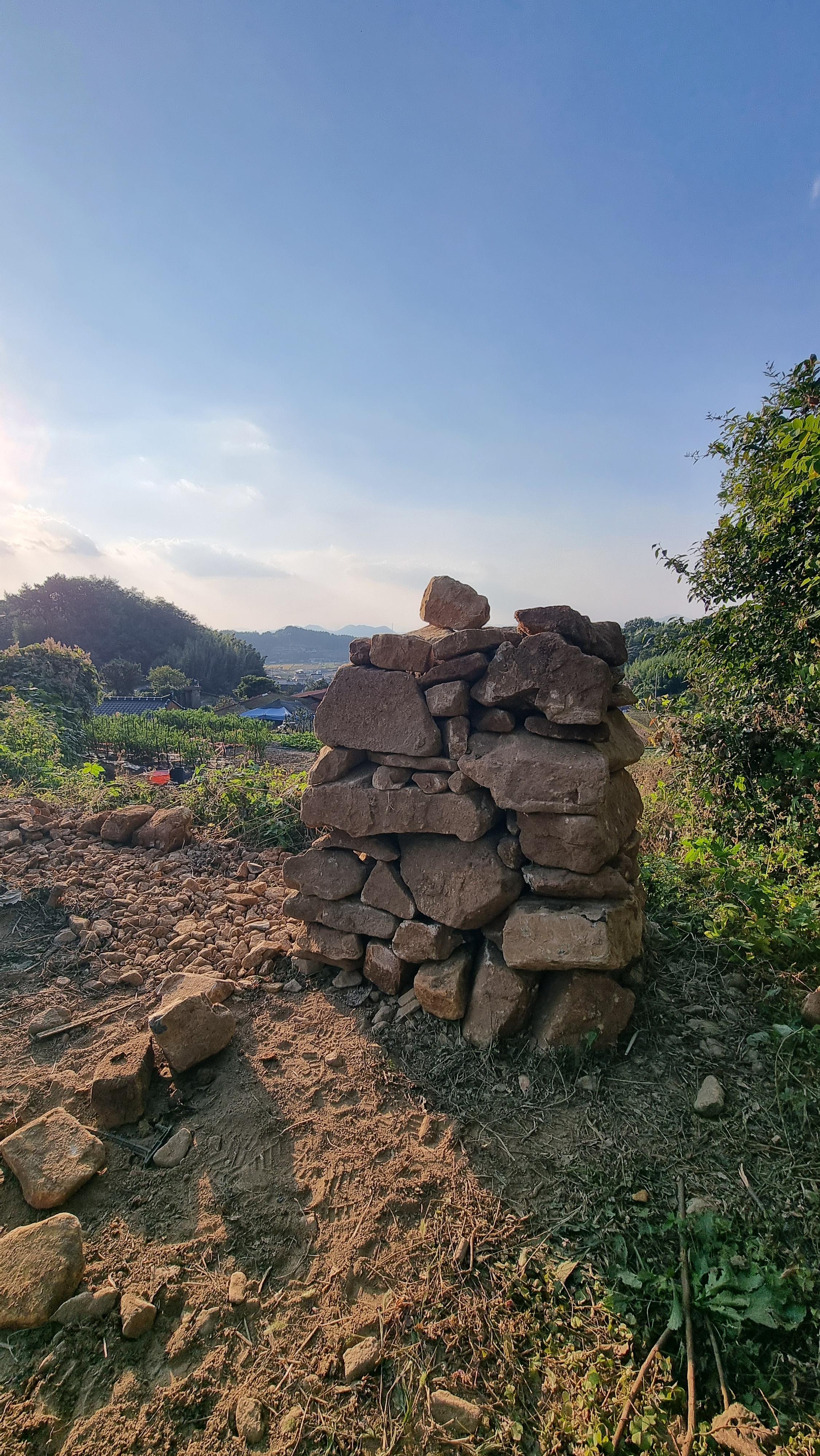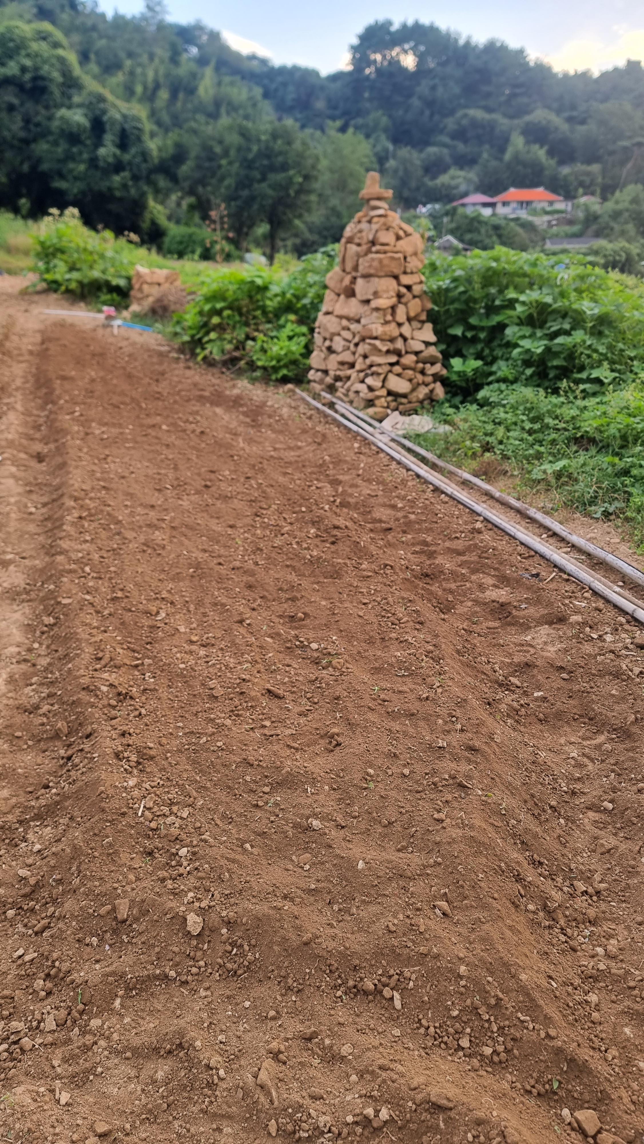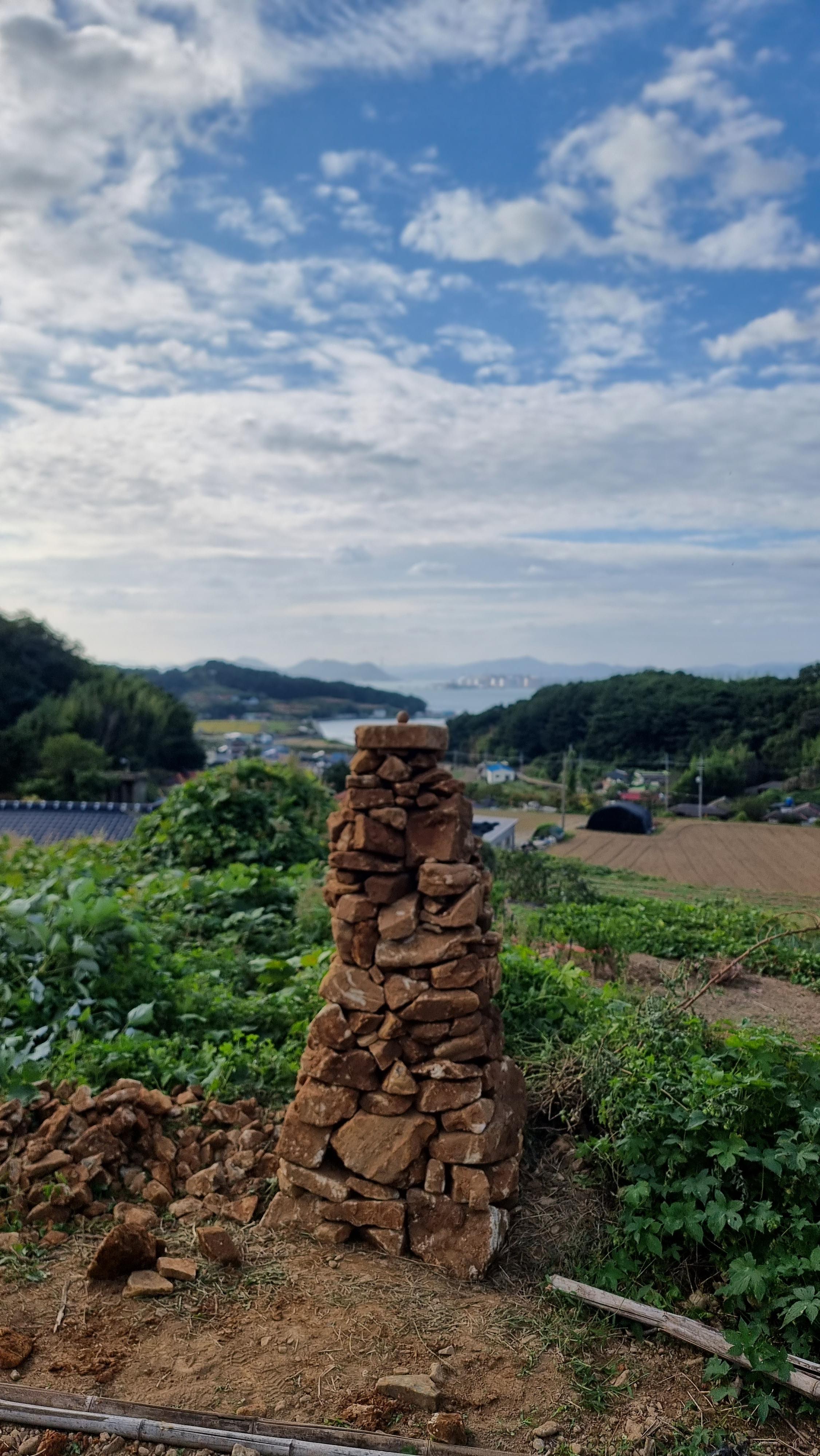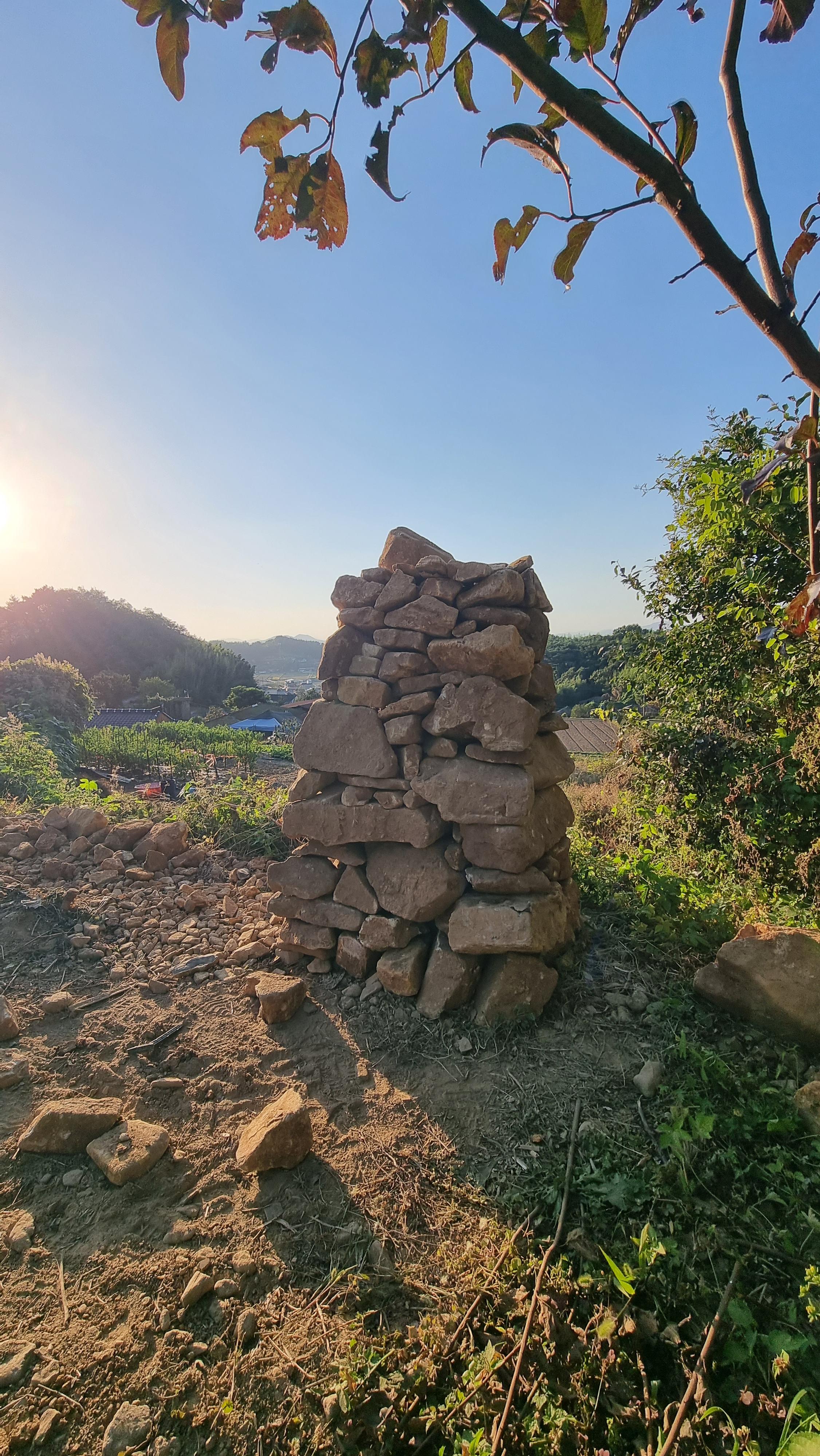 ◐ 2023.10.18 - 남해, 수 (맑음) : 채소밭 두둑 만들기, 밭에 돌 파내기 및 탑 쌓기 등.