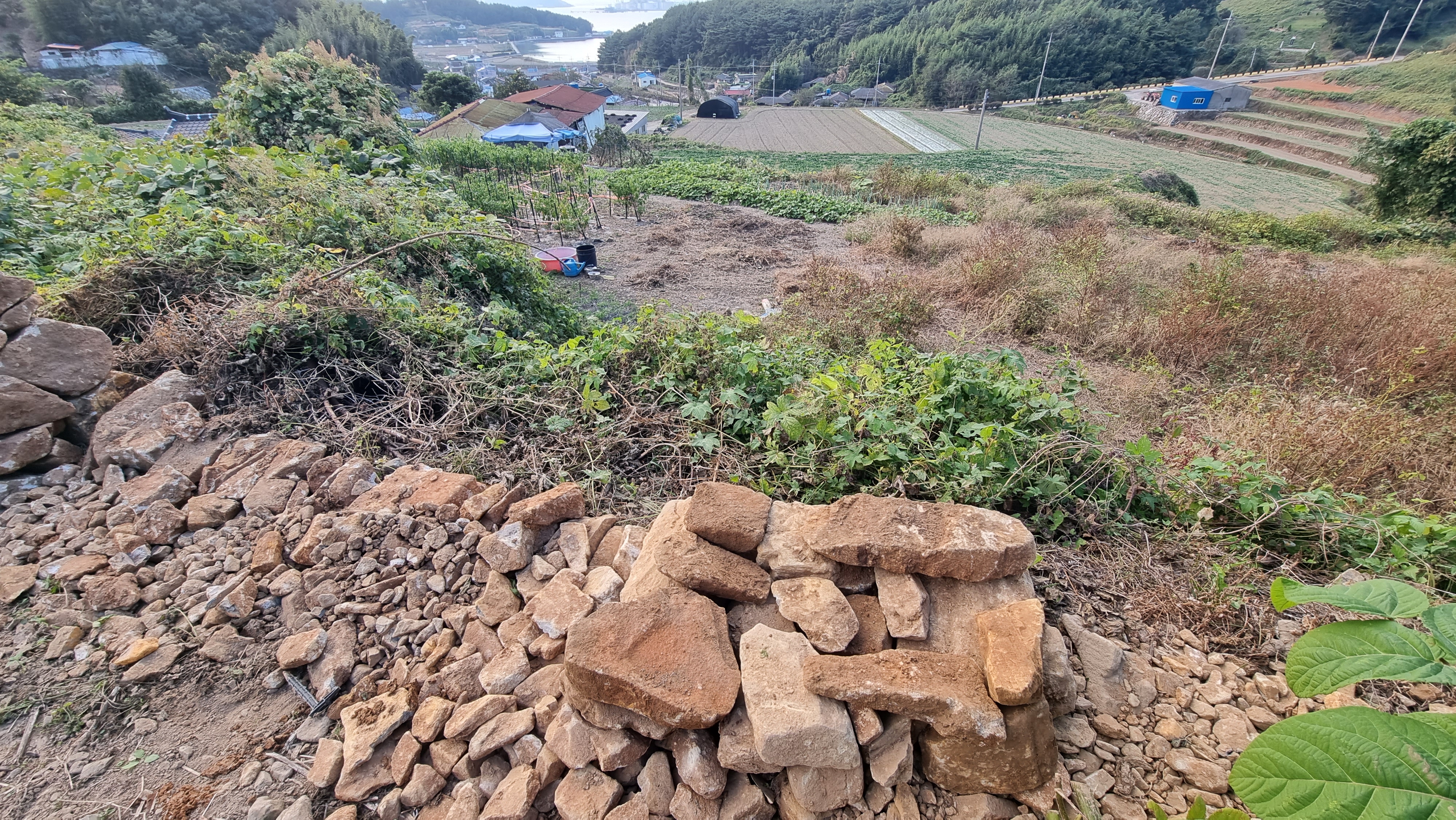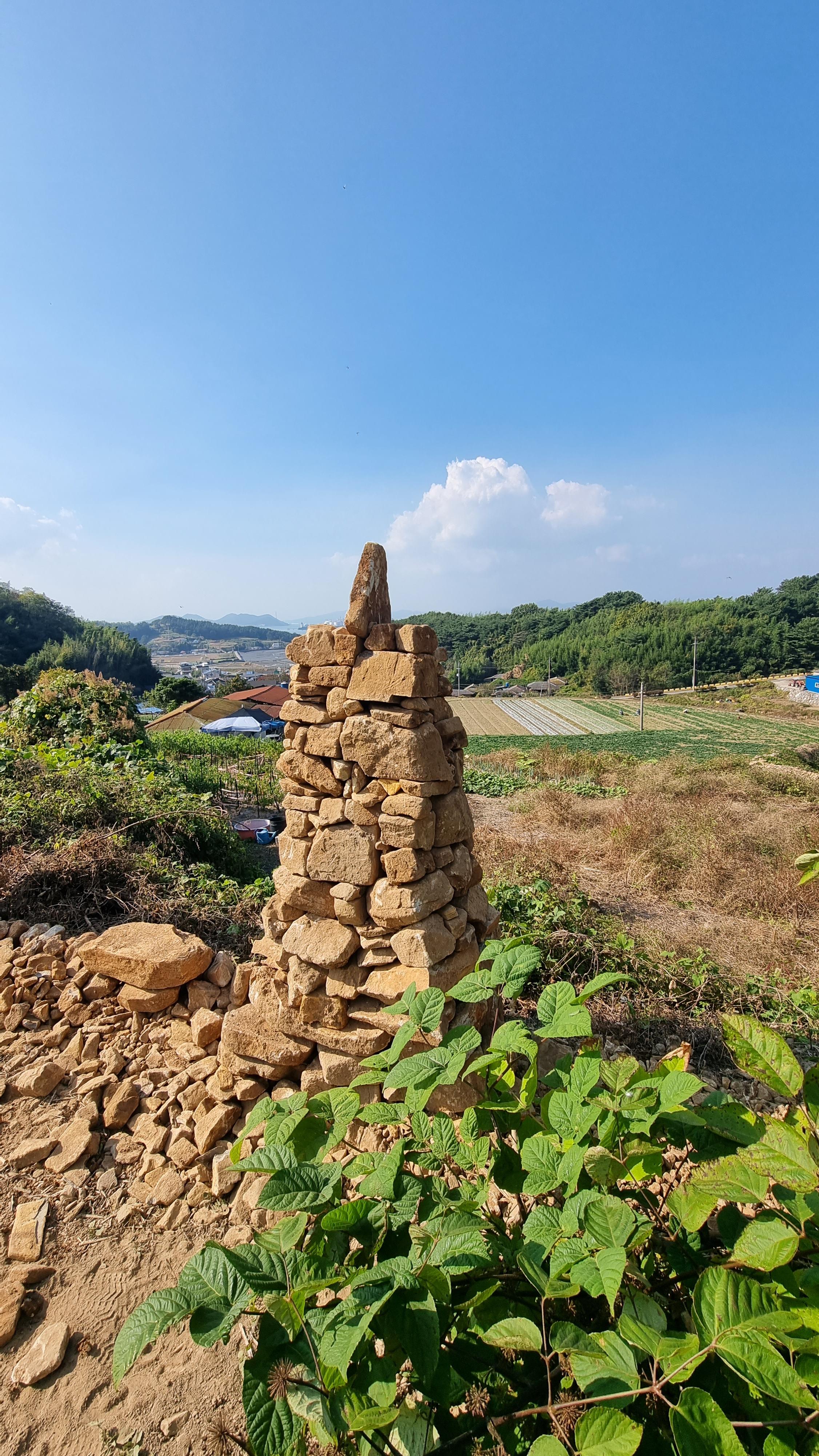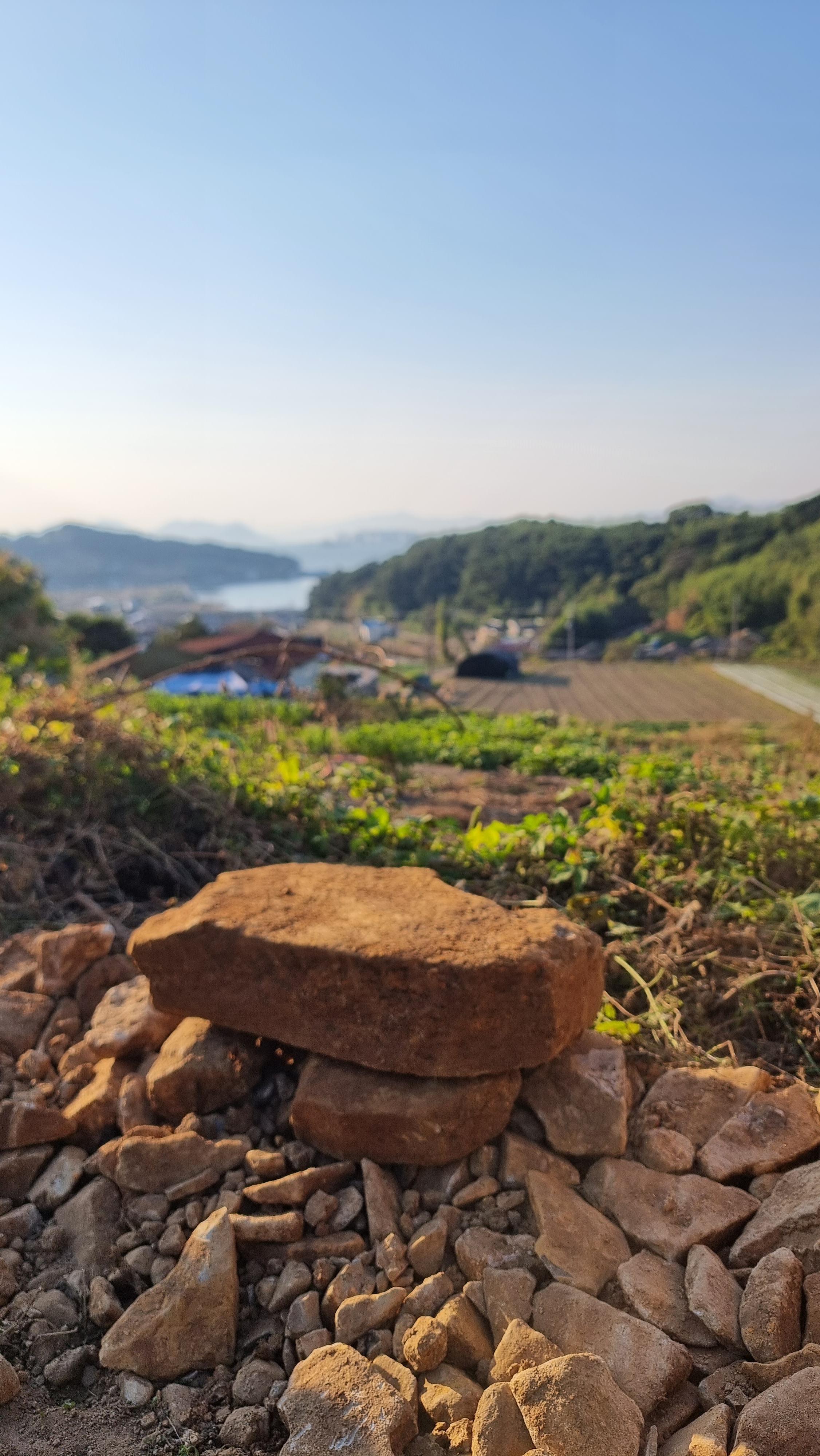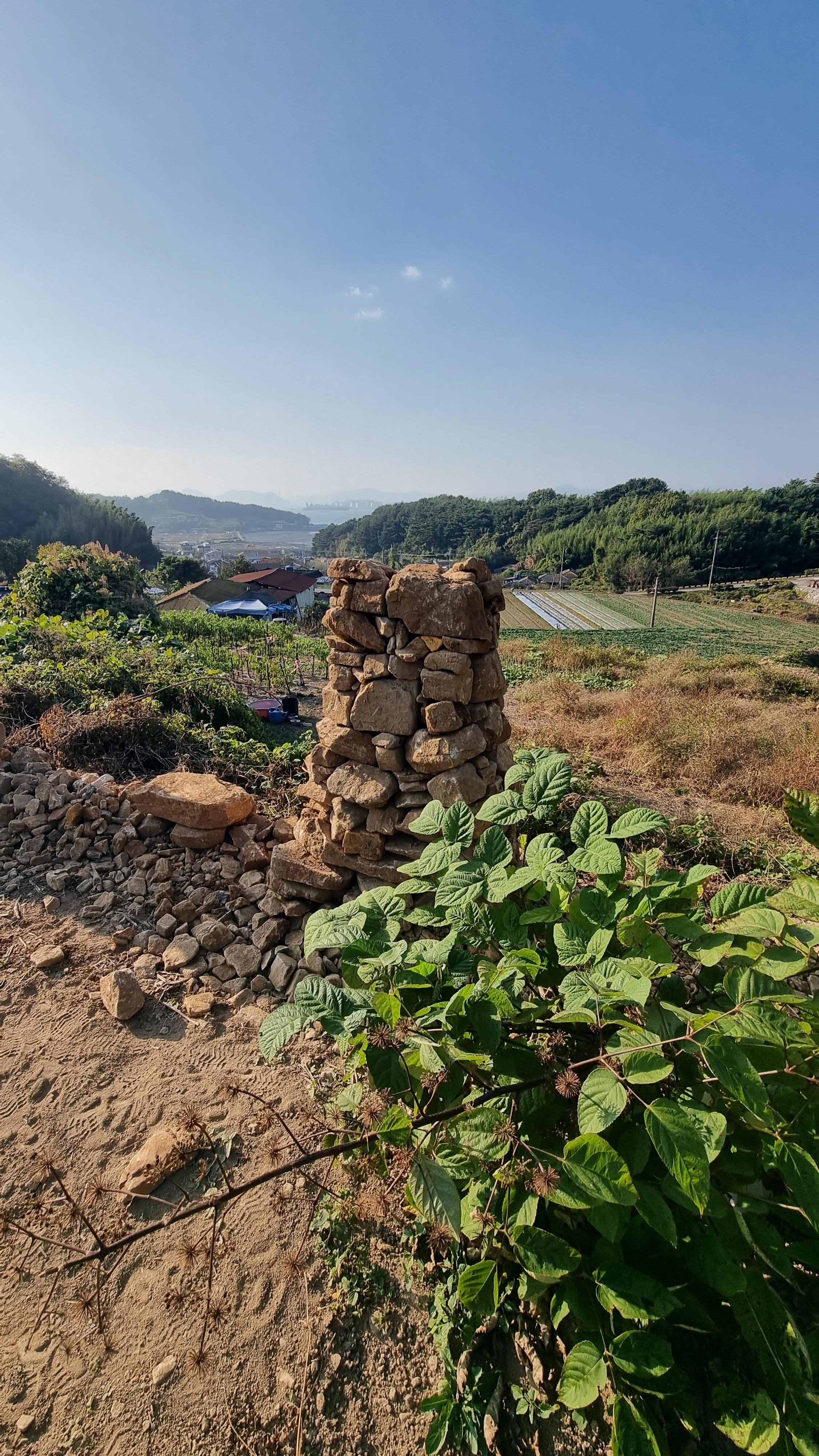 ◐ 2023.10.18 - 남해, 수 (맑음) : 채소밭 두둑 만들기, 밭에 돌 파내기 및 탑 쌓기 등.