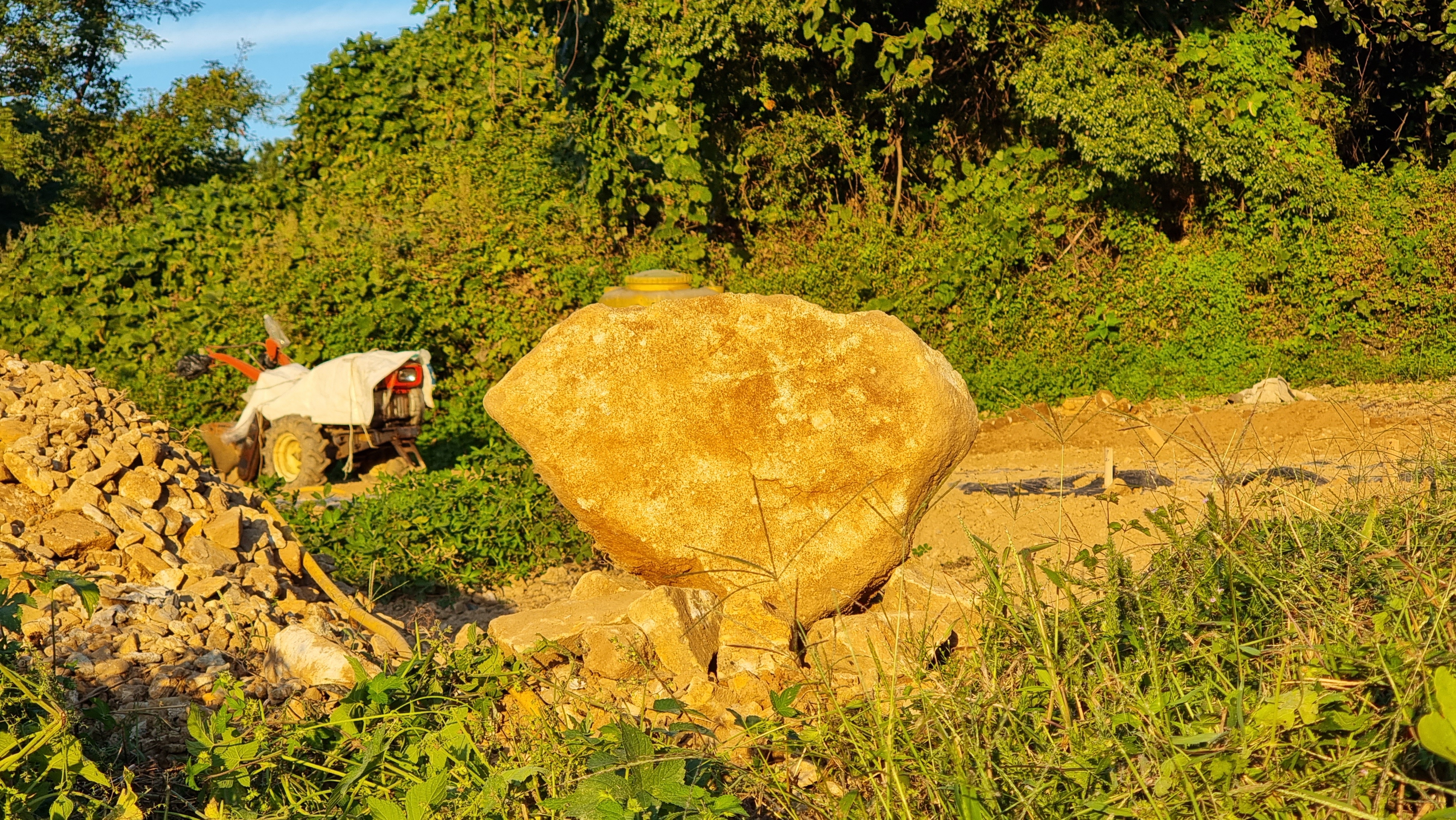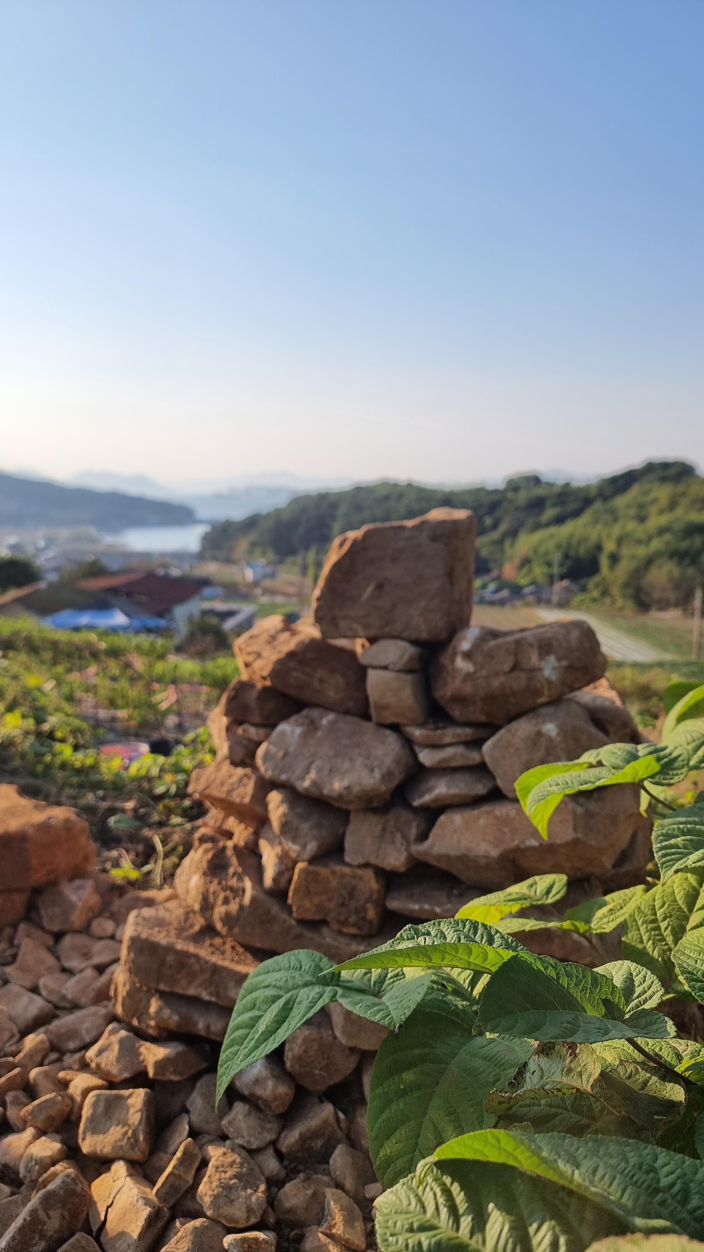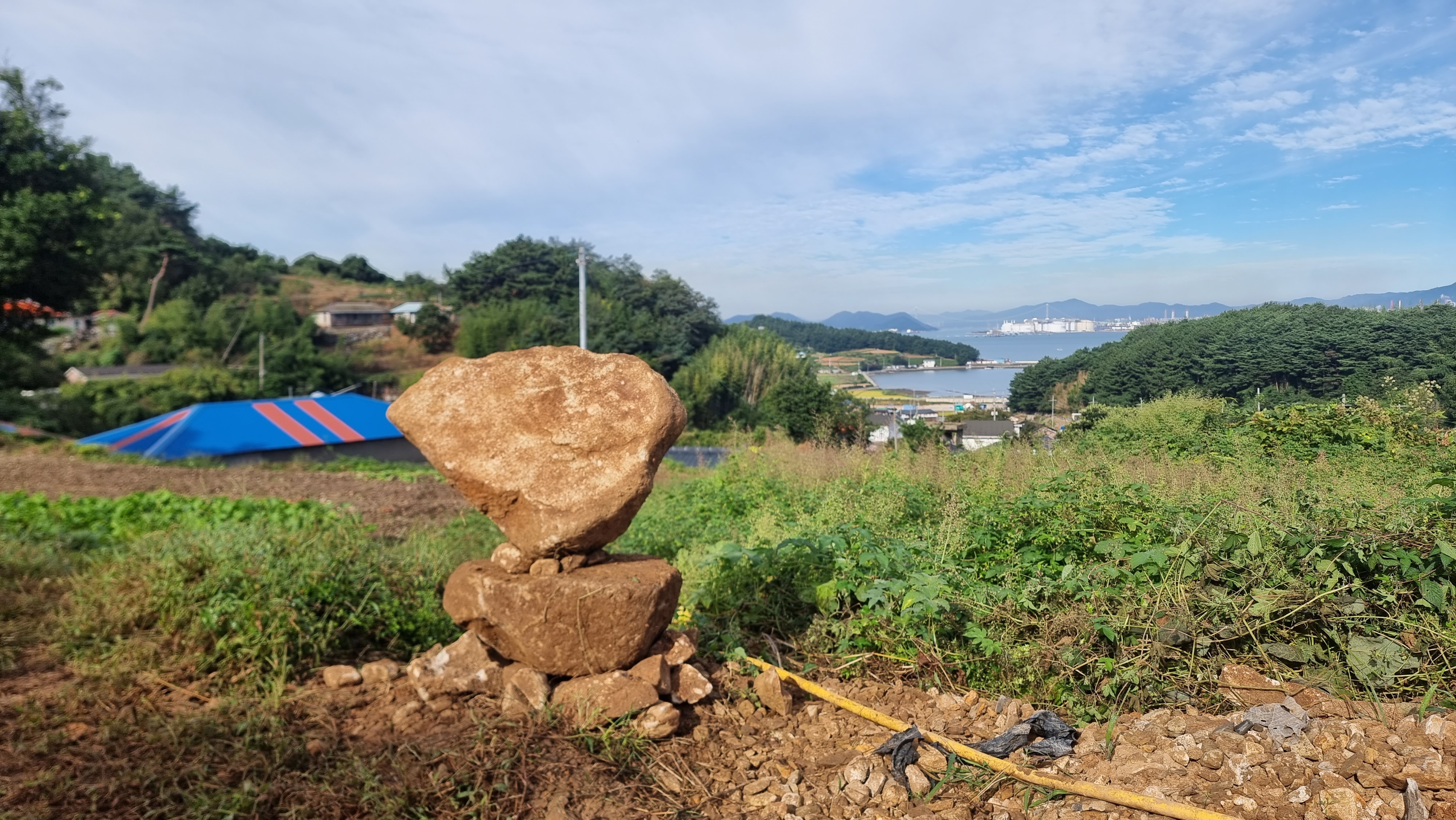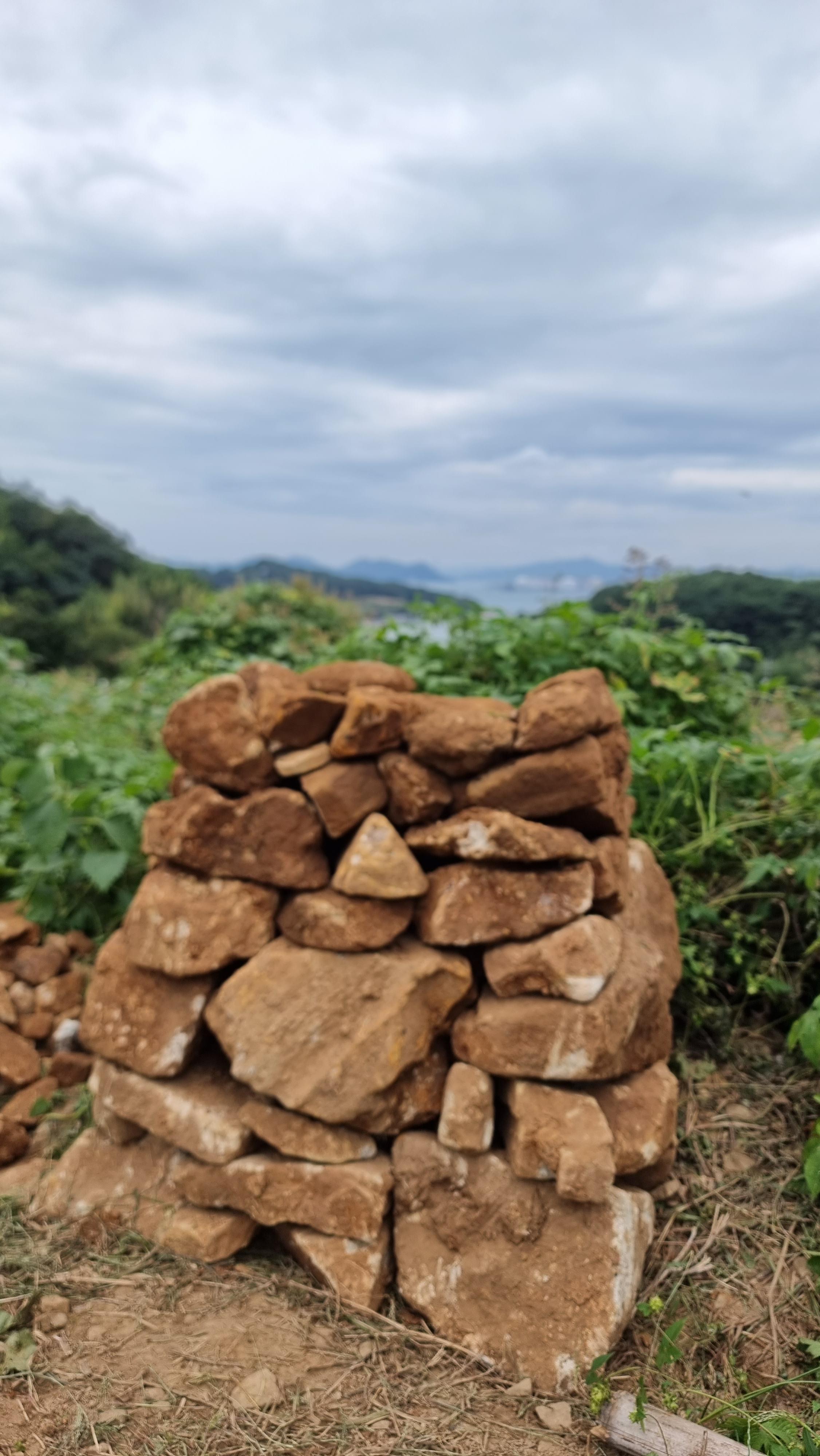 ◐ 2023.10.18 - 남해, 수 (맑음) : 채소밭 두둑 만들기, 밭에 돌 파내기 및 탑 쌓기 등.