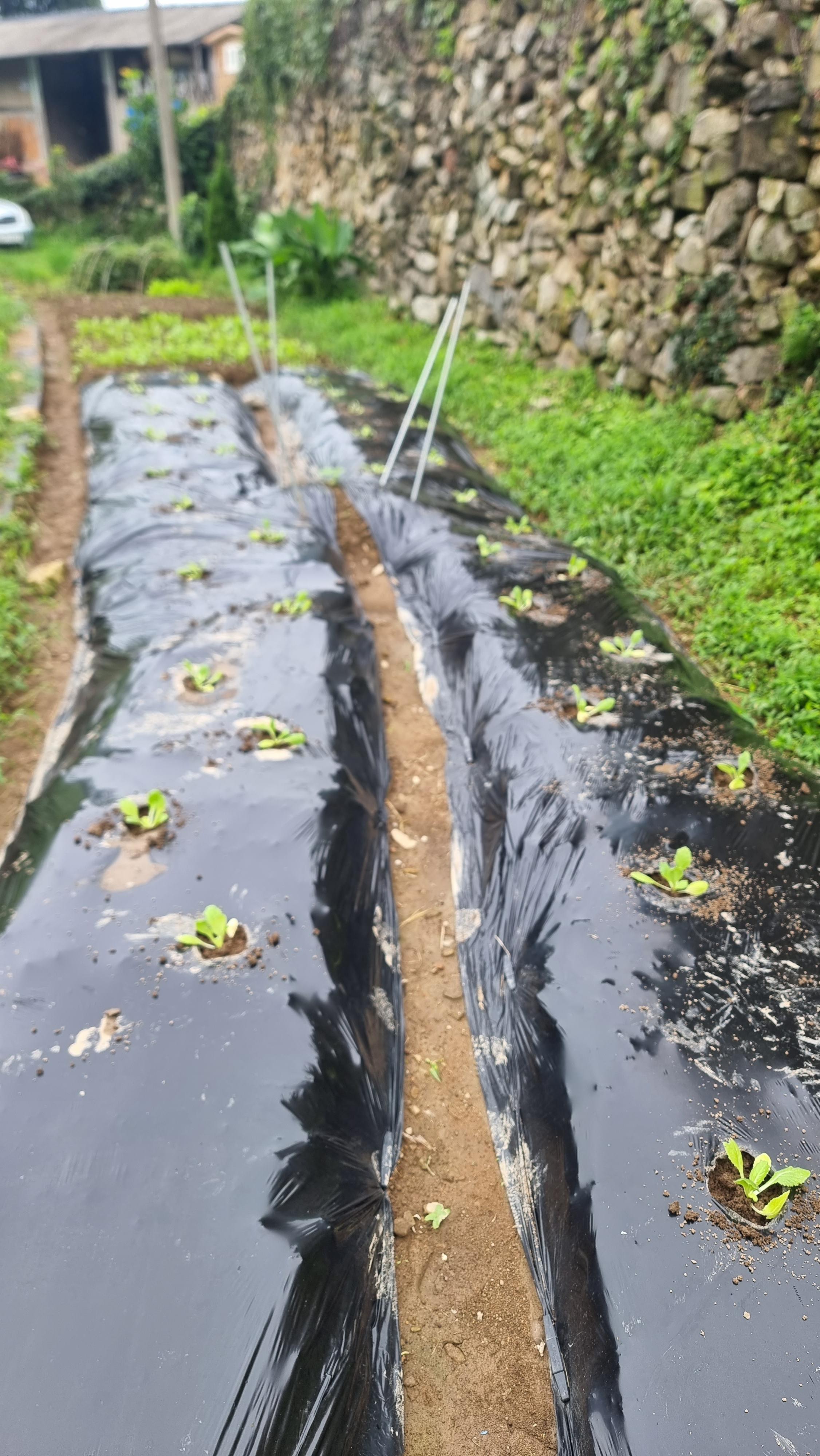 - 어제 심은 모종 수가 300여 개고 오늘도 그 정도 심었으니 모두 600여 개가 될 듯하다. 어제 심은 곳인 집앞 돌담 밑 밭은 흙이 부드러워 일하기도 좋고 결과도 좋을 듯한데, 집 뒤에 있는 밭은 이번에 양파를 심으려 일구면서 돌탑을 몇 개나 쌓았을 만큼 돌이 많고 거친 밭이다. 그래서 양파가 뿌리를 잘 내릴지, 잘 자랄지 심히 걱정이다. 그래도 얼마 전에 검은 비닐을 씌우고 제일 먼저 심은 마늘은 제법 자랐다.