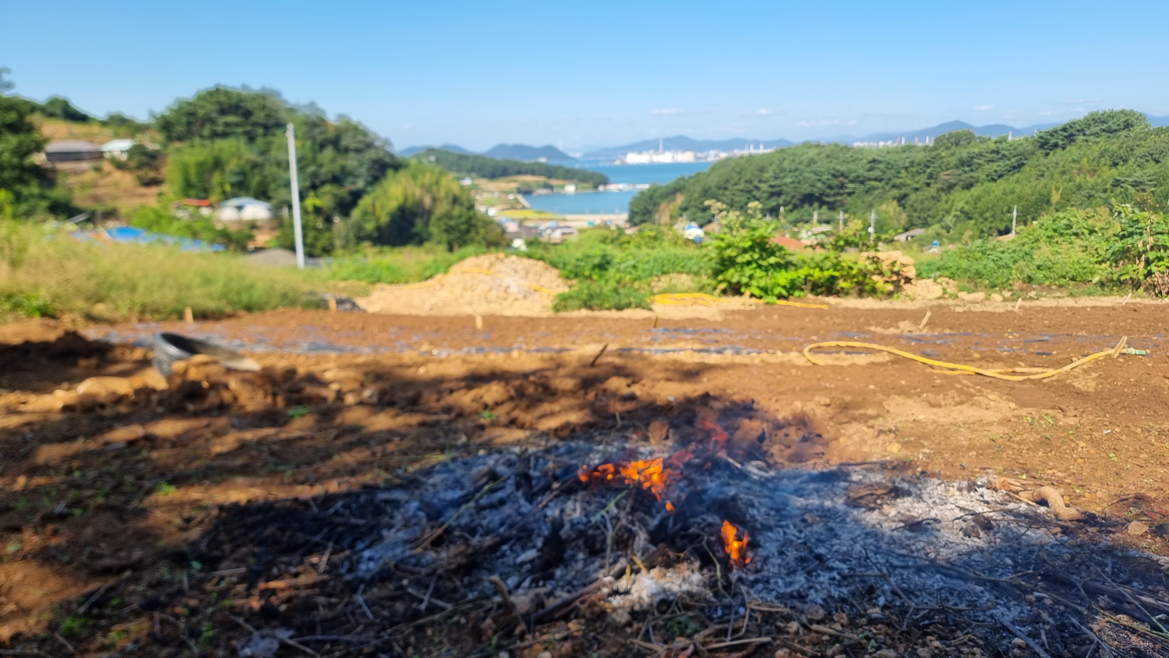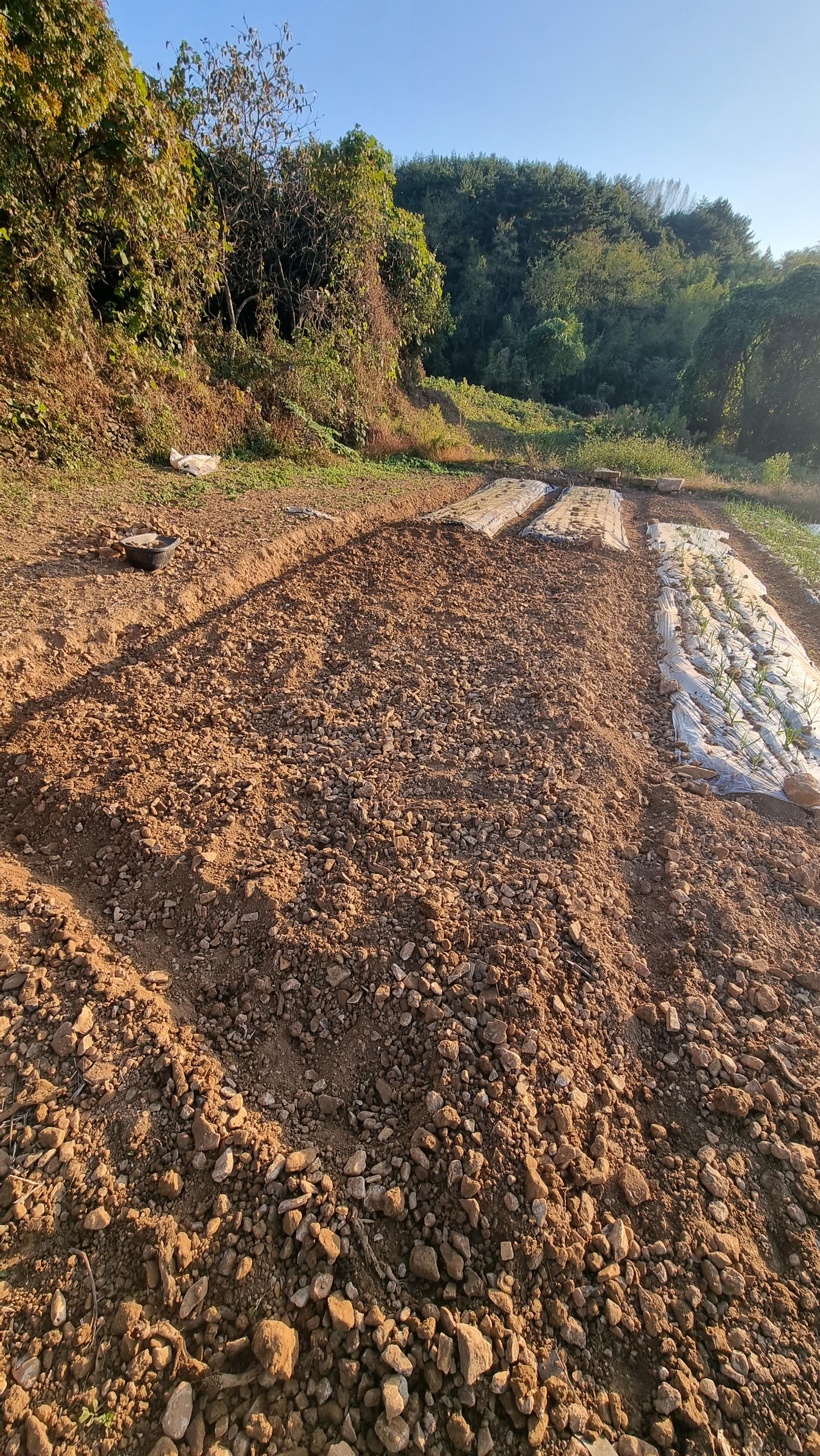 ◐ 2023.10.10 - 남해, 화 (맑음) : 마늘밭 물주기, 밭에 돌 파내기 등.