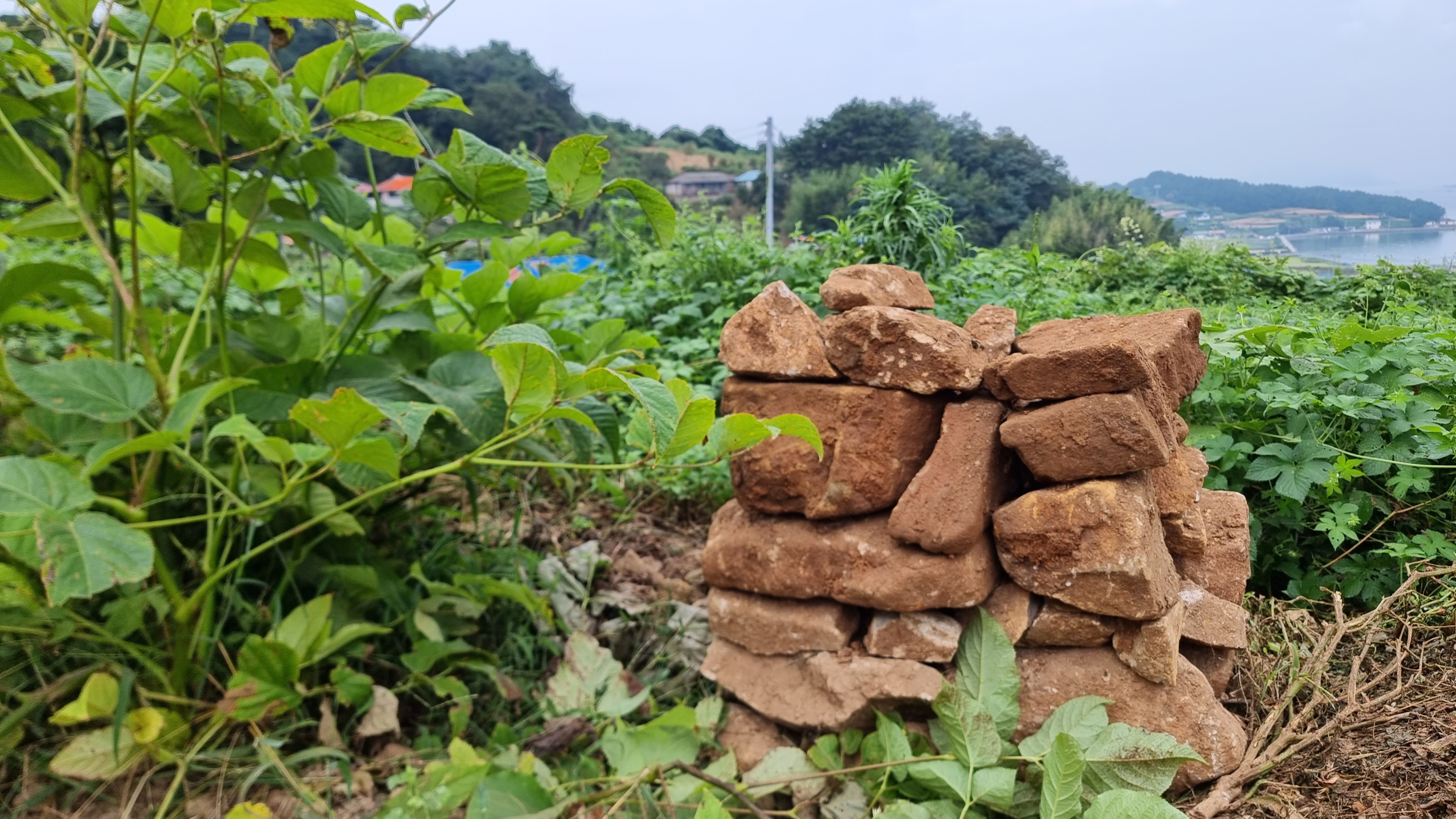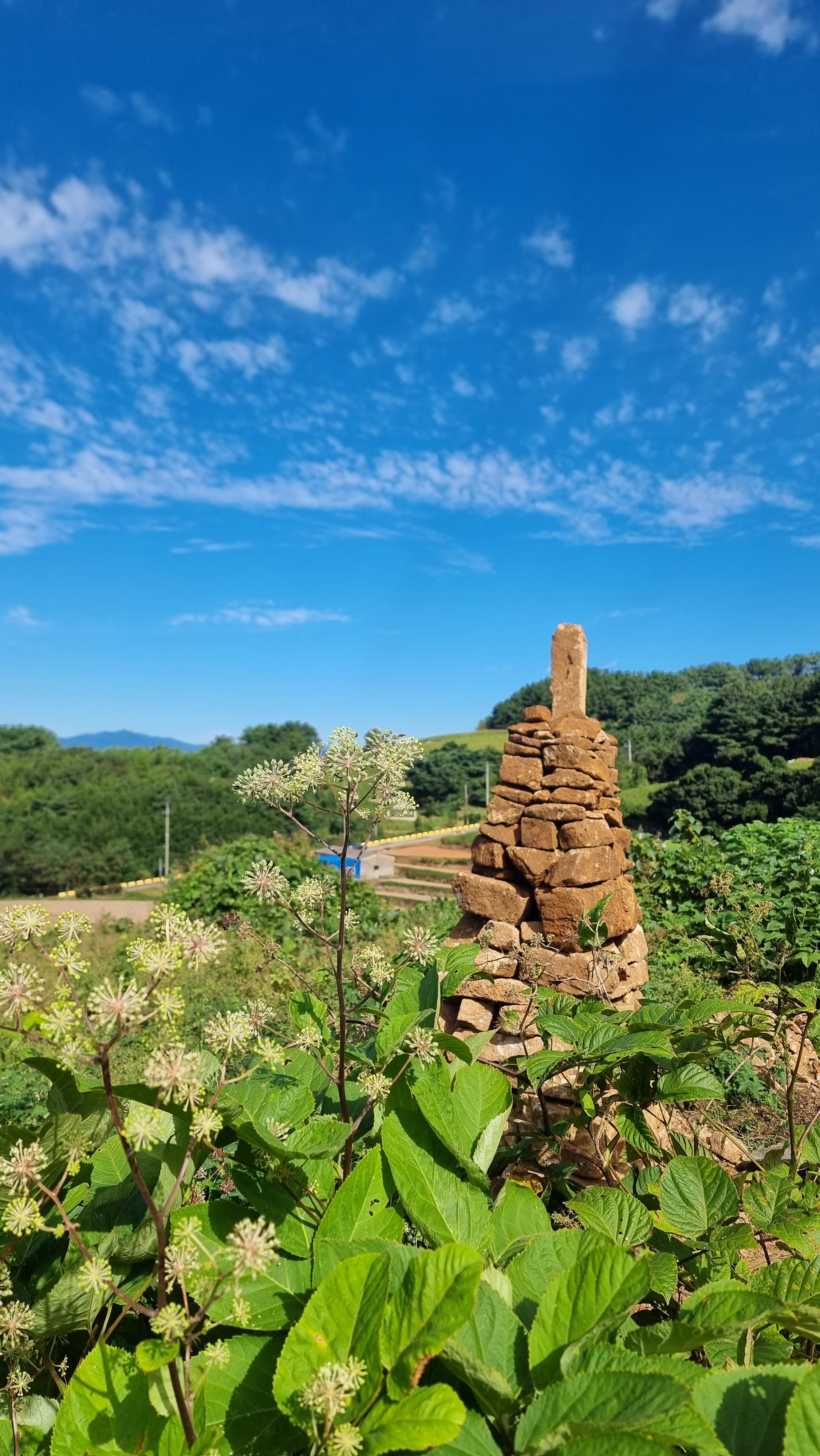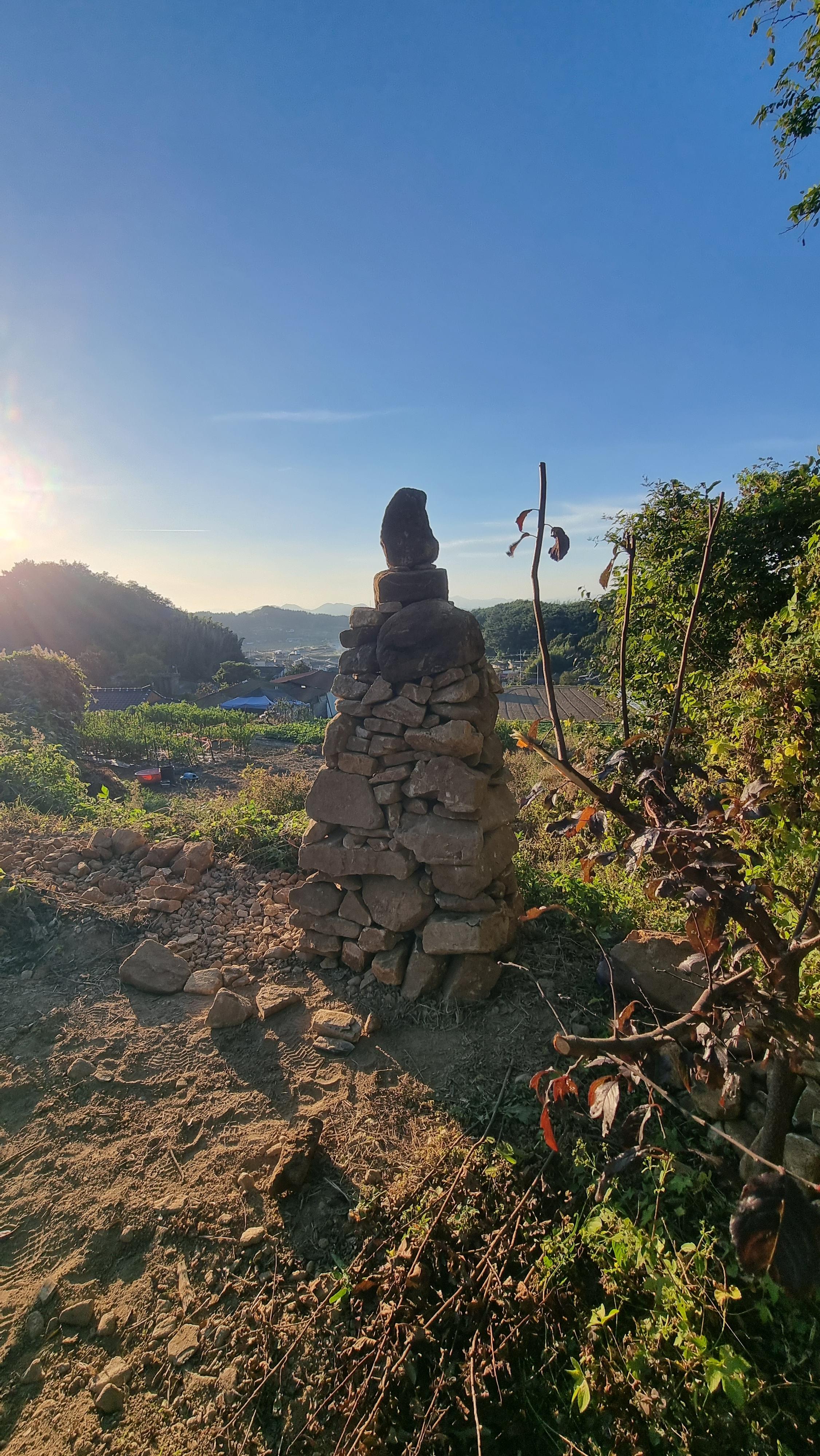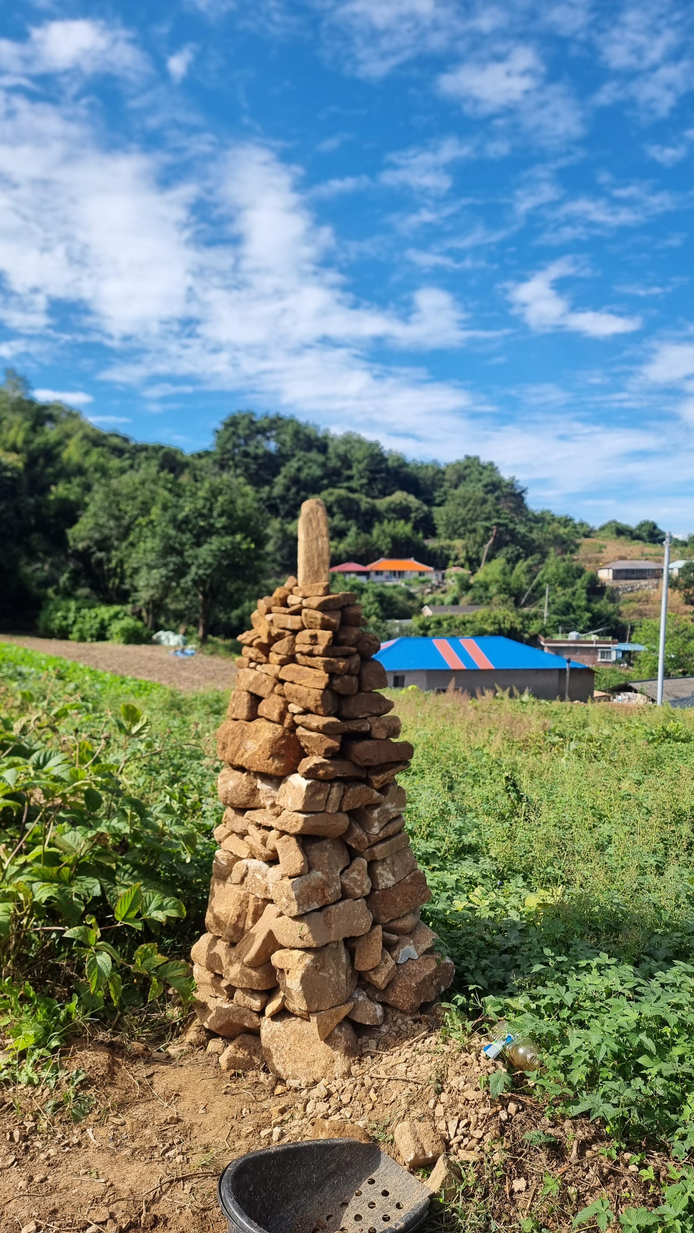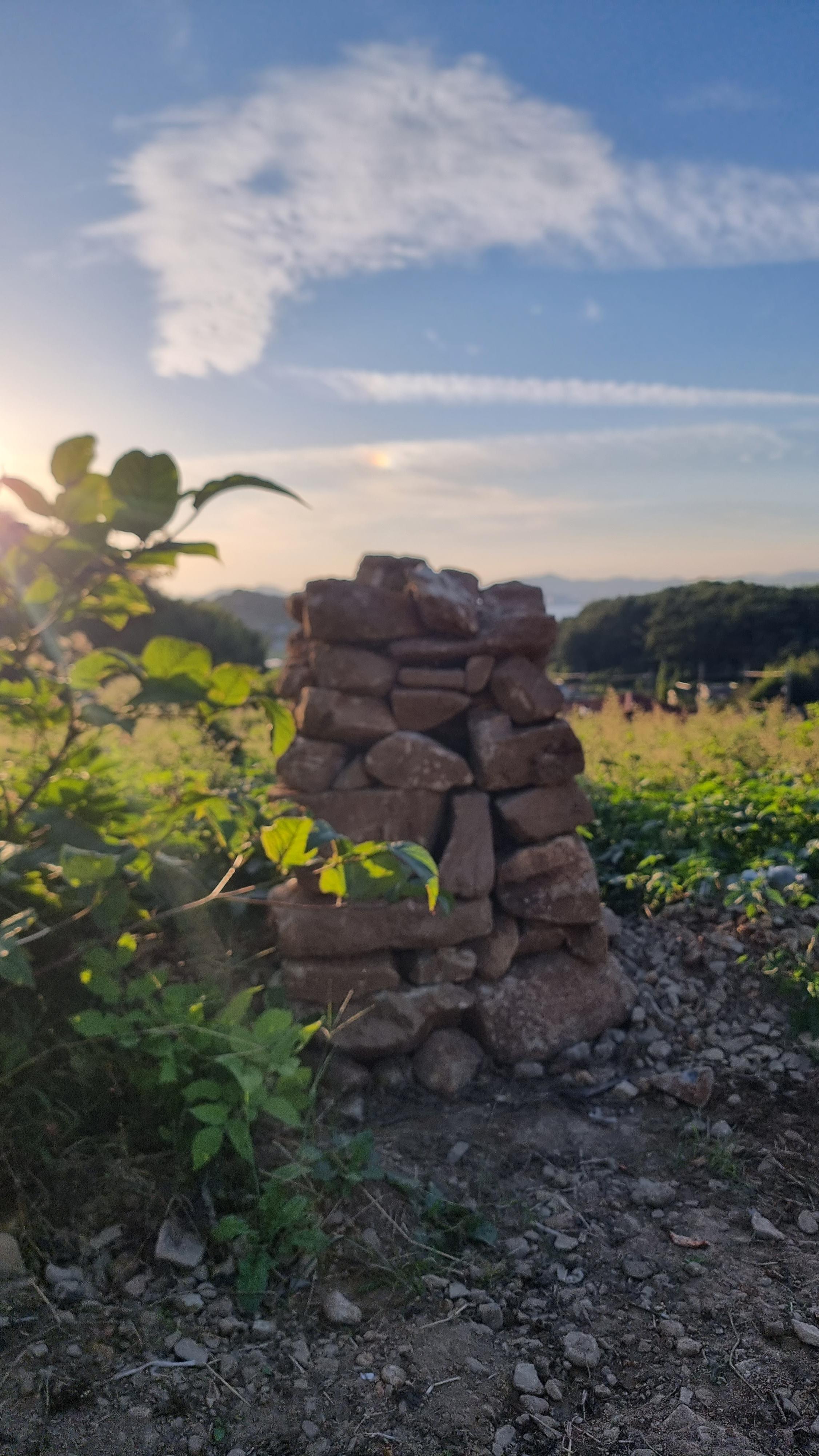 - 아마도 추석 명절이 가까워져서 그런지 '벌초'를 하려는 듯한 모습들이 자주 보인다. 예초기 소리도 곳곳에서 들리고, 예초기를 실은 트럭들도 가끔 보이기도 한다. 앞집에 박사장님께서도 가족들과 함께 벌초를 하러 오셨나 보다. 아침 일정을 마치고 밭으로 나갔다. 작년에 구입해 놓은 거름 두 포를 밭으로 옮겨 밭에 뿌렸다. 그리고 이제 더 이상 높일 수 없을 듯한 돌탑을 마무리 해야 할 듯하다. 그래서 작은 돌들을 올려서 마무리를 지었는데, 꼭대기에 놓은 돌들이 바람에 떨어지지 않기를 바랄 뿐이다. 만약 그런 상황이 생긴다면 위를 민듯하게 해야겠다.
