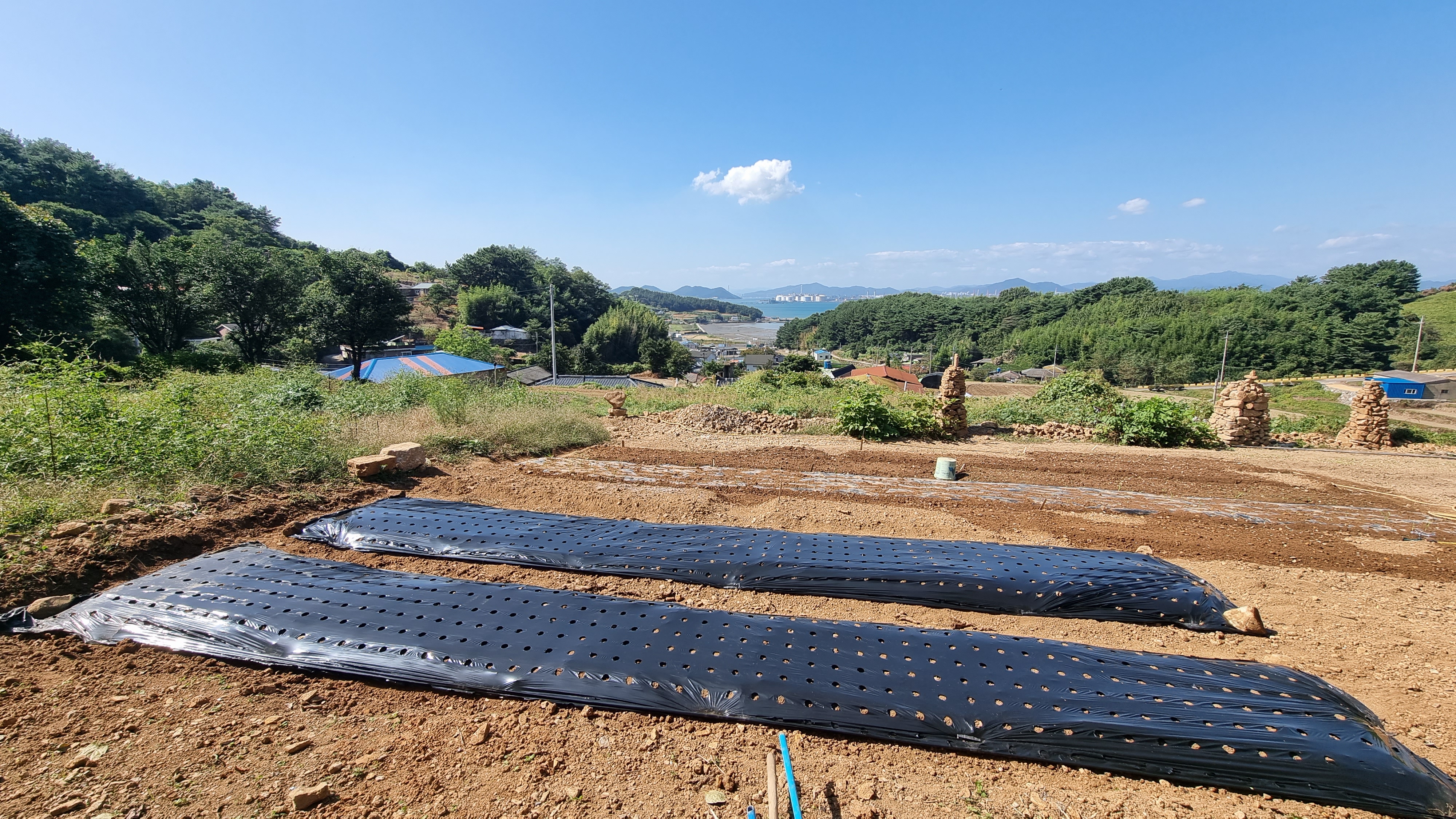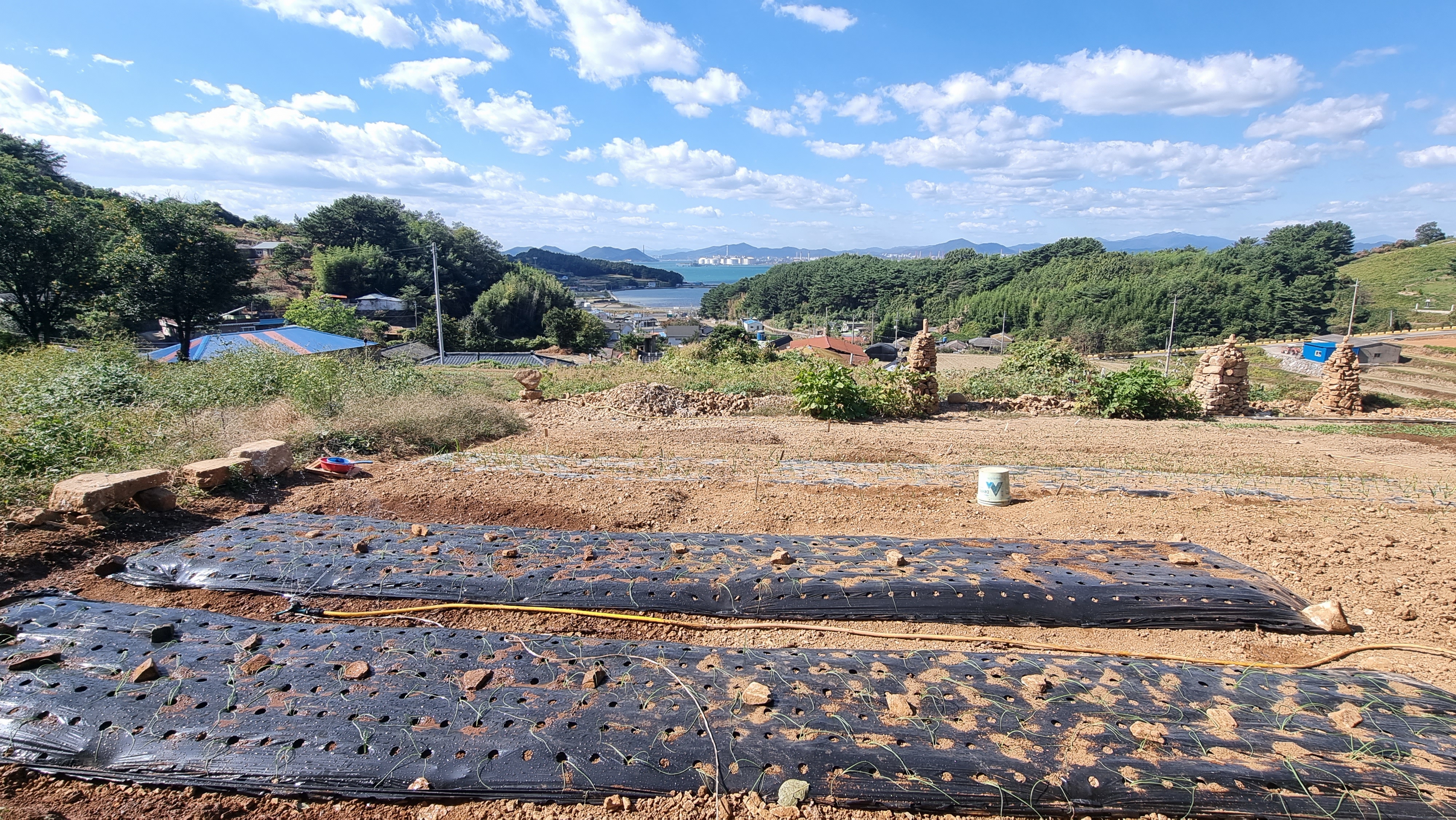 ◐ 2023.09.09 - 남해, 토(맑음) : 돌탑 쌓기 마무리, 읍내 출타, 마늘밭 만들기 작업 등.