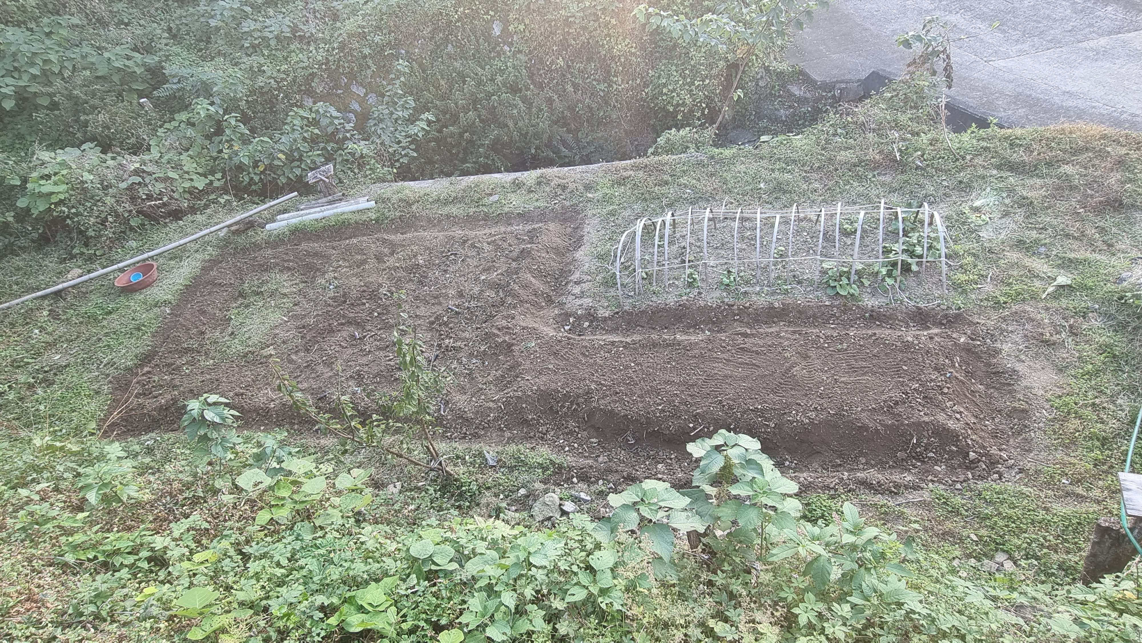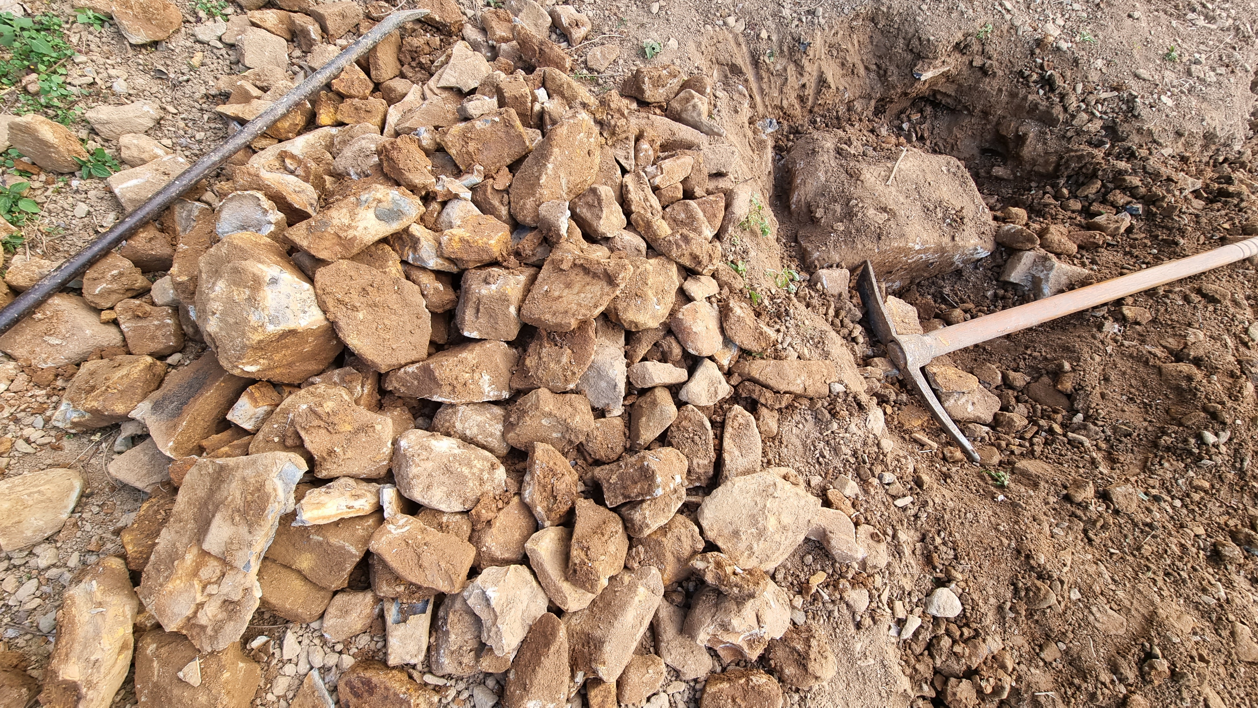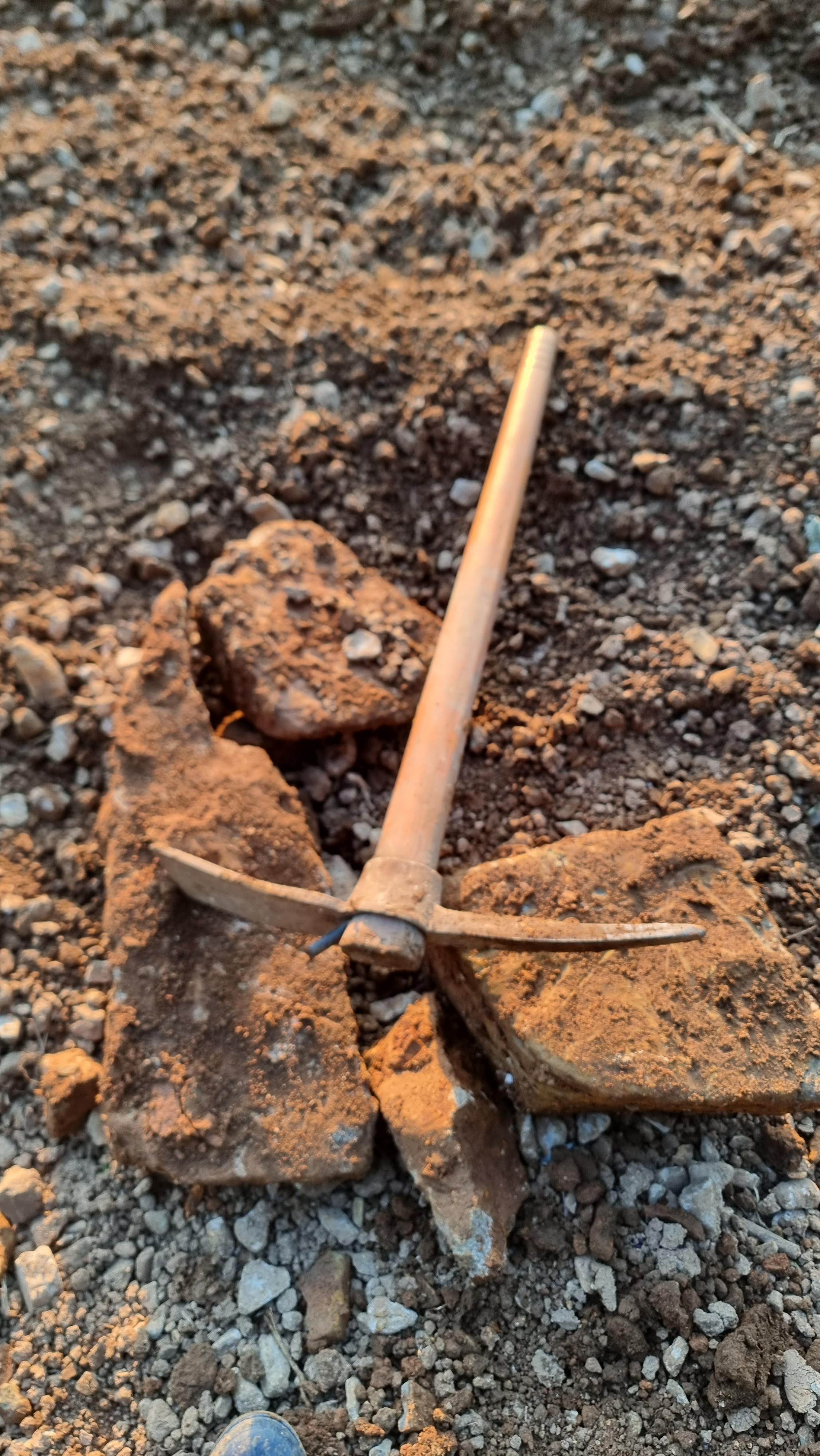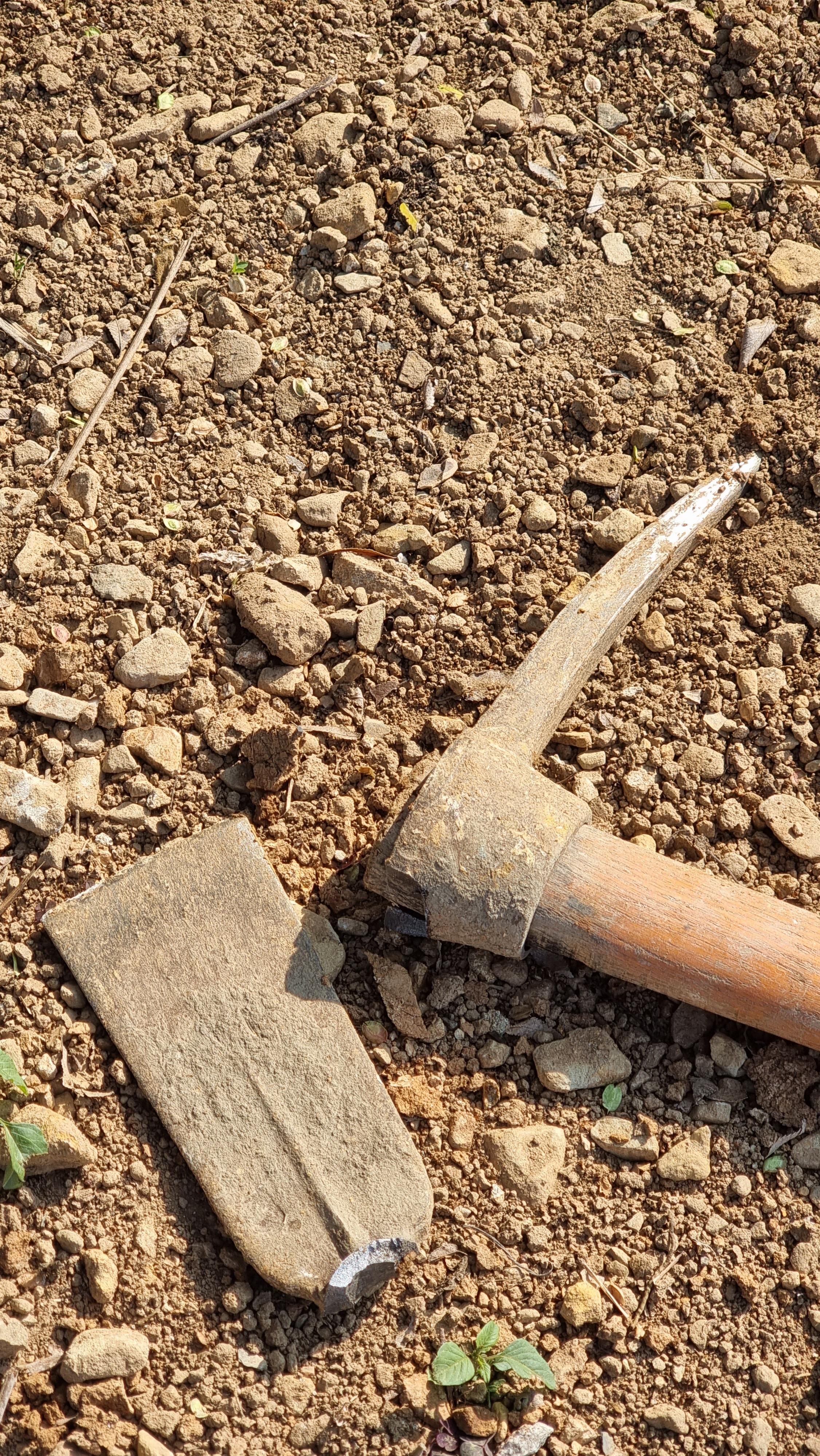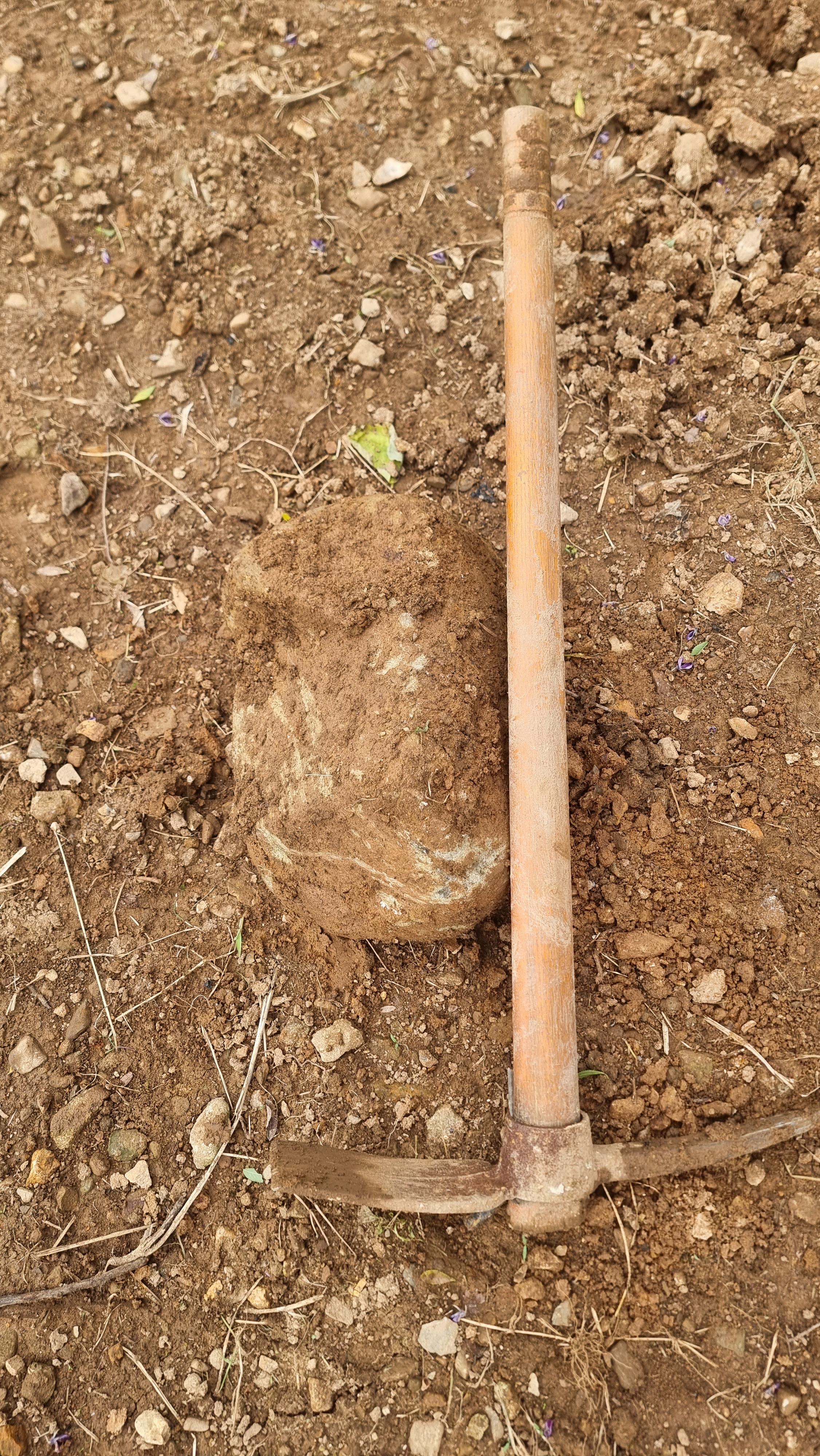 - 이렇게 밭이 만들어지나보다. 내년 봄에는 또 다른 부분에 이런 작업을 하게 되면 언젠가는 밭 전체에 곡갱이질이 되지 않을까. 아직 밭이라 하기는 너무 거칠다. 그저 흙에 돌을 좀 파내고 골라낸 상태다. 여기에 거름이 섞여 밭으로 되기까지는 많은 시간이 필요할 듯하다.