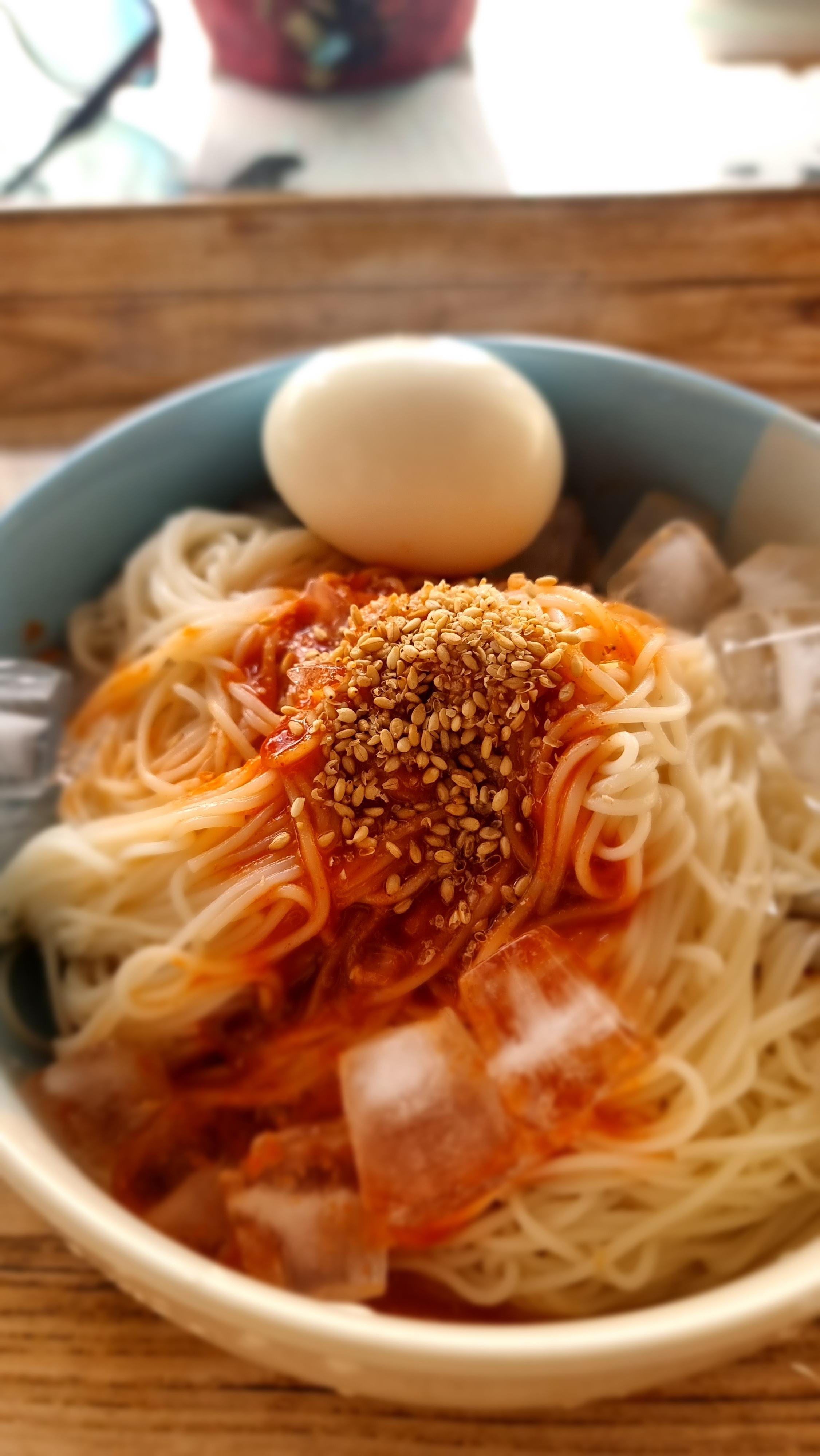 - 오늘은 아침부터 밭을 만드는 일을 시작했다. 경운기 시동 레버를 새롭게 좀 조정을 하고, 어제 뽑아 놓은 돌들 중 큰돌은 제2의 돌탑을 만들기 위해 놓았고, 잔돌들은 돌 무더기에 쌓았다. 아침 먹기 전에도, 아침 먹은 후에도 그 일을 반복했다. 점심은 비빕 국수를 만들어 먹었다. 국수를 삶아 냉수에 헹구고, 삶은 계란 하나에 초장과 참기름, 깨소금, 얼음을 넣은 초간편 비빔국수다.