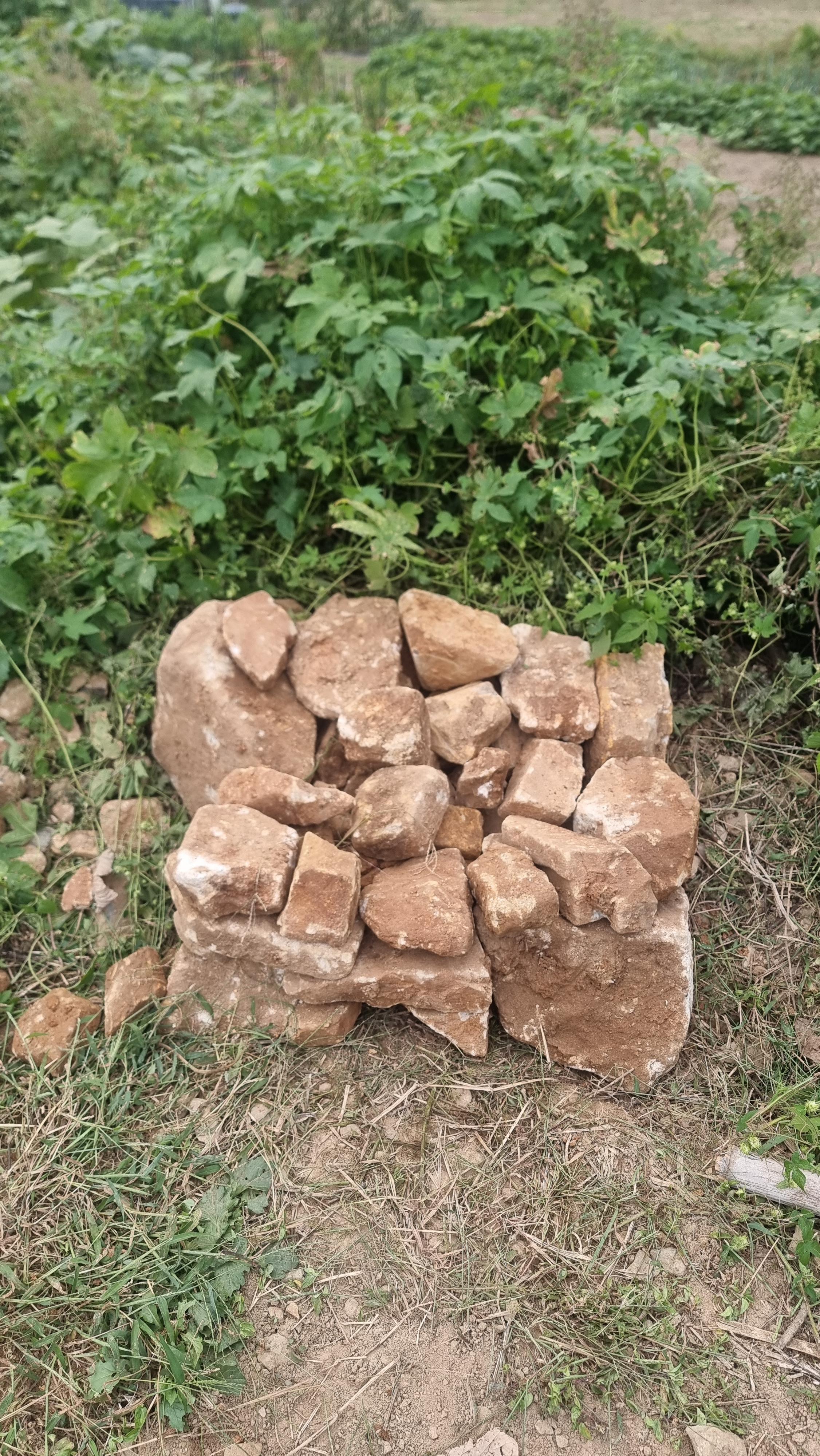 - 밭이 옛날에 산이고, 경사가 좀 있어 비가 오면 흙들은 아래 쪽으로 쓸여 내려가고 위쪽에는 돌들이 드러 난다. 그래서 위쪽은 큰 돌들이 심심찮게 나오는데, 곡갱이로 파지 않으면 안되는 돌들도 많다. 오후에는 밭 가운데 박혀 있는 큰돌 하나를 발견했는데, 쉽게 파질 것 같지가 않아 내일 다시 파 보기로 했다. 그래도 파 낼 수 없을 정도라면 그기에 다른 돌들로 일하다 잠시 걸터 앉아 쉴 수 있는 자리를 하나 만들 생각이다. 밭에서 나온 돌로 인해 돌탑은 높아져만 간다.