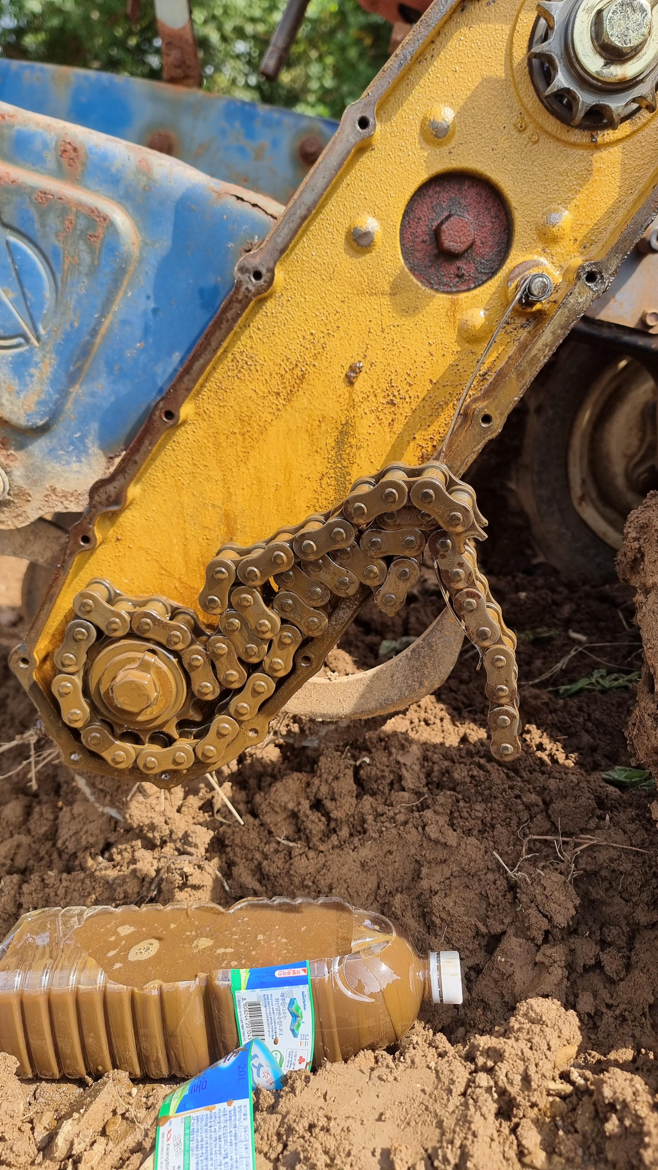 - 오랜만에 날씨가 좋다. 그래서 점심을 먹고 곧바로 밭에 나가 비에 흐트러진 두둑을 보수하고, 시금치 씨앗도 좀 뿌렸다. 그리고 경운기로 로터리 작업을 하려고 했더니 로터리가 돌지 않는다. 한동안 살펴봤더니 경운기와 로터리를 연결하는 부분은 정상대로 작동하고 있었는데, 로터리만 작동을 하지 않는 것이다. 그렇다면 로터리 내부의 문제인 듯하여 여러 곳에 문의했더니 로터리를 돌게하는 체인이 끊어졌을 가능성이 있단다. 그래서 렌치를 이용해 열어봤더니 체인이 끊어져 있었다. 그래서 농협 수리센터에 연락을 했더니 수요일 쯤에 출장와 고치기로 했다.