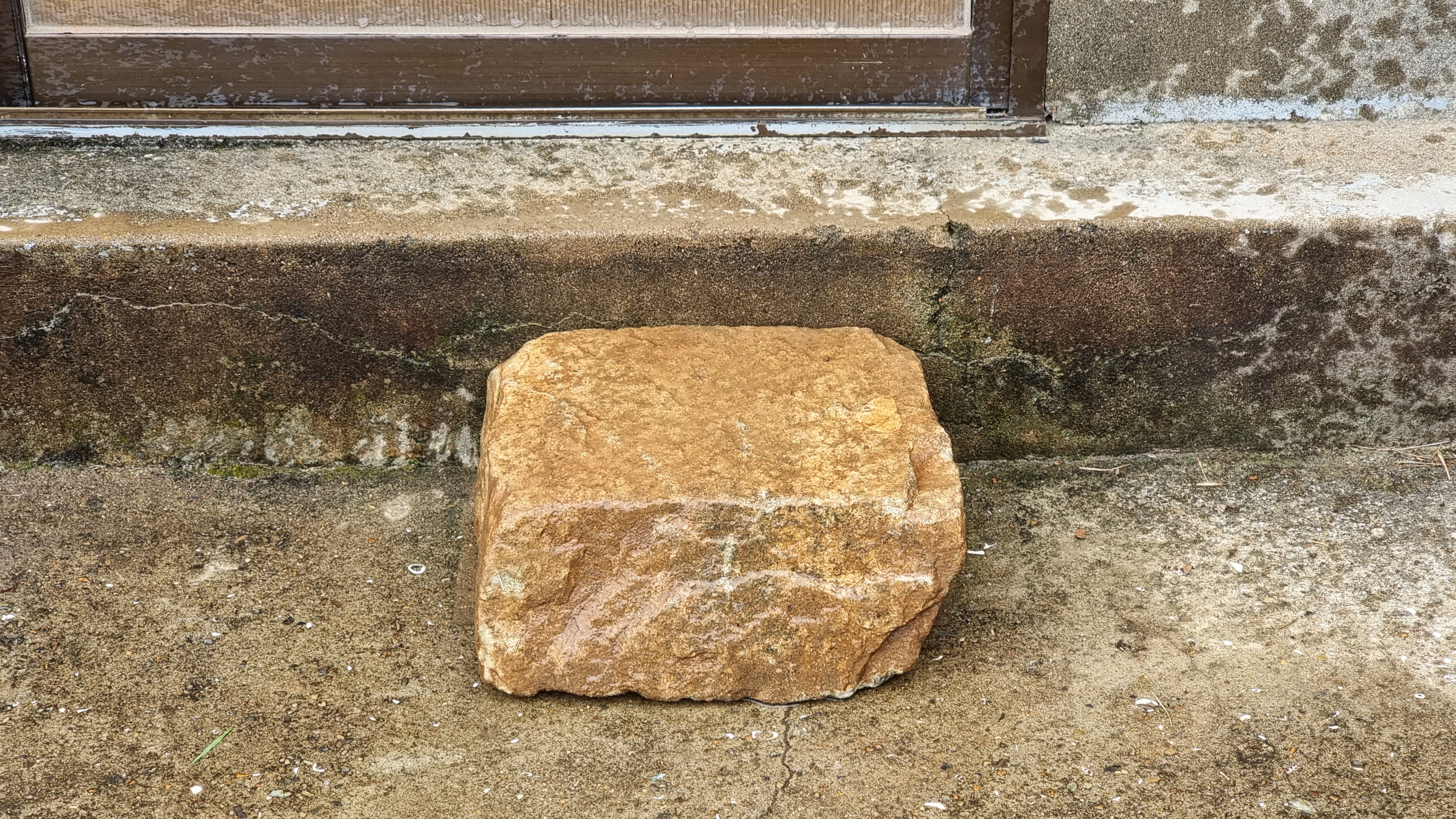 - 탑에 돌을 올려 놓은 후 너무 커서 탑에 올려 놓을 수 없는 평평하고 길쭉한 돌을 집안으로 옮겨와 다실 마루의 디딤돌로 사용할 예정이다. 지금까지는 그 자리에 시멘트 블록 두 개를 두었는데, 적당한 돌이 나온 것이다. 손으로 들어 옮길 수가 없어서 운반도구를 사용해 가져왔다. 돌에 흙을 털어 내고, 물로 씻어서 제자리에 놓았더니 다실과 마루와 괜찮은 조합이 되었다.