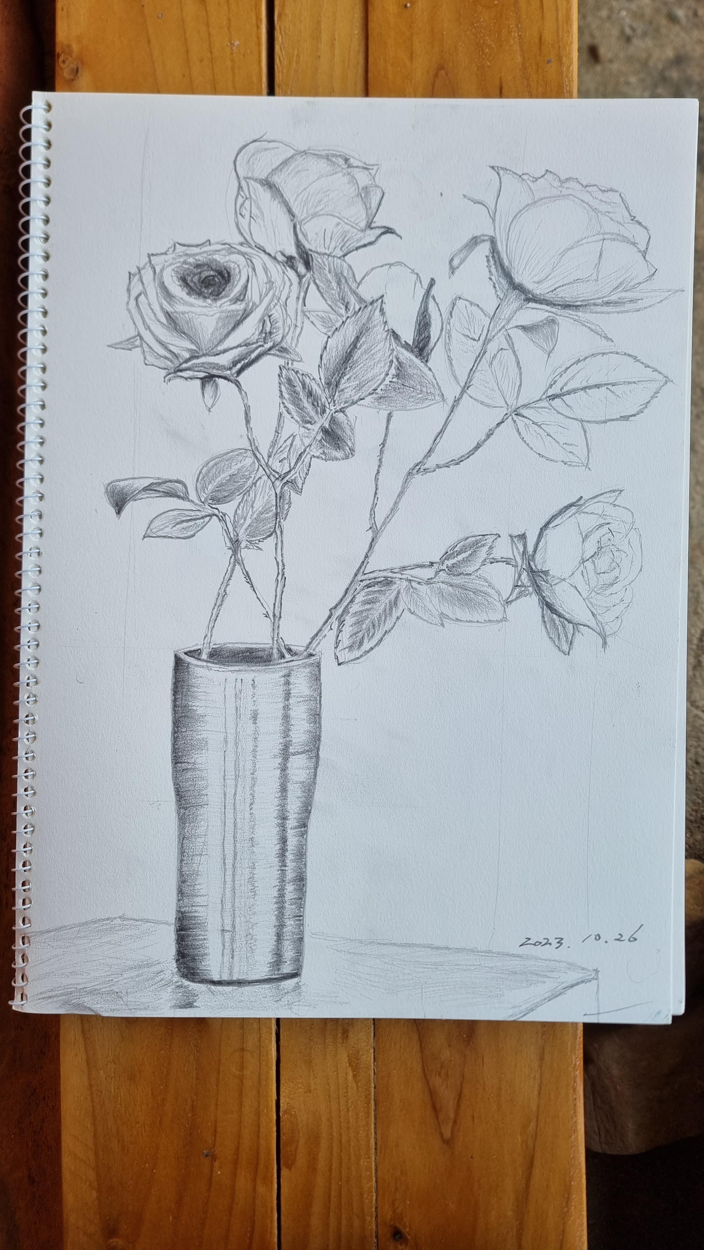 - 점심을 먹고는 그림 연습을 좀 했는데, 어제 수업에 찍어 온 사진으로 장미꽃을 좀 그렸다. 대충 아웃트 라인만 그린 것으로 명암 등 자세한 묘사는 다음에 해야 할 듯하다. 또 뒷 밭에 나가 돌 파내기를 했다. 그런데 큰 돌들이 자꾸만 나온다. 그 중 하나는 들 수 없을 정도로 크다. 또 굴려서 옮겨야 할 듯하다. 저녁 때가 되니 바람이 좀 분다. 오늘 저녁은 아침에 이웃에서 주신 애호박 볶음 반찬으로 먹었다.
