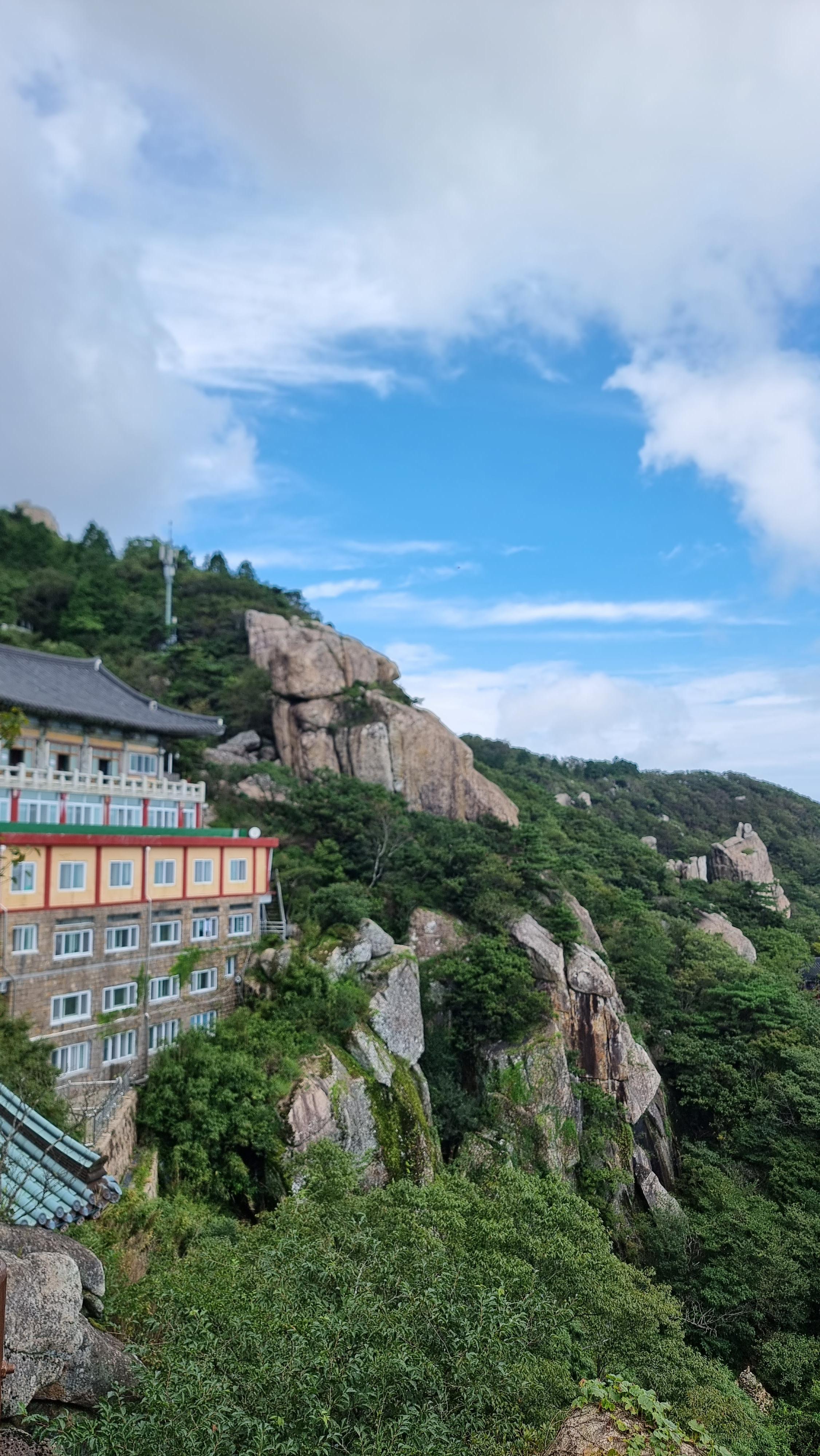 - 작업을 마치고 아침을 해 먹고는 보리암 산책에 나섰다. 갑자기 산책을 간 까닭은 오래된 산방 팀들이 금산 산행을 온단다. 그래서 처음부터 참석할 수는 없는 상태라 얼굴이라 한 번 볼까해서 갔다. 차를 보리암 제1주차장(주차료 5,000원)에 두고는 마을 버스(왕복 3,400원)를 타고 제2주차장까지 가서 보리암으로 갔다. 금산 정상 바로 밑에 산행팀의 일부 회원들이 점심을 먹고 있었는데, 몇 명 회원만 눈에 익었다. 그기서 잠시 머물다 그 팀들이 하산하는 것을 보고는 집으로 돌아왔다.