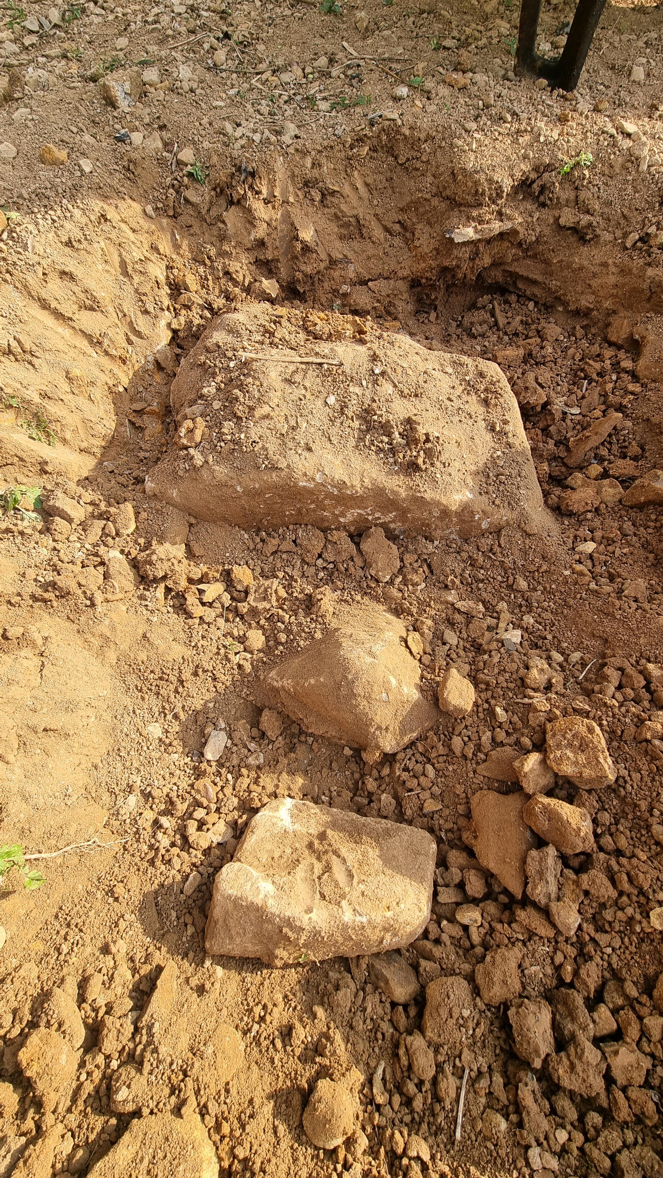 - 점심을 먹고는 잠시 멈췄던 밭 일구기를 또 시작했다. 어짜피 밭 전체에 대해서 한 번은 곡갱이 질을 다 해야 마음 놓고 경운기 로터리 작업을 할 수 있을 듯 싶다. 오늘도 큰 돌을 비롯하여 많은 돌이 나왔다. 그래서 큰 돌을 처리할겸 해서 다섯 번째 돌탑을 쌓기 시작했다. 오늘 밭을 일구던 중 큰 돌 하나가 발견되었는데, 오랫동안 팠지만 마무리 짓지 못했다. 내일 다시 시도해 볼 생각이다. 짐작컨대 지금까지 나온 돌 중 가장 크거나, 깊이 박혀 있는 듯하다.