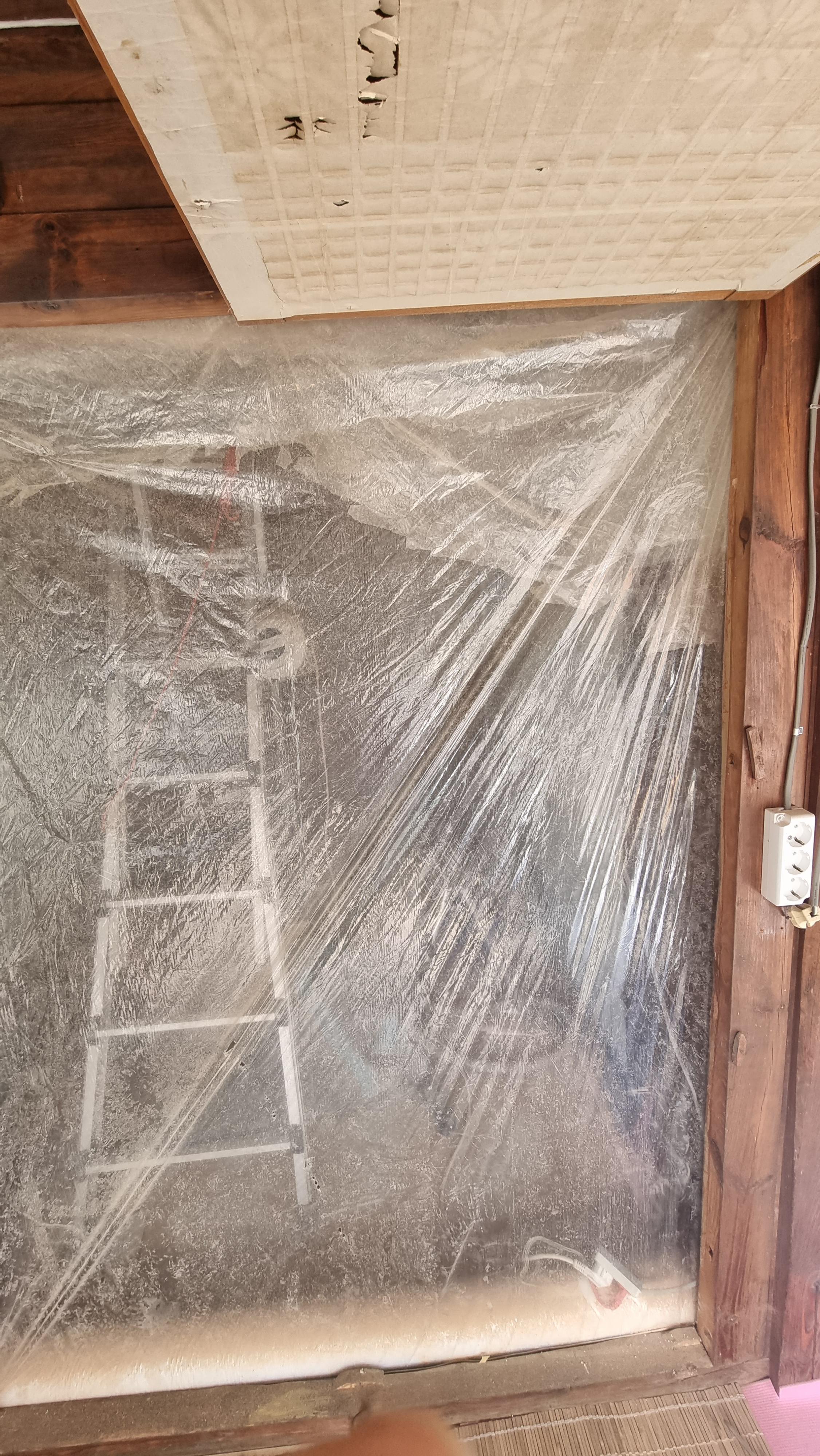 - 엊그제의 경험을 바탕으로 우리집 안방은 문이 위로 열리는 구조인데, 세 개 중 두 개를 열어 놓고, 비닐을 커텐 용도로 사용하여 먼지가 방 밖으로 나가지 않도록 했다. 방진복을 입고, 방진 마스크에, 투명 안경을 쓰고.....그래도 작업을 하면 나무 분진이 땀과 함께 범벅이 된다.