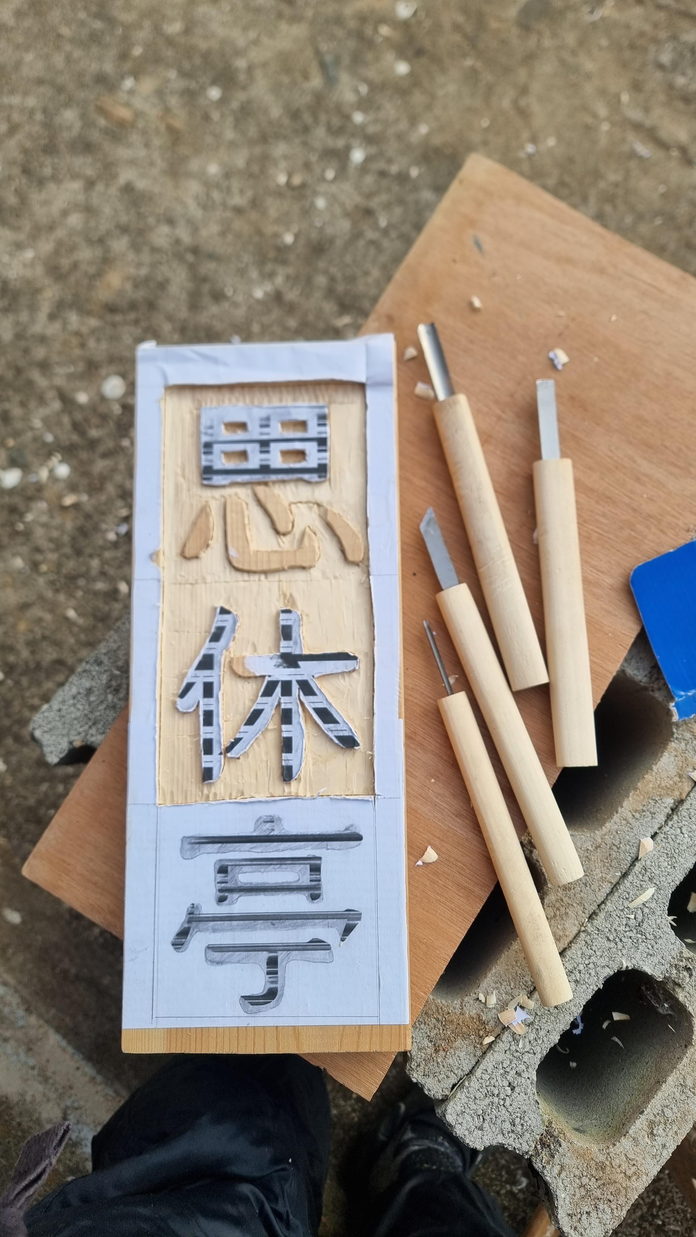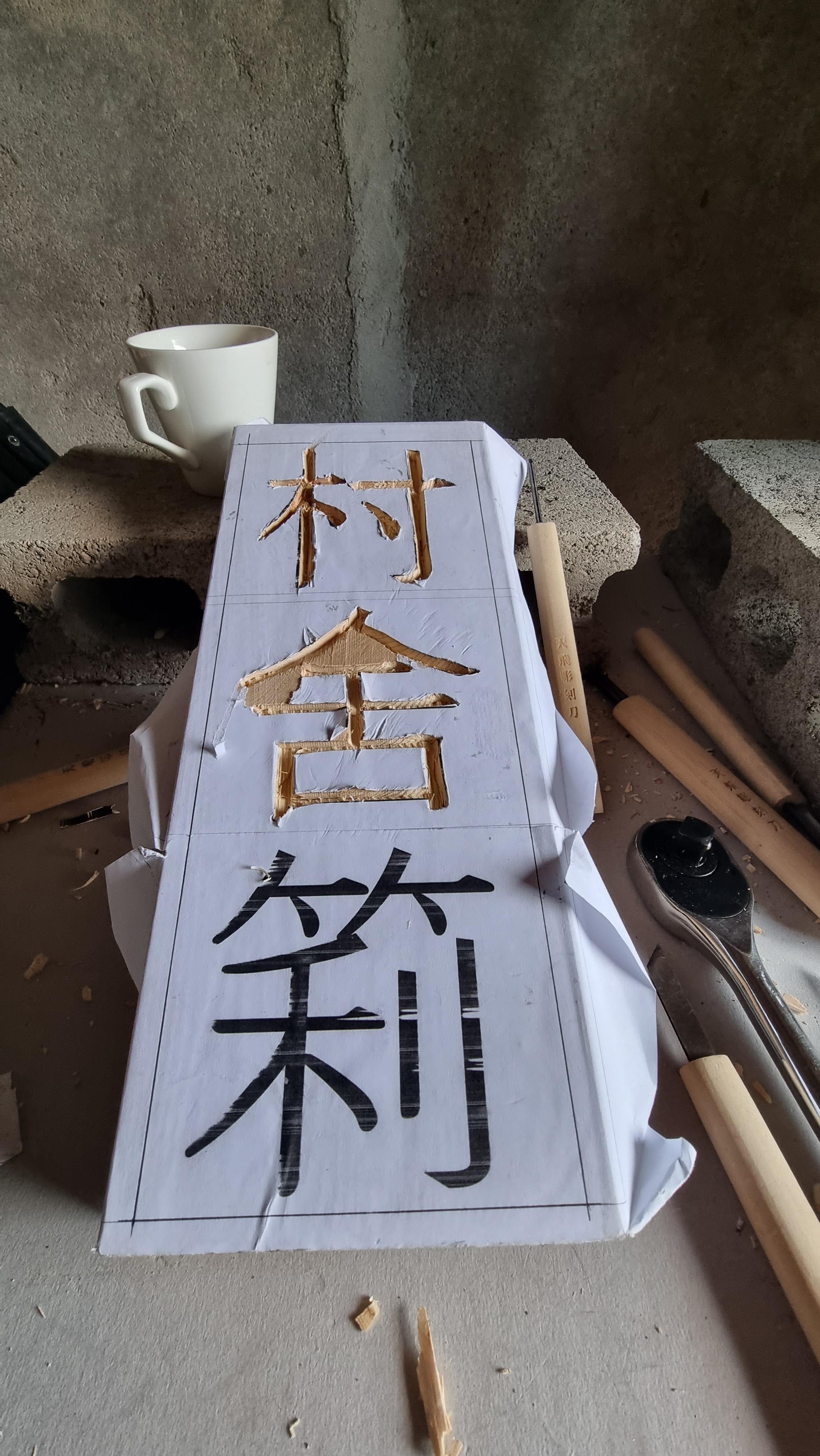 - 오후 날씨도 여전히 좋지 않다. 오후에는 대문 기둥이나 현관문 앞에 달 예정인 '문패' 서각 작업을 좀 했다. 명칭은 내 SNS 계정에 사용중인 닉 '촌사리' 다. 한자로는 '村舍筣' 이렇게 썼다. 앞서 만든 쉼터의 현판은 양각으로 서각을 했는데, 이번에는 음각으로 했다. 나무의 폭이 좁고, 한자의 획수가 많아 새기기가 곤란한 점도 고려한 거다. 마지막 자인 '리'는 마땅한 한자가 없어 마을에 대나무도 많고, 옛날에 농사를 지을 때 대나무로 만든 도구나 집기들을 많이 사용했다는 생각에 '대울타리 리'자를 택했다.