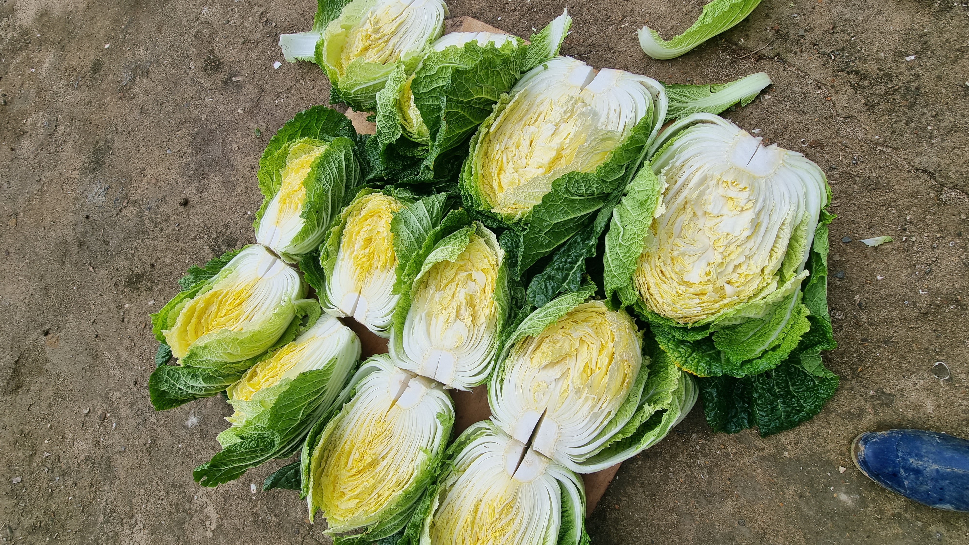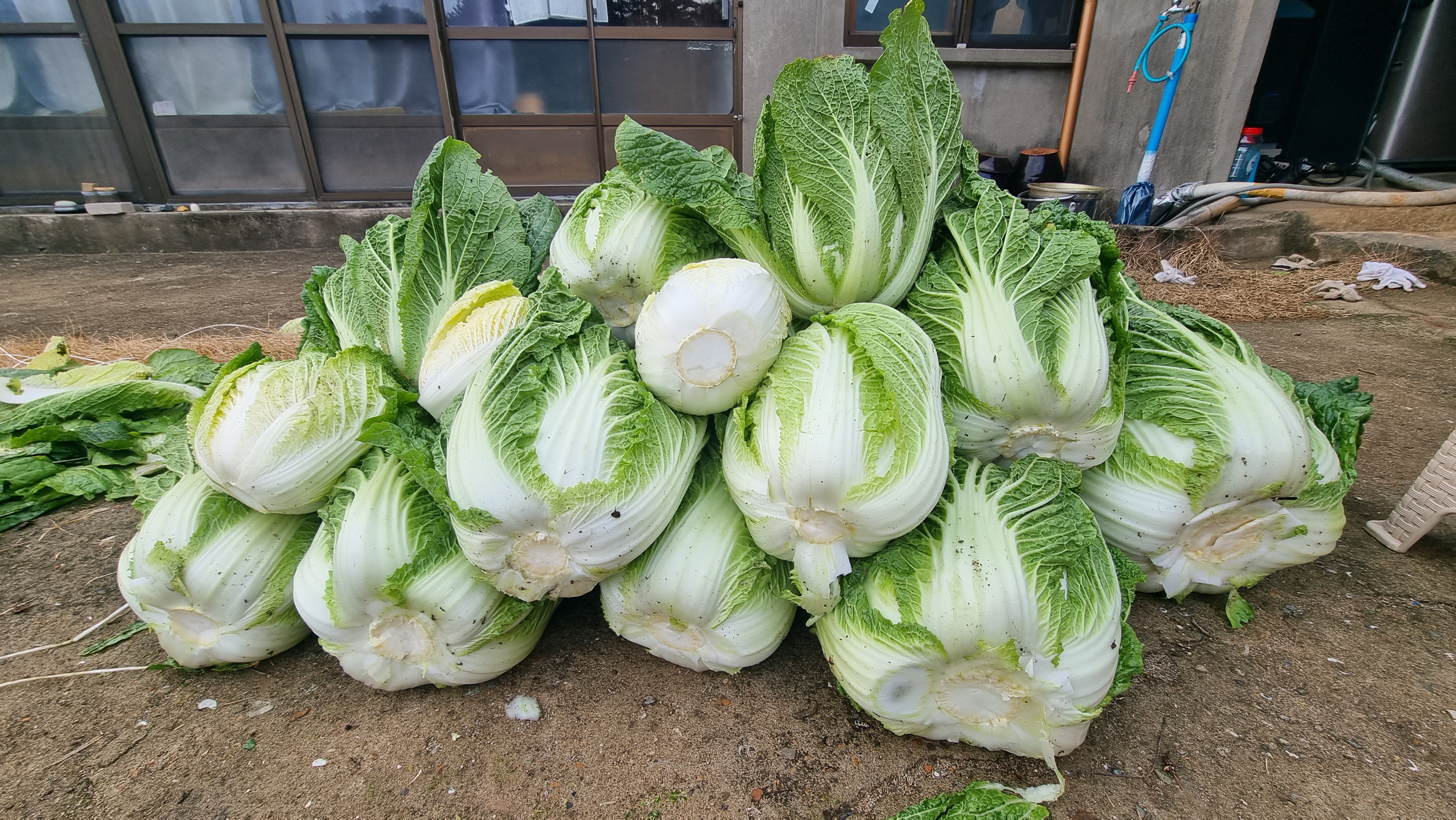 - 기온이 많이 내려갔다. 바람도 세차다. 오늘은 방에서 나가자 마자 아침 운동도 생략하고 김장 준비에 들어갔다. 집앞 채소밭에 있는 배추를 뽑았는데, 20여 포기다. 그 배추들 중 큰 것은 너무 크서 반으로 가르기도 힘든 것이 있었다. 우선 밭에서 배추를 뽑아 뿌리 부분을 자른 후 마당으로 옮겼다. 마당에서 다시 버려야 할 잎들을 제거하고 다듬은 후, 반으로 가르고 다시 반의 가운데에 칼집을 냈다. 김장은 다음 주 화, 수요일쯤 할 예정이다. 그래서 그동안 얼지 않도록 다듬은 배추를 창고에 쌓아 보온재와 옛날 덕석으로 덮어 두었다. 오늘부터는 계속해서 강추위가 온다는 예보다.