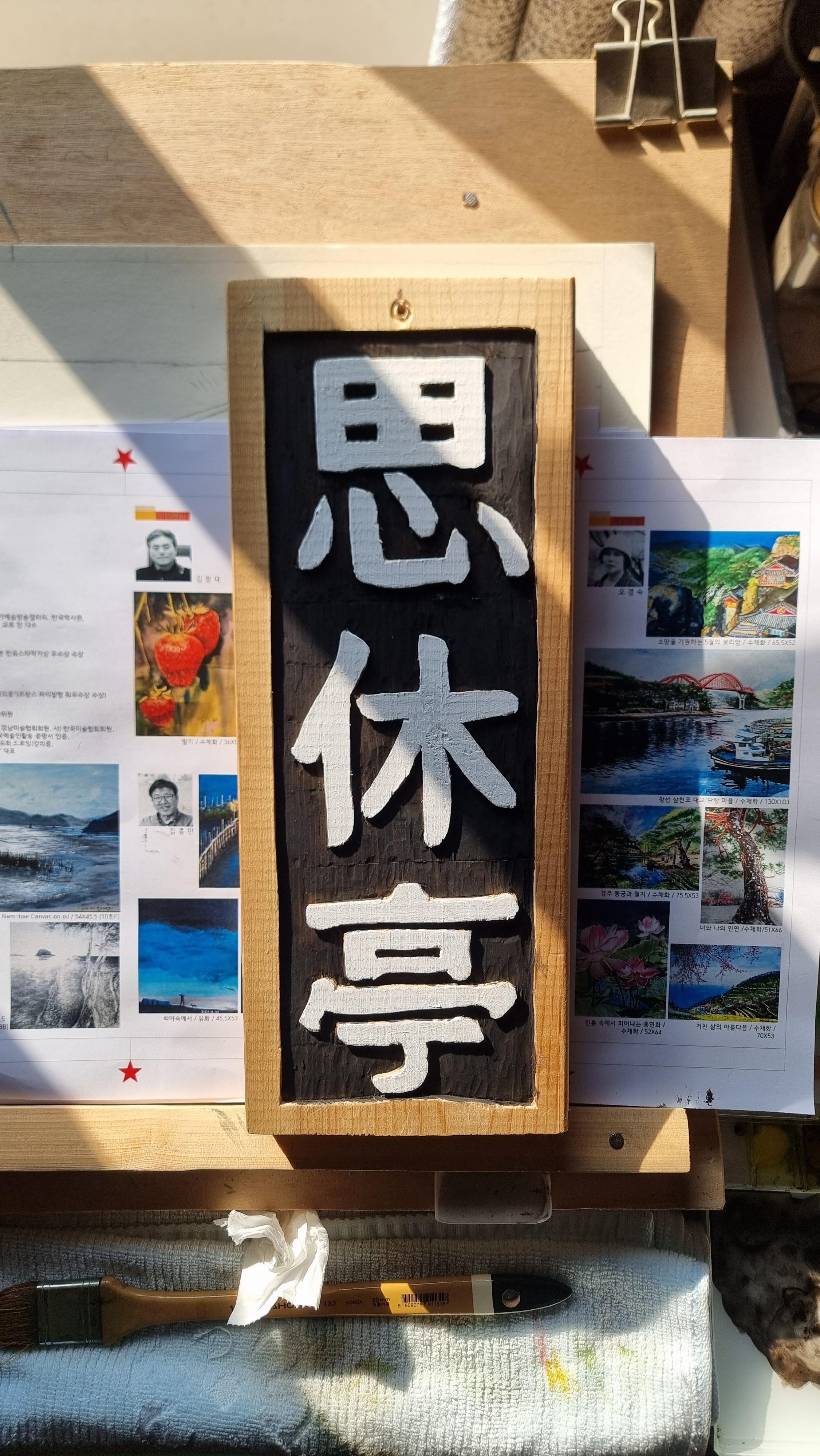 ◎ 2023.12.15 - 남해, 금(흐림, 비) : 그림 연습, 쉼터 현판 제작 준비 등.