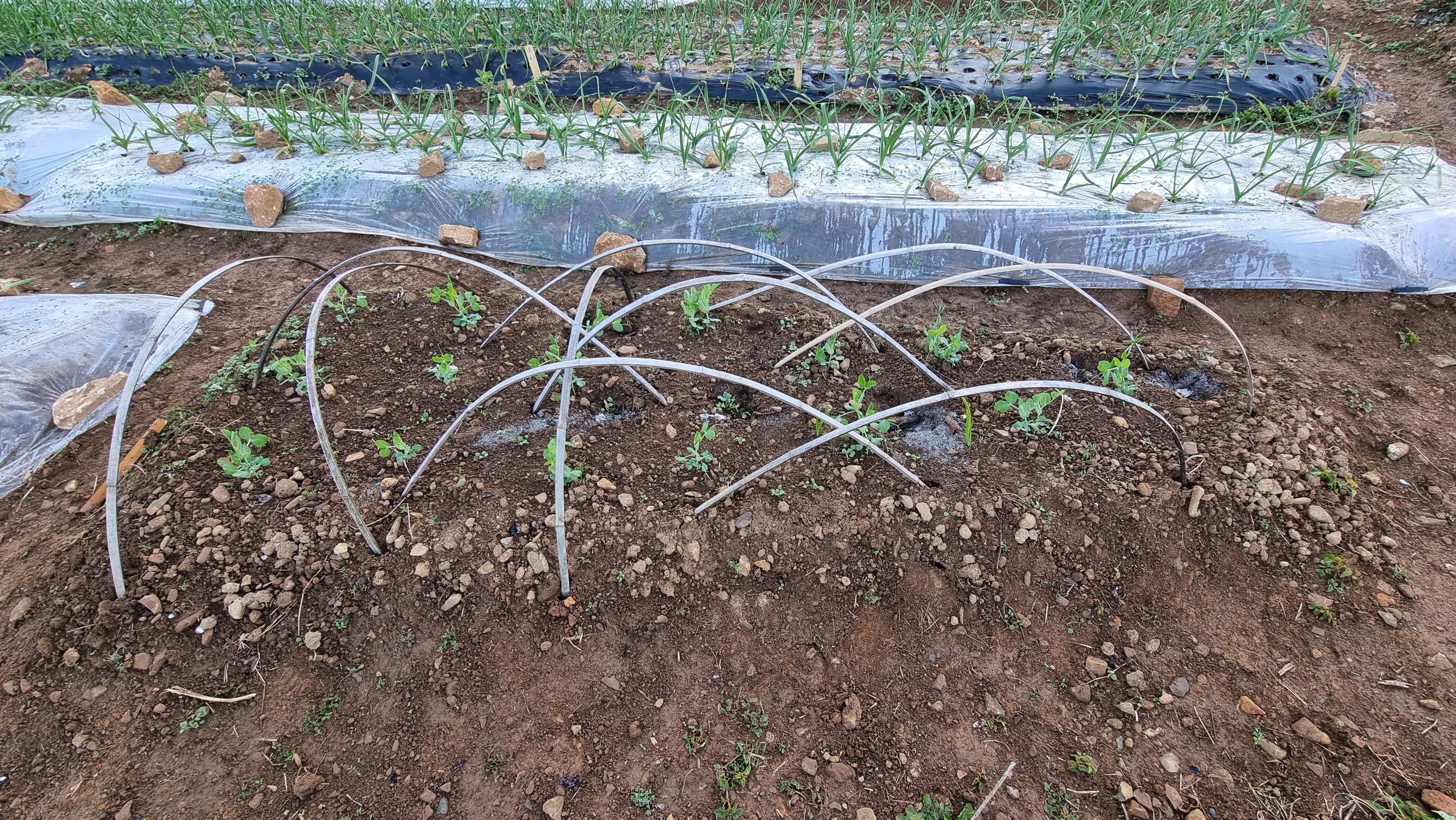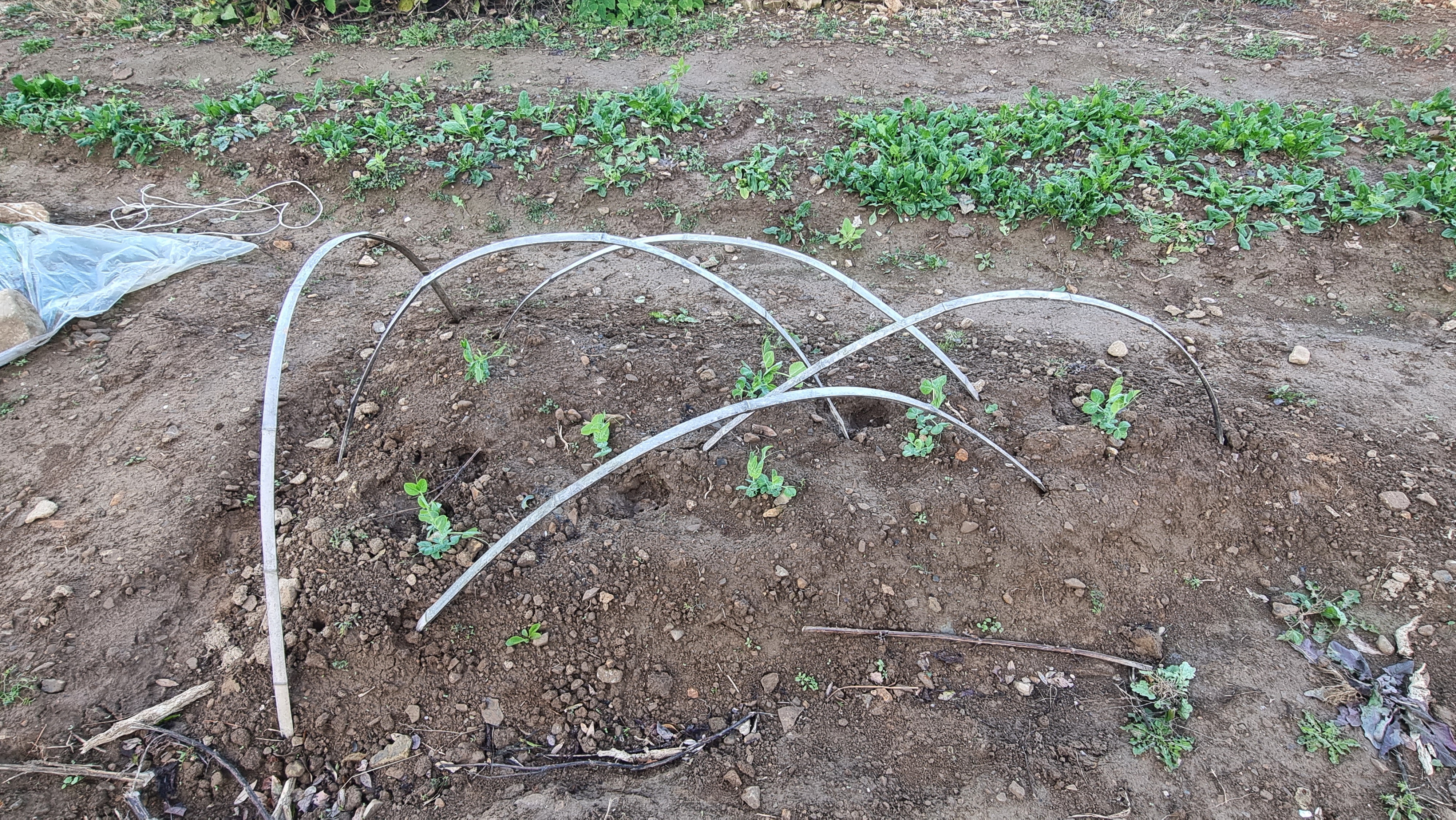 - 오늘은 아침을 먹기 전 뒷밭에 일을 좀 했다. 바람도 없는 포근한 아침이다. 완두콩을 마늘을 심은 짜투리에 몇 군데 심었는데, 이미 싹은 10~20센티 정도 자랐다. 혹 갑작스런 추위에 견디지 못할까 싶어 조치를 한 것이다. 작년에도 심었는데, 아무런 보온 조치를 하지 않은 탓에 몇 개 심지 않았지만 대부분 얼어 죽고 몇 포기만 살아 남았었다. 물론 봄에 모종으로 심어도 되지만 어짜피 공간이 있어 심은 것이다.