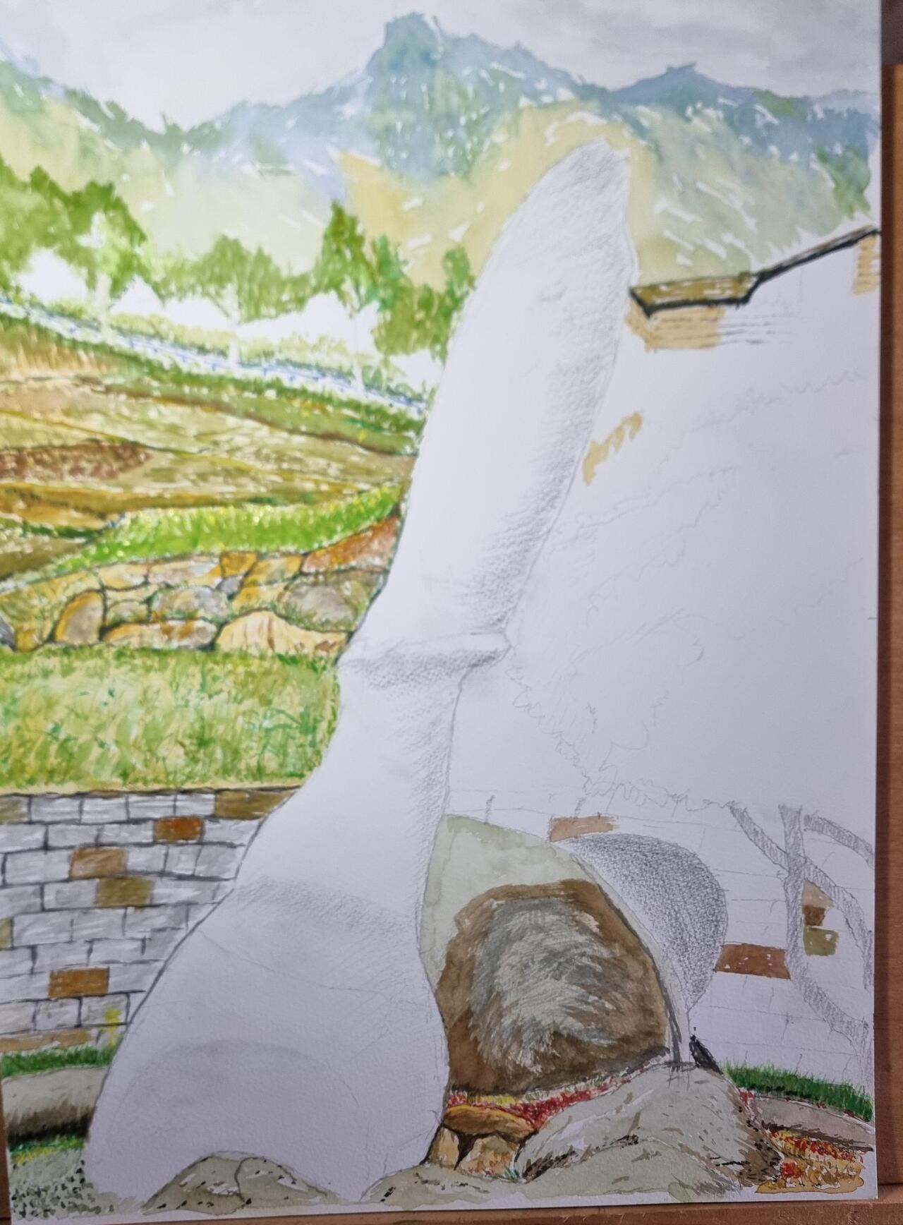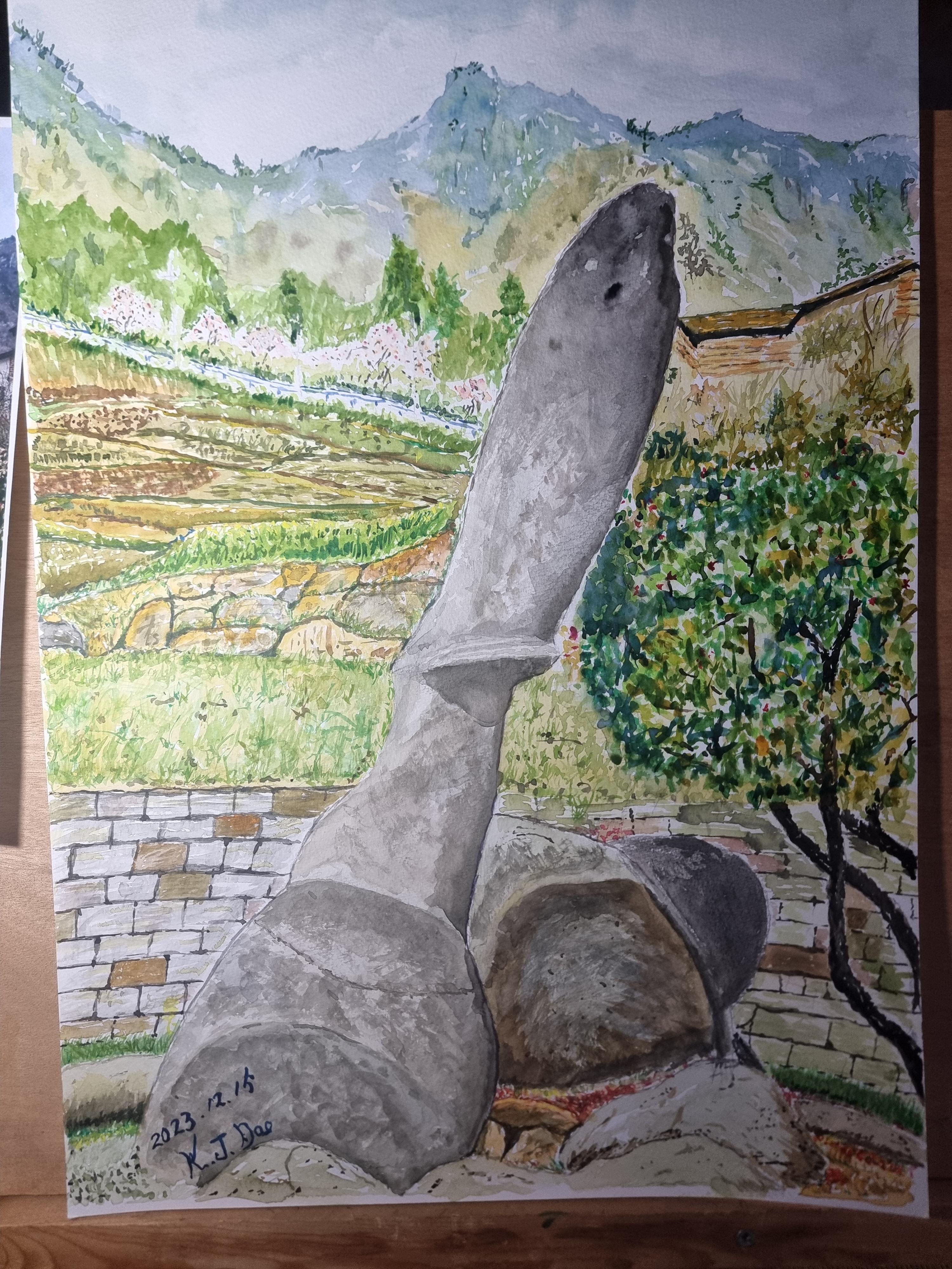 - 문화원에서 서양화(수채화) 수업이 있었다. 올해 마지막 수업이란다. 일주일에 한번 두 시간을 하는 수업인데, 몇 번 빠지기는 했지만 그래도 양호하게 수업을 받았다. 꾸준히 수업 받는 인원은 5~6명 정도밖에 되지 않았다. 오늘은 얼마전에 스케치한 가천 다랭이 마을의 '남근석 바위'에 채색을 좀 해 봤다. 아주 일부밖에 하지 못했고, 집에 와서 오랜만에 연습도 좀 해봤다. 이렇게 또 한해가 가네.