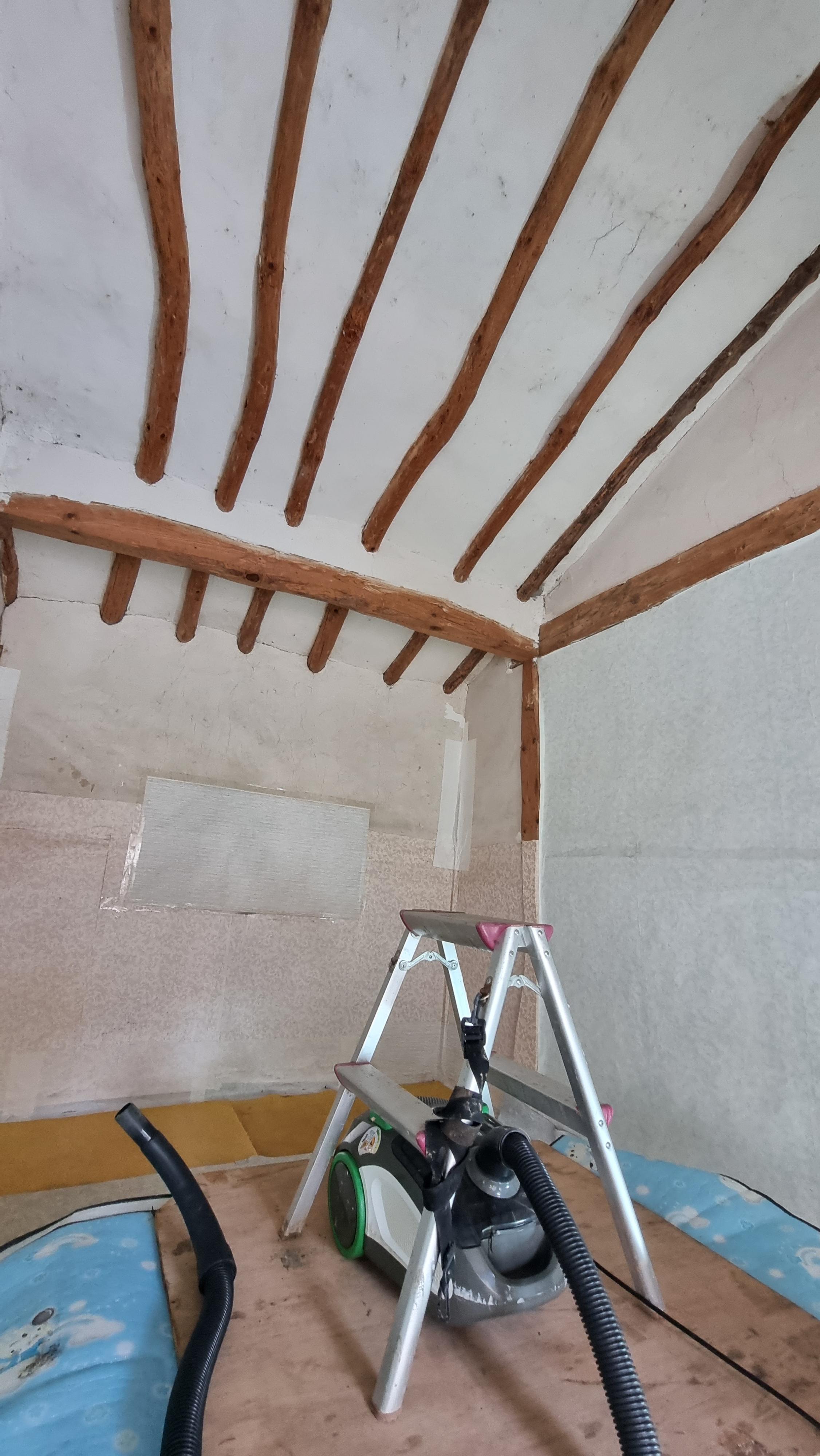 - 아침을 먹고 바로 작업을 시작했다. 벽지를 뜯어 내는 일도 쉬운 일이 아니다. 완전히 붙어 있는 것은 뗄어 낼 수도 없고 벽지가 벽에 접착이 잘 되지 않아 우는 곳은 반드시 뜯어 내야 한다. 벽지를 뜯어 내니 군데군데 흙이 떨어져 나간 것도 있고, 기둥과 틈이 많이 벌어져 있는 곳도 있어, 황토 흙으로 메웠다. 벽지를 바르기 전에 한지나 신문지로 초벌해야 할 듯하다.
