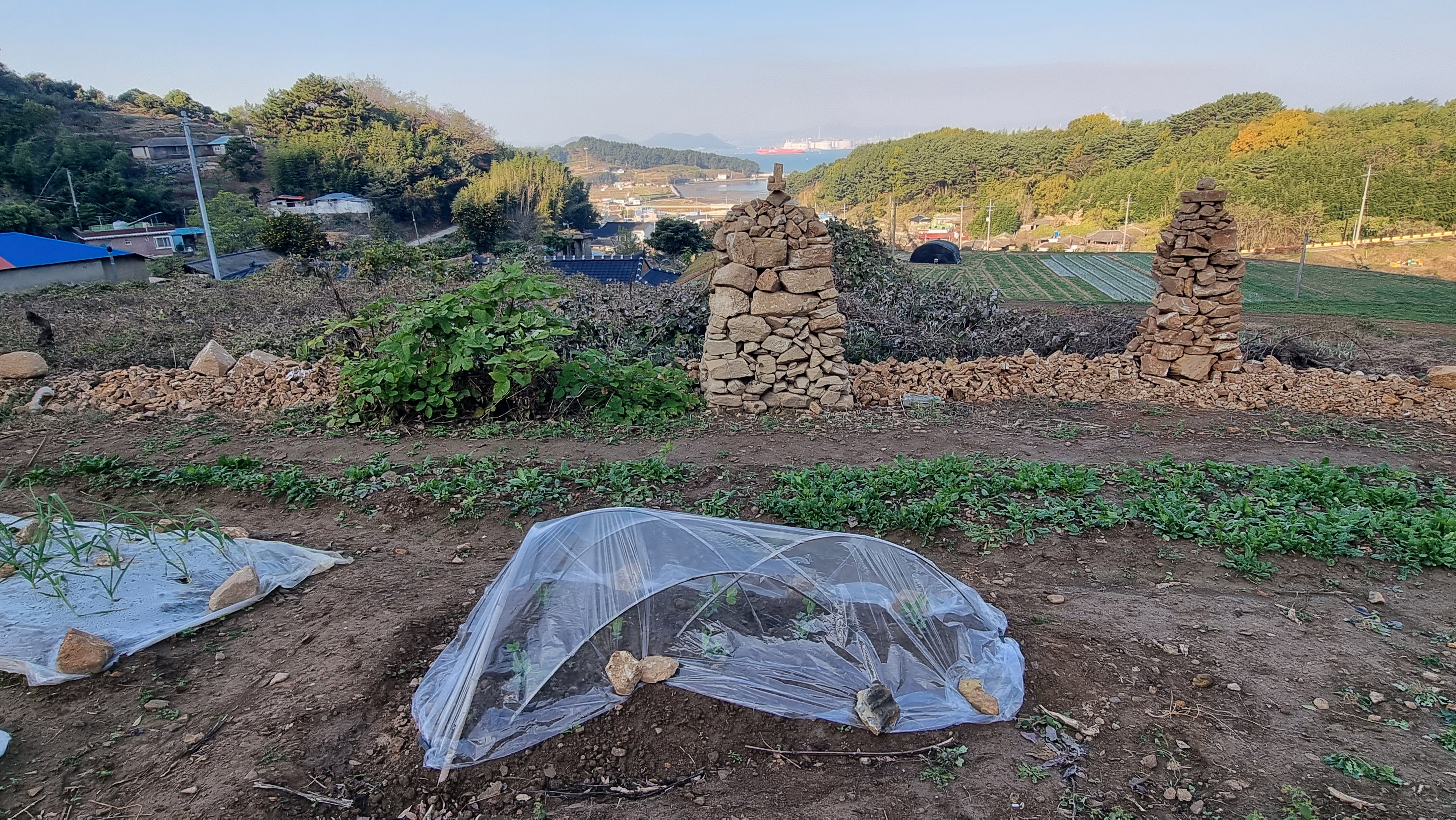 ◎ 2023.11.20 - 남해. 월(맑음) : 완두콩 비닐 씌우기, 읍내 출타 등.