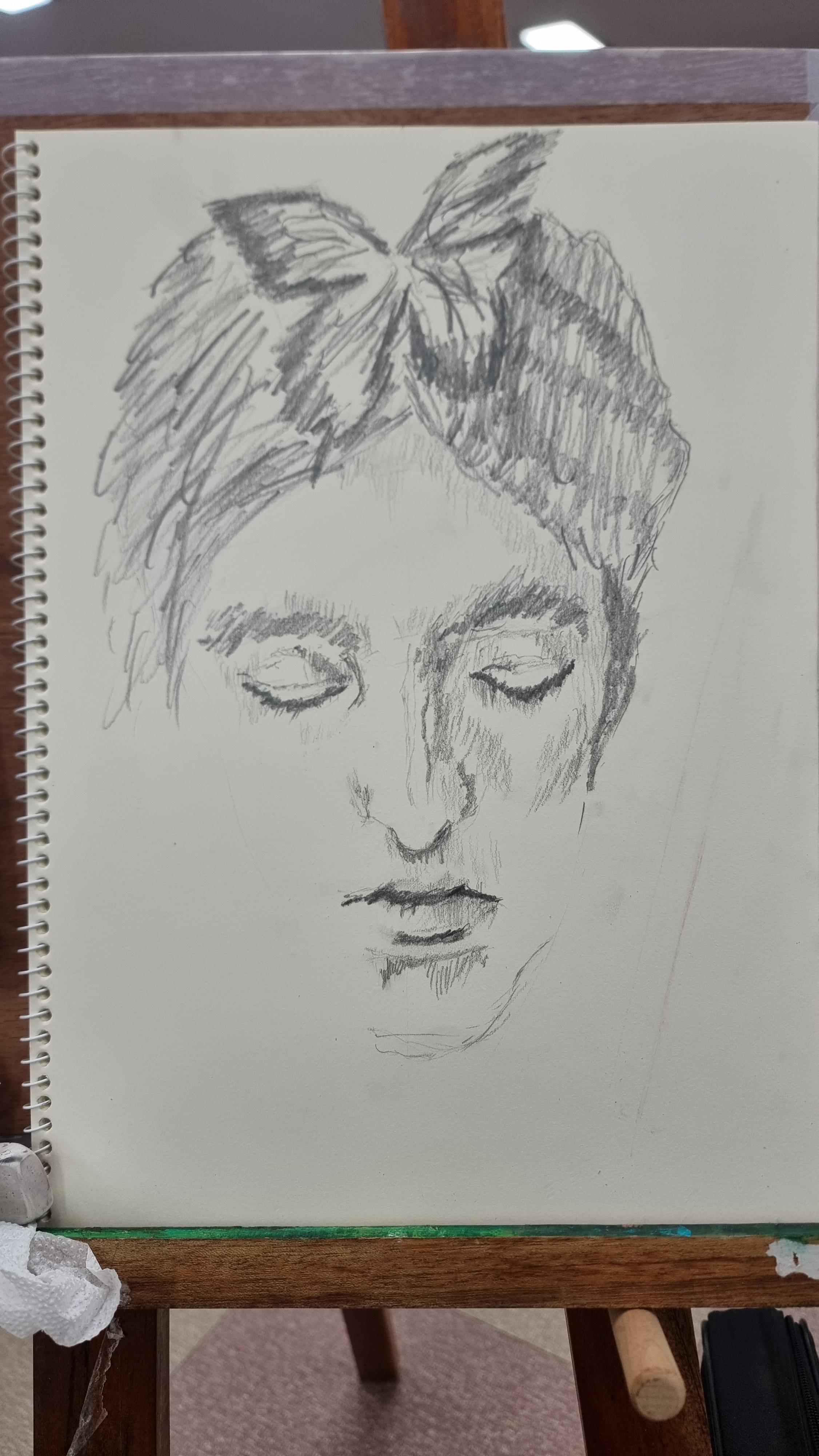 - 오늘 문화원 수업은 드로잉이다. 사람 얼굴 드로잉 사진을 보고 흉내를 내봤다. 그리고 올해 봄부터 수채화 수업을 같이 한 분들의 작품을 문화원에 전시를 한단다. 그래서 수채화와 드로잉 그림 몇 점씩을 내라는데 참으로 난감하다. 그렇다고 빠지기도 뭐한 상황이라...