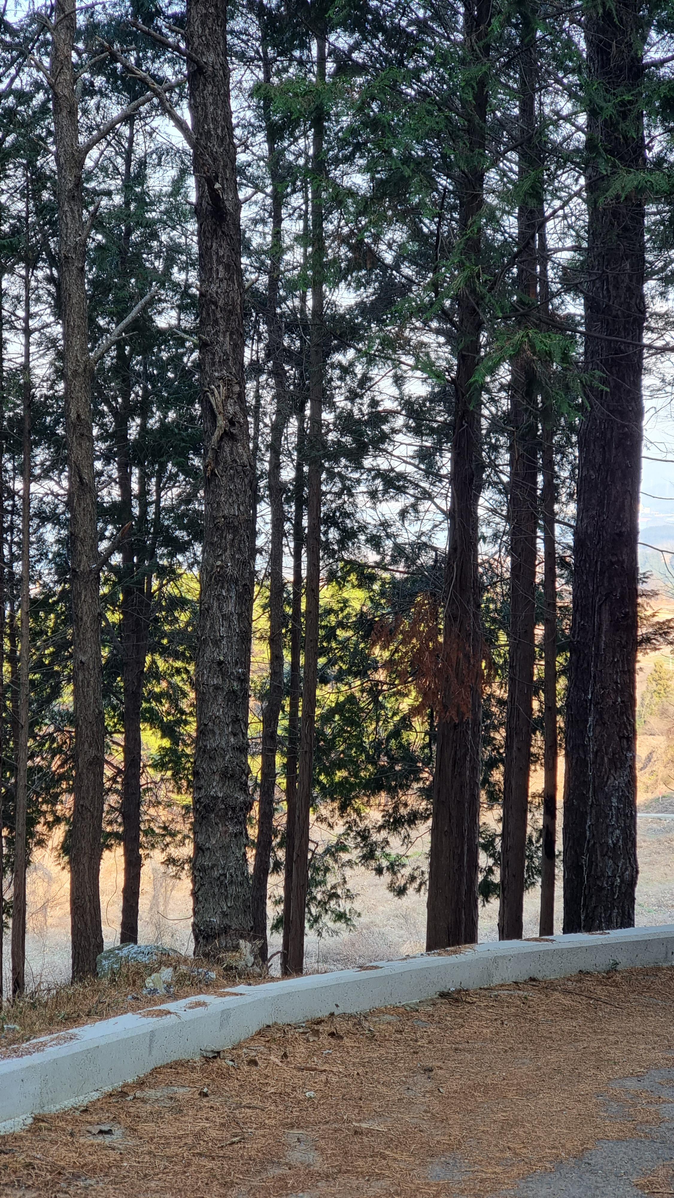 - 오늘도 늦은 아침을 먹고 주변 산책에 나섰다. 산책길은 엊그제 갔던 코스와 별 다르지 않다. 역시 오늘도 여기저기 시금치 밭에는 시금치를 수확하느라 분주했다. 오늘 산책길에 마을에서 만들어 놓은 '편백나무 야영장'을 지나쳤는데, 그 길에 떨어진 솔잎들이 햇살을 받아 융단을 깔아 놓은 듯 반짝거렸다. 한 참을 걸어 올라 갔을 때 작업을 하고 내려 오고 있는 포크레인이 있어 기사님에게 물었더니 계속 가면 길이 끊긴다고 하셨다.