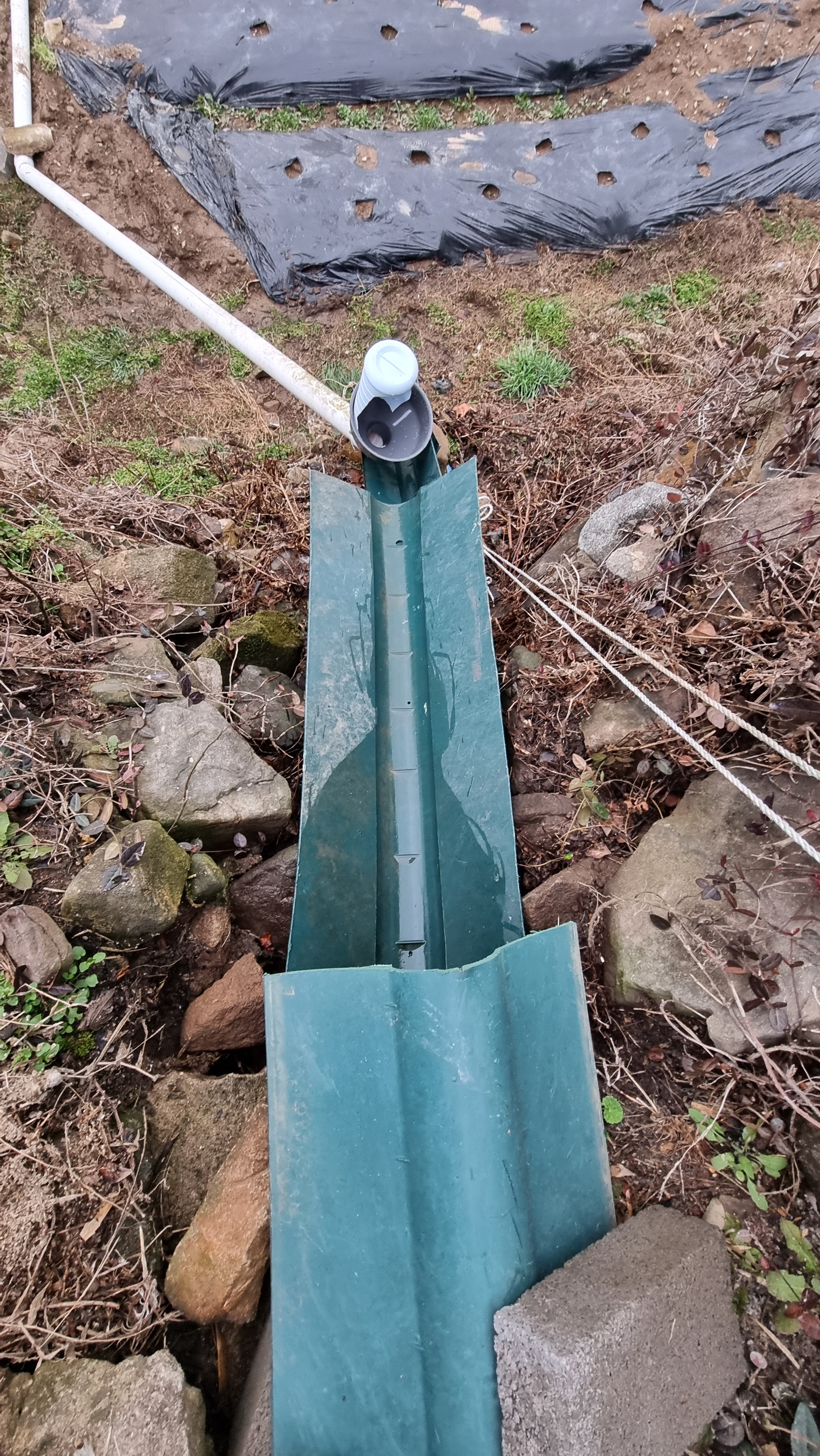 - 교육을 마치고 집에 와서는 오늘 읍내에서 사 온 '깔때기'을 가지고 배수로 물받이를 만들었는데, 흐르는 물이 밖으로 튀지 않게 빈 락스 통을 오려서 깔대기에 붙였다. 이번 비가 그치면 배수로에 시멘트 작업을 해서 흐르는 물이 배수관을 통해서만 흐를 수 있도록 마무리를 지어야 할 듯하다. 이번 비로 계곡에 물도 제법 많이 흘러 내린다.
