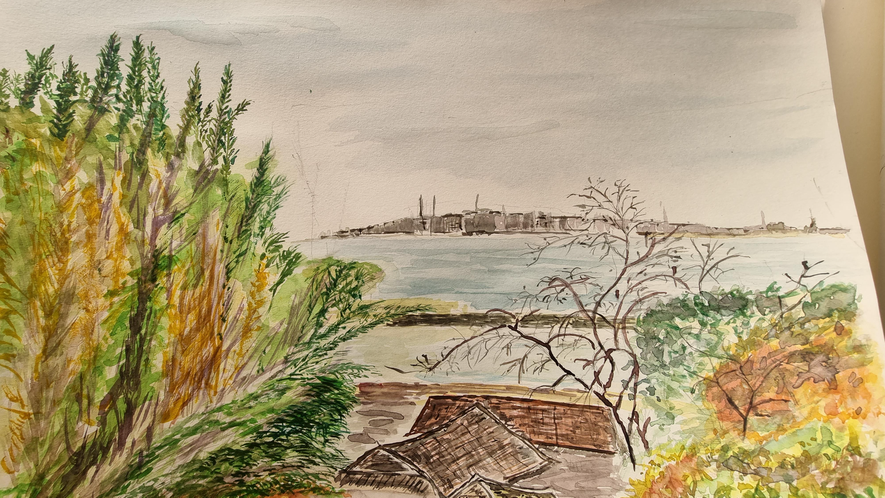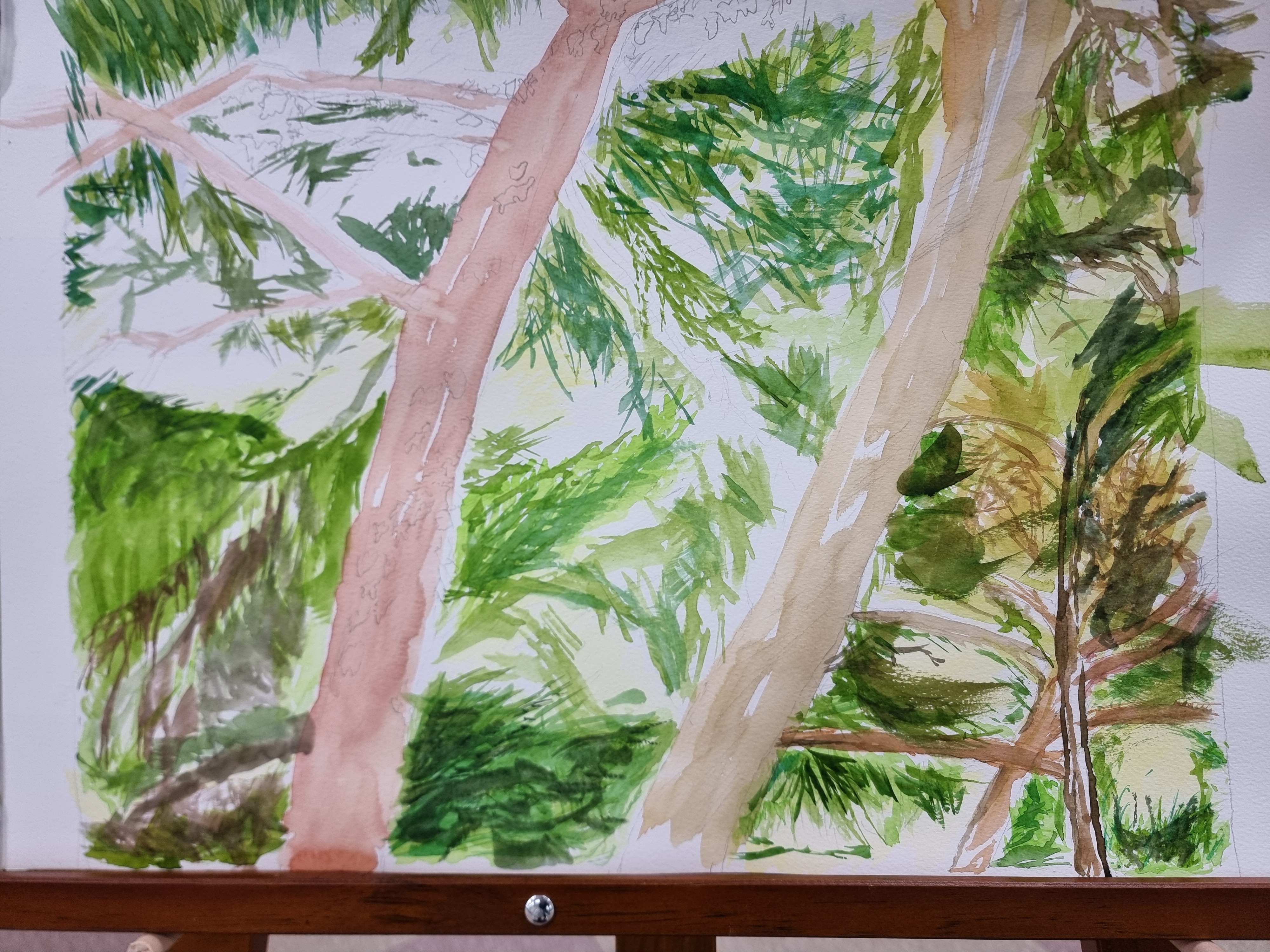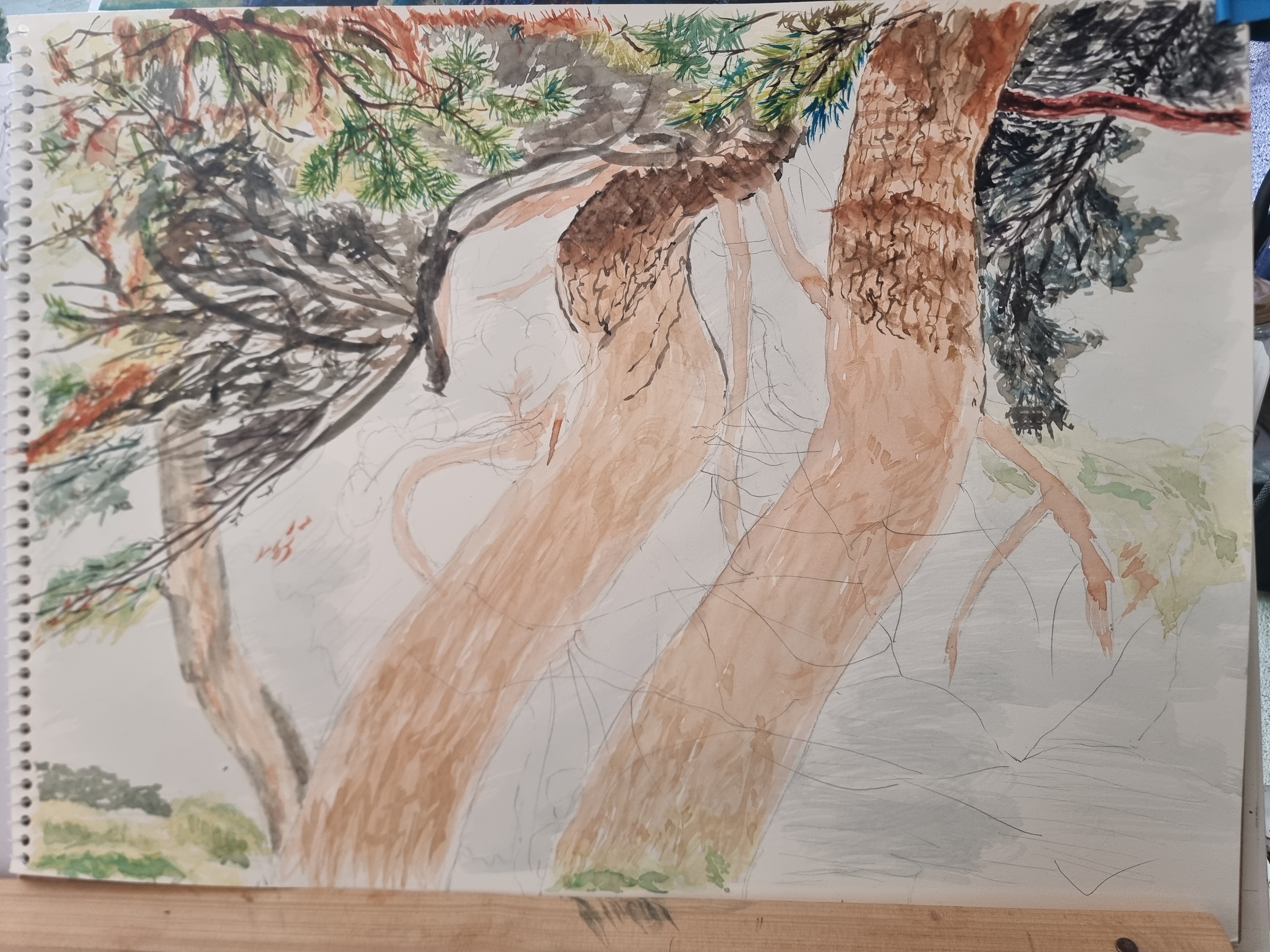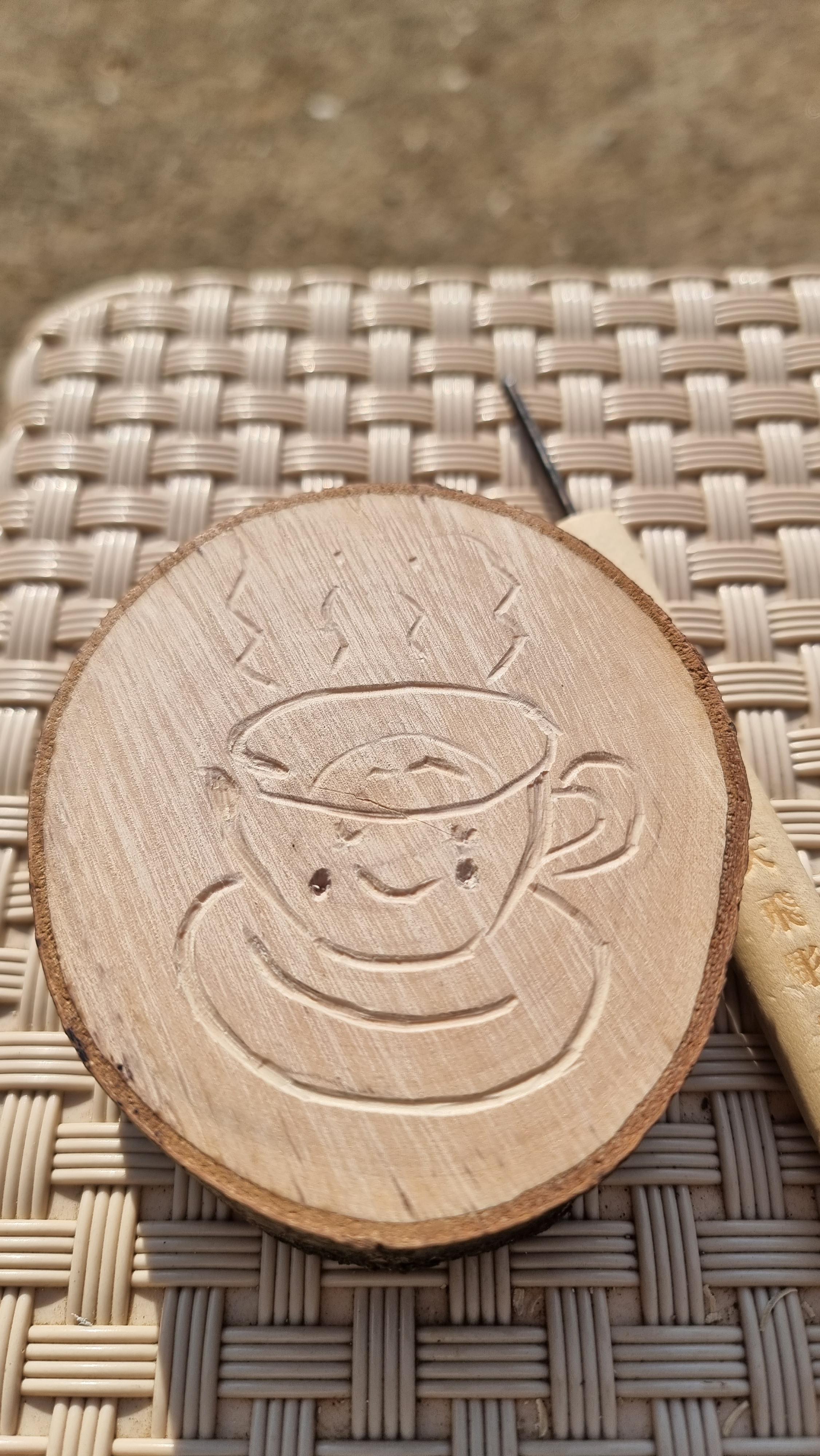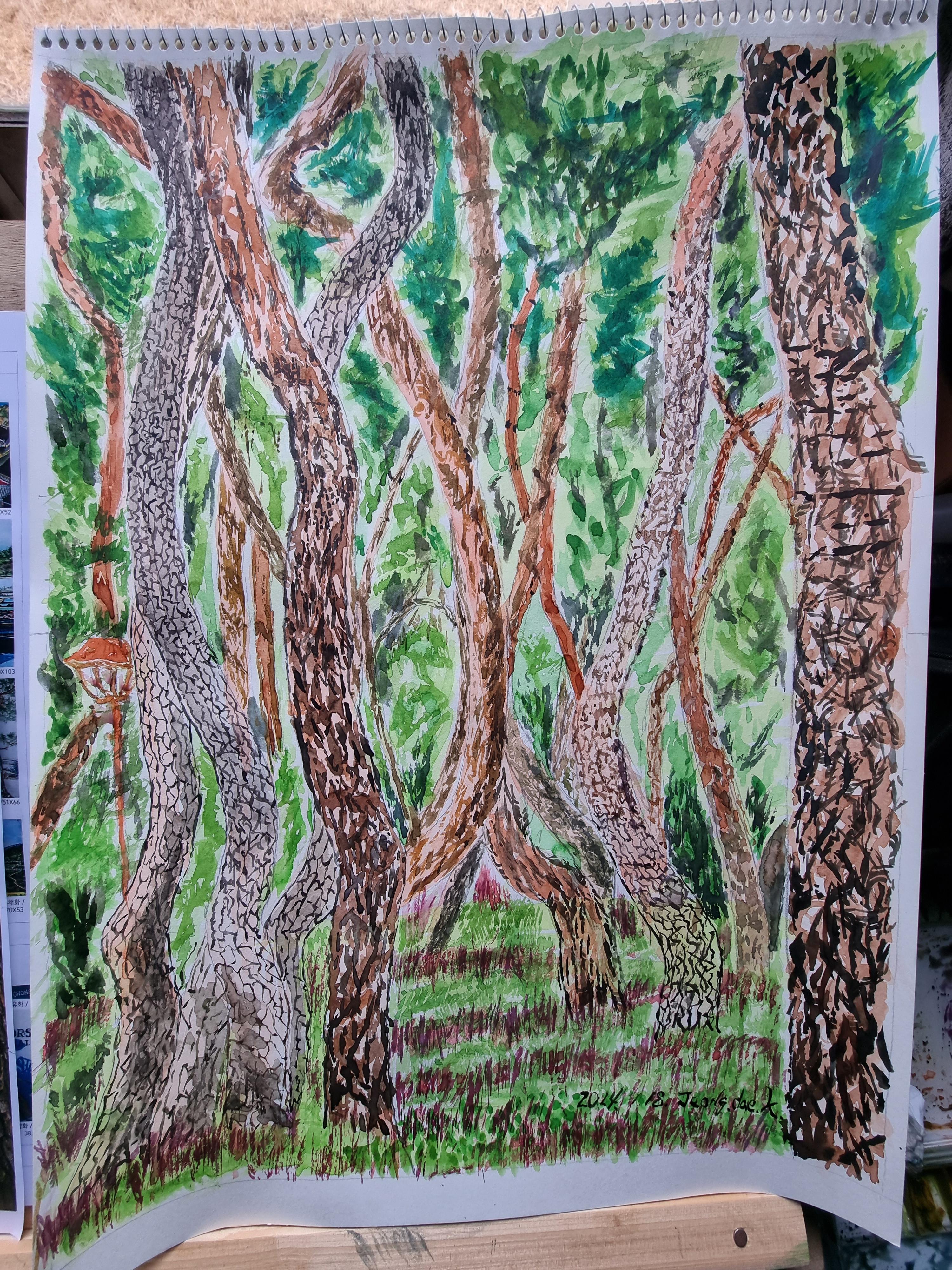 - 집에 와서는 얼마전에 잘라다 놓은 적당한 나무토막으로 집에 손님이 오거나 해서 밖에서 커피 등을 마시게 될 경우, 뜨거운 커피 포트나 작은 용기를 올려 놓을 수 있는 받침대를 만들고, 그것에 커피 포트 모양을 새겨 보았다. 또 점심을 먹고는 가끔 조금씩 그리고 있던 그림에도 채색을 좀 해봤다. 아직 완성하기는 이르지만 조금씩 하는 것이 오히려 더 좋은 느낌이다. 그러다 보니 하루가 또 다갔다.
