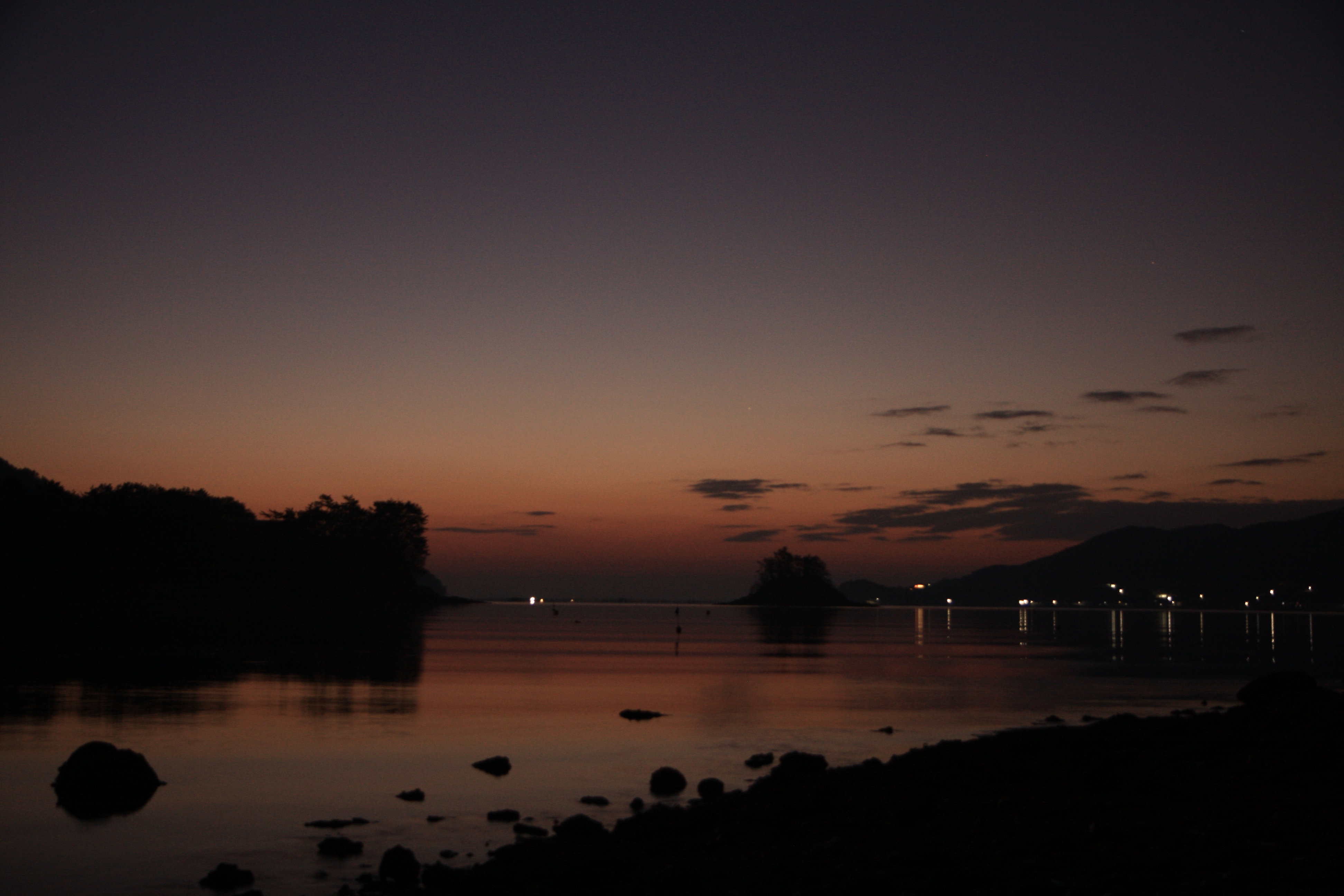 - 5시 40분을 막 넘기고 출발을 했다. 목적지까지는 네비에 17킬로가 찍힌다. 걸리는 시간은 40분 정도다, 거리에 비해 시간이 많이 걸린다. 어두운 새벽길이라 평소보다 속도를 낮게 해서 달렸다. 그 새벽에도 많은 차들이 보였지만, 거의 모든 차들이 보리암쪽으로 가는 듯, 나처럼 창선 쪽으로 가는 차는 거의 없다. 일출 포인트가 마을 안으로 통과해 해안 쪽에 있는 모양이다. 그리고 목적지에 거의 다달았을 때는 벌써 수많은 차들과 간간이 오가는 사람들도 보여 바로 이곳이구나 하고 금새 알 수 있었다. 그리고 지나가는 사람에게 물었더니 해안가로 조금만 가면 된다고 말해 주었다. 정말 쉽게 찾았다.