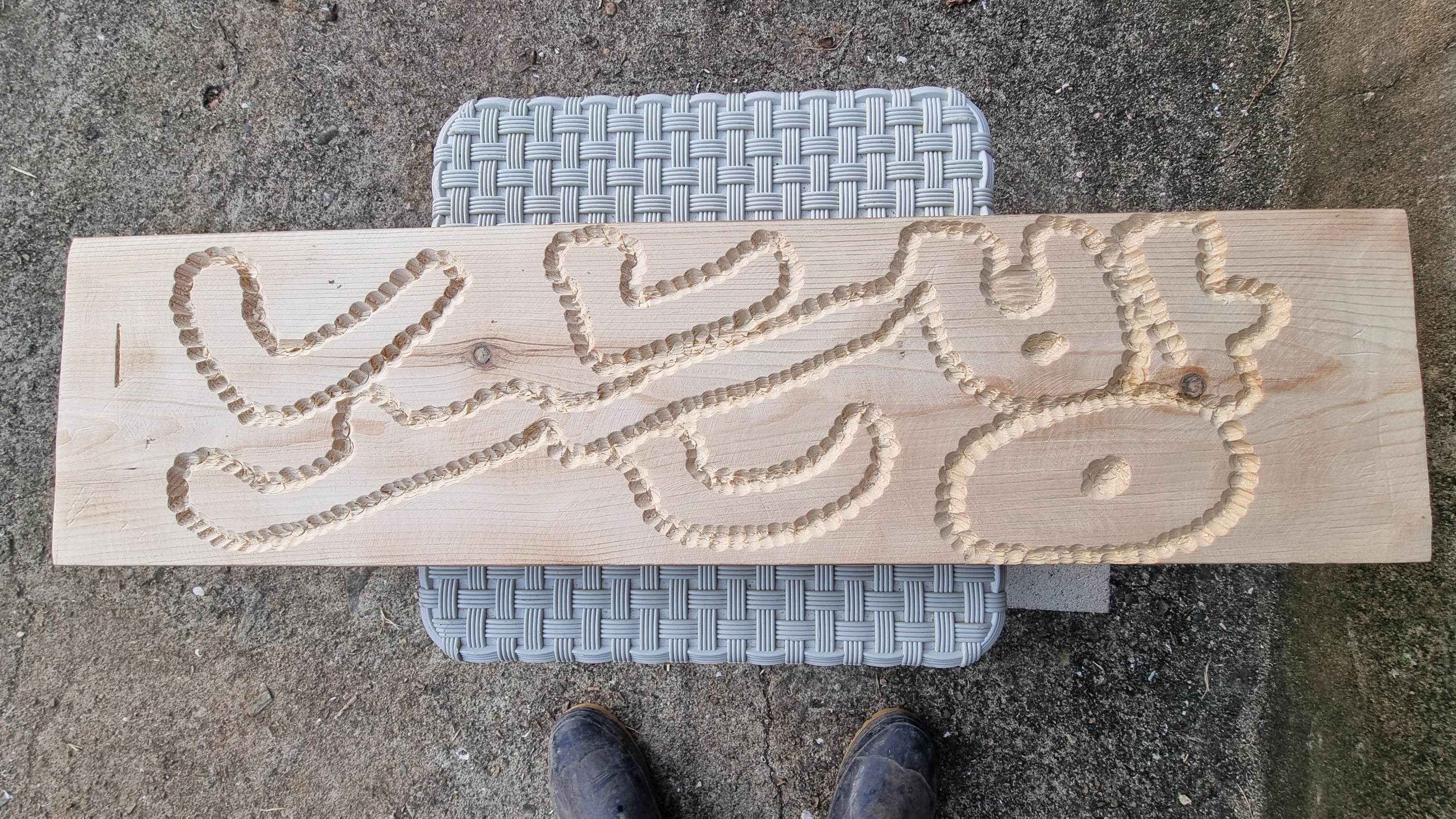 - 아침을 먹고는 지금 만들고 있는 문패의 글자를 다듬고, 음각으로 새긴 글자에는 페인트로 칠을 하지 않고, 부어 넣었다. 당초 계획은 파진 홈에만 부으려고 했지만 말처럼 쉽게 되지 않았다. 그래서 글자에 벗어나 페인트를 문패 전체에 에 묻히는 상태가 되었다. 홈이 파진 글자 속에는 페인트로 채우고, 다른 표면에는 그냥 묻어 있는 거다. 그래서 다음에 표면에는 다른 색을 살짝 입히든지 해서 그 위에 니스를 칠해 물이 나무 속으로 침투하지 않도록 해야겠다.
