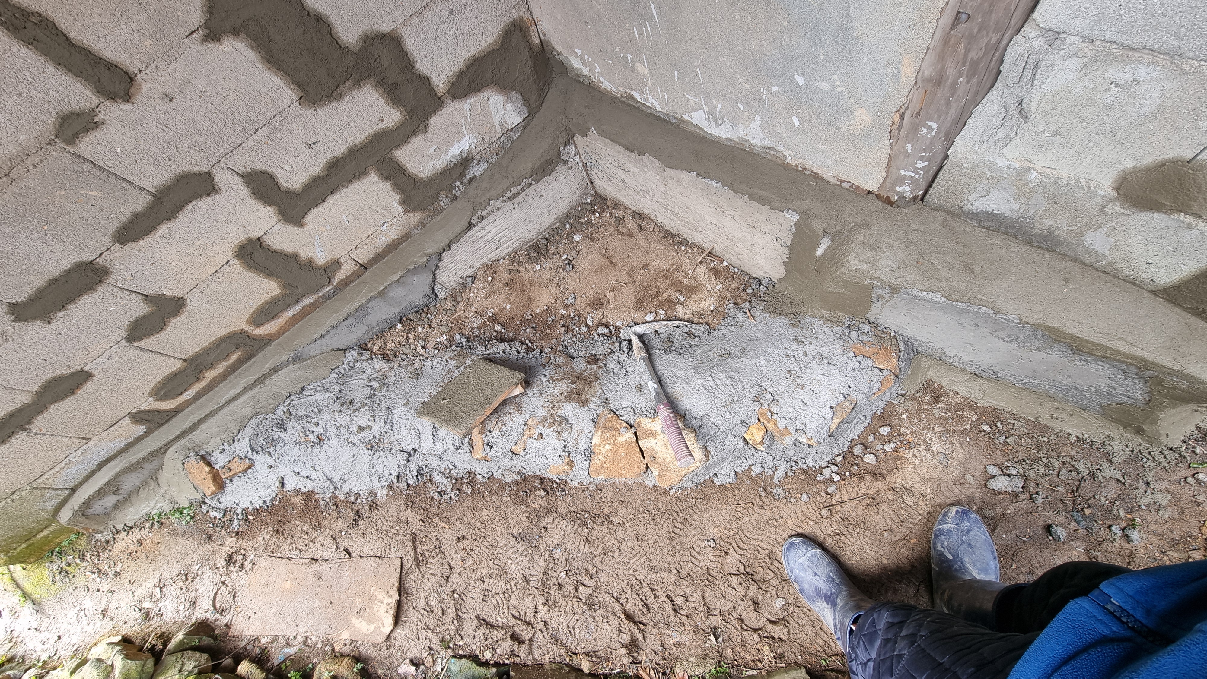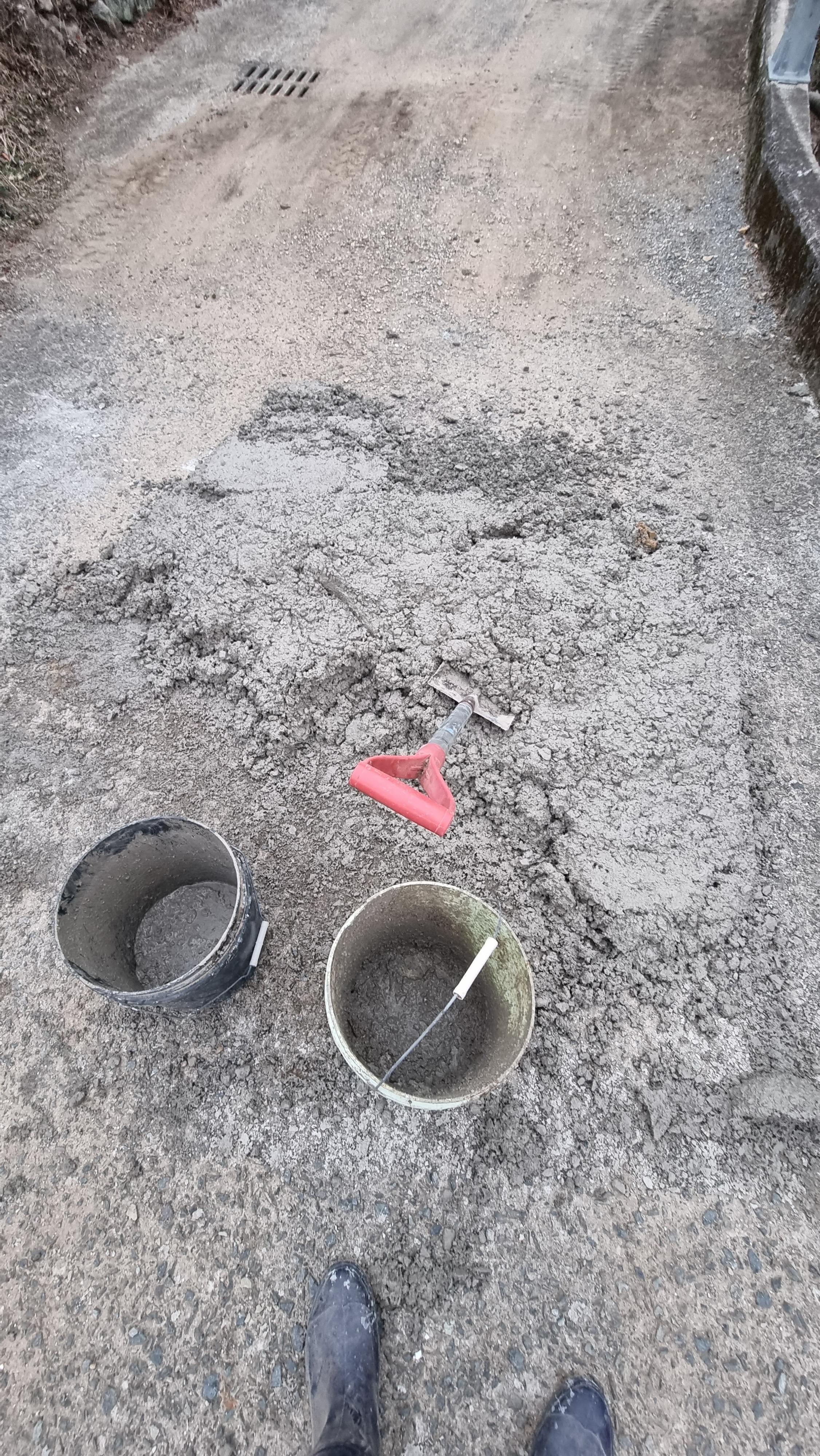 - 또 열심히 문 세척 작업을 하고 있는데, 하천 정비공사를 하고 계신 사장님께서 일전에 부탁한 레미콘을 주시겠단다. 그 레미콘으로 이웃집 앞 삼거리에 차가 회전할 수 있도록 모서리를 조금 넓히는데 사용한다. 사장님께서 포크레인 으로 두 바가지를 부어 주셨다. 그 작업을 한참 했다. 참 고마우신 사장님이시다.