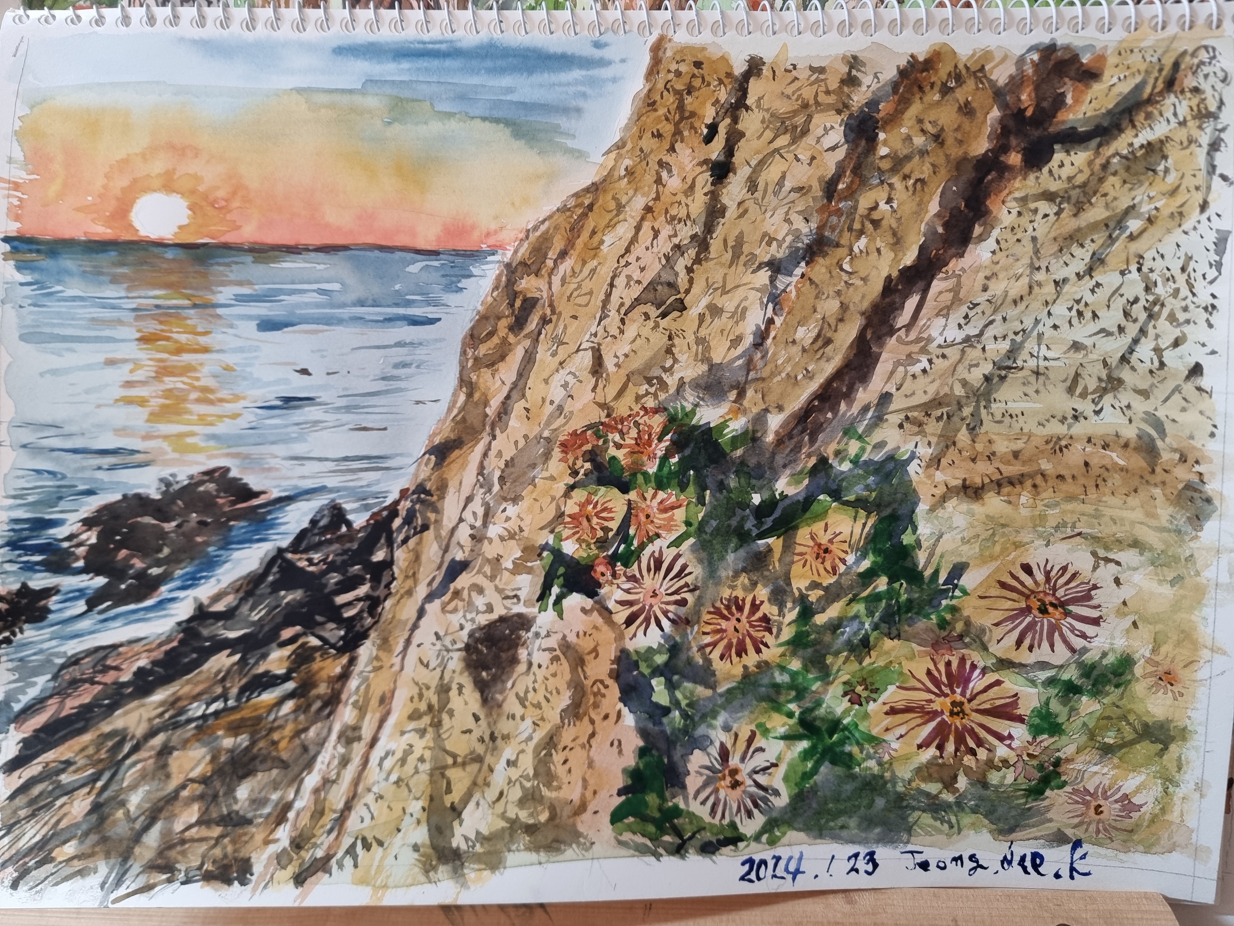 ※ 2024.01.08 - 남해, 월(맑음) : 주변 산책, 그림 연습 등.