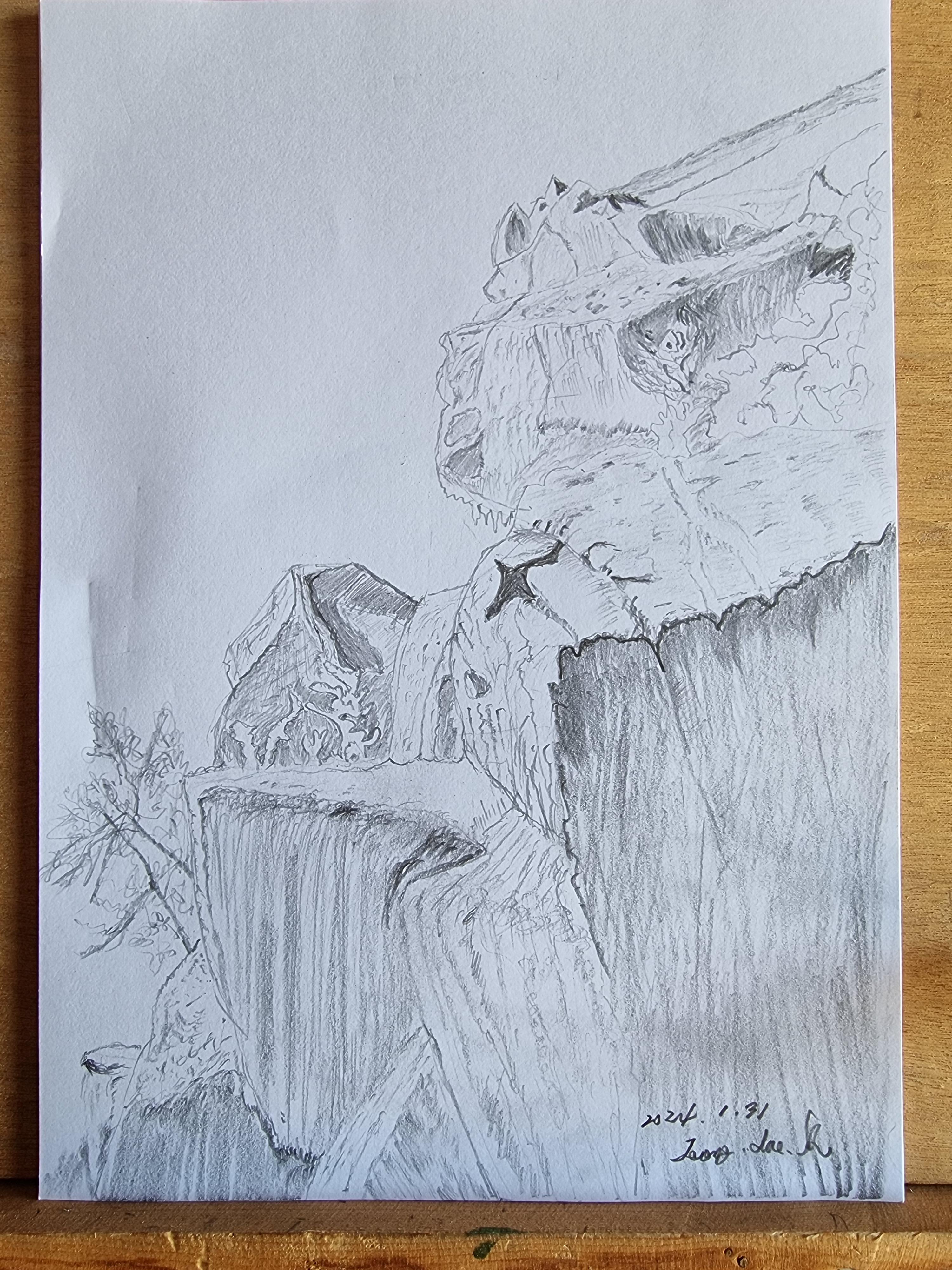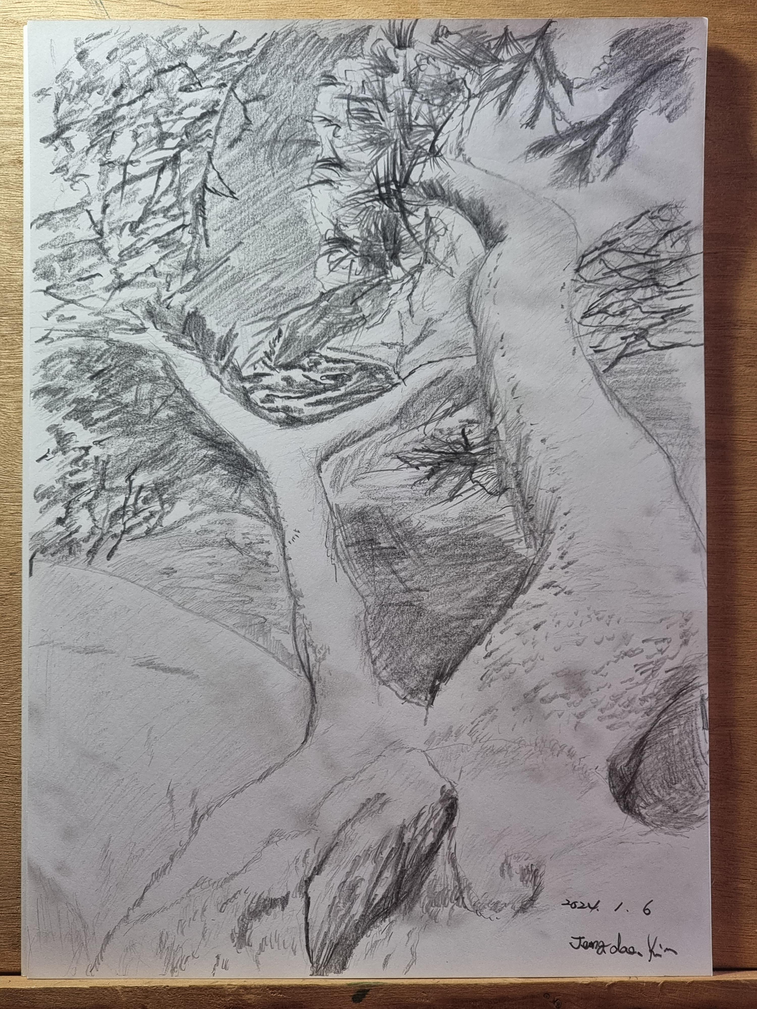 - 오후에는 앞집 박사장님이 집에 오셔서 잠시 얘기를 나누다 가셨다. 아마 계곡 공사가 어떻게 진행되는지 궁금해서 오신듯 하다. 오늘은 그림 연습을 좀 했다. 눈 덮힌 소나무 사진을 스케치 했는데, 어렵다. 사진은 2016년 1월 밀양 백운산에 갔을 때 찍은 사진으로 그날 찍은 사진들이 환상적이다. https://dsgen.tistory.com/3236
