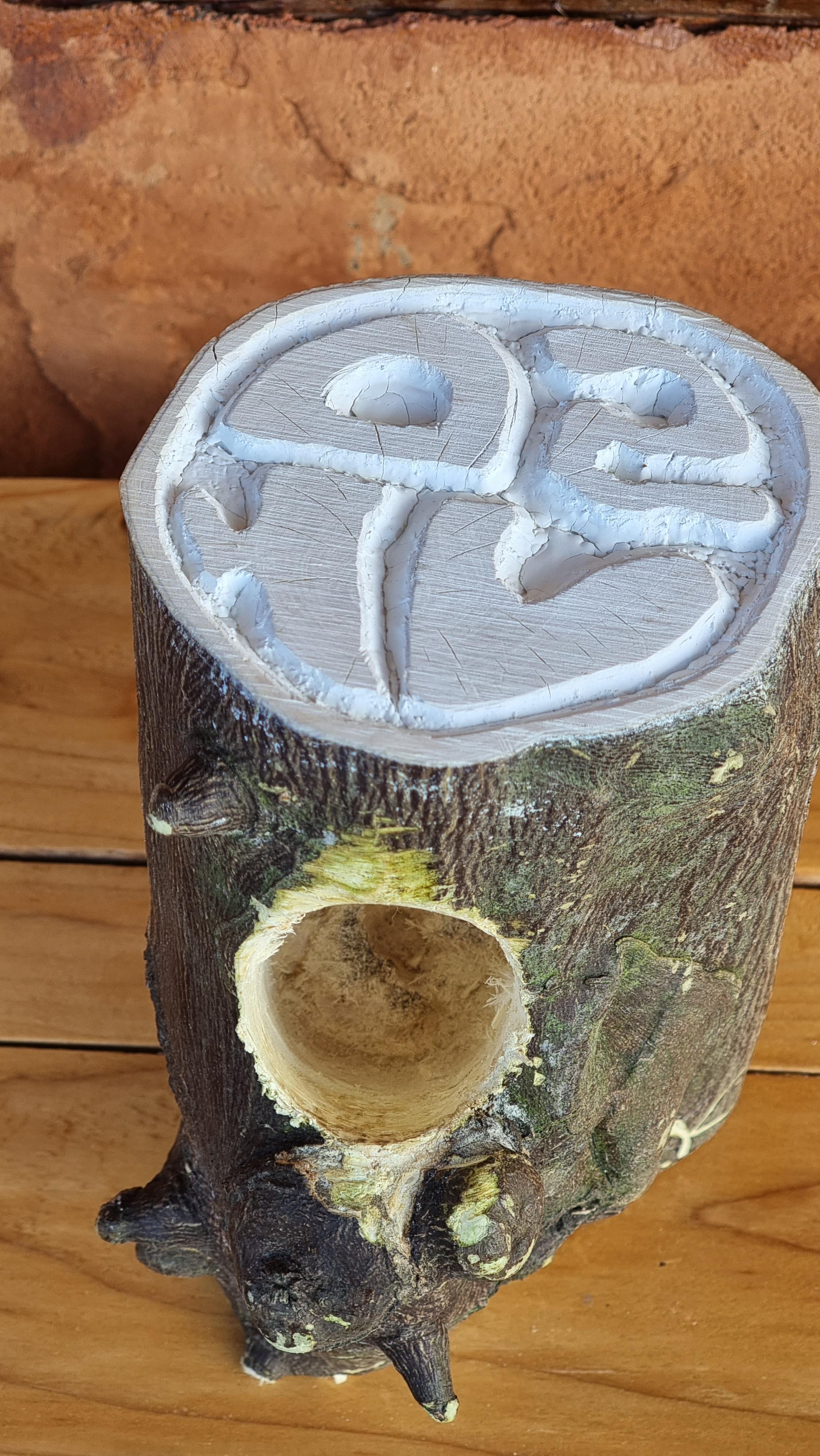 - 요 며칠 간 포근한 날씨가 계속되고 있다. 8시쯤 방에서 나갔지만 그래도 밖은 너무나 조용하다. 아침을 먹고 나니 10시 가까이 되었다. 어제부터 유자나무 토막에 서각을 하던 일을 두 시간쯤 했다. 나무가 워낙 단단해 얕은 깊이라도 망치질을 하지 않고는 작업을 할 수 없었다. 초벌 파기는 다 했다. 이제 좀 더 세밀하게 다듬어야 한다. 지름이 약 8센티 정도 될 듯한데, 새긴 글자는 '삶'이다.