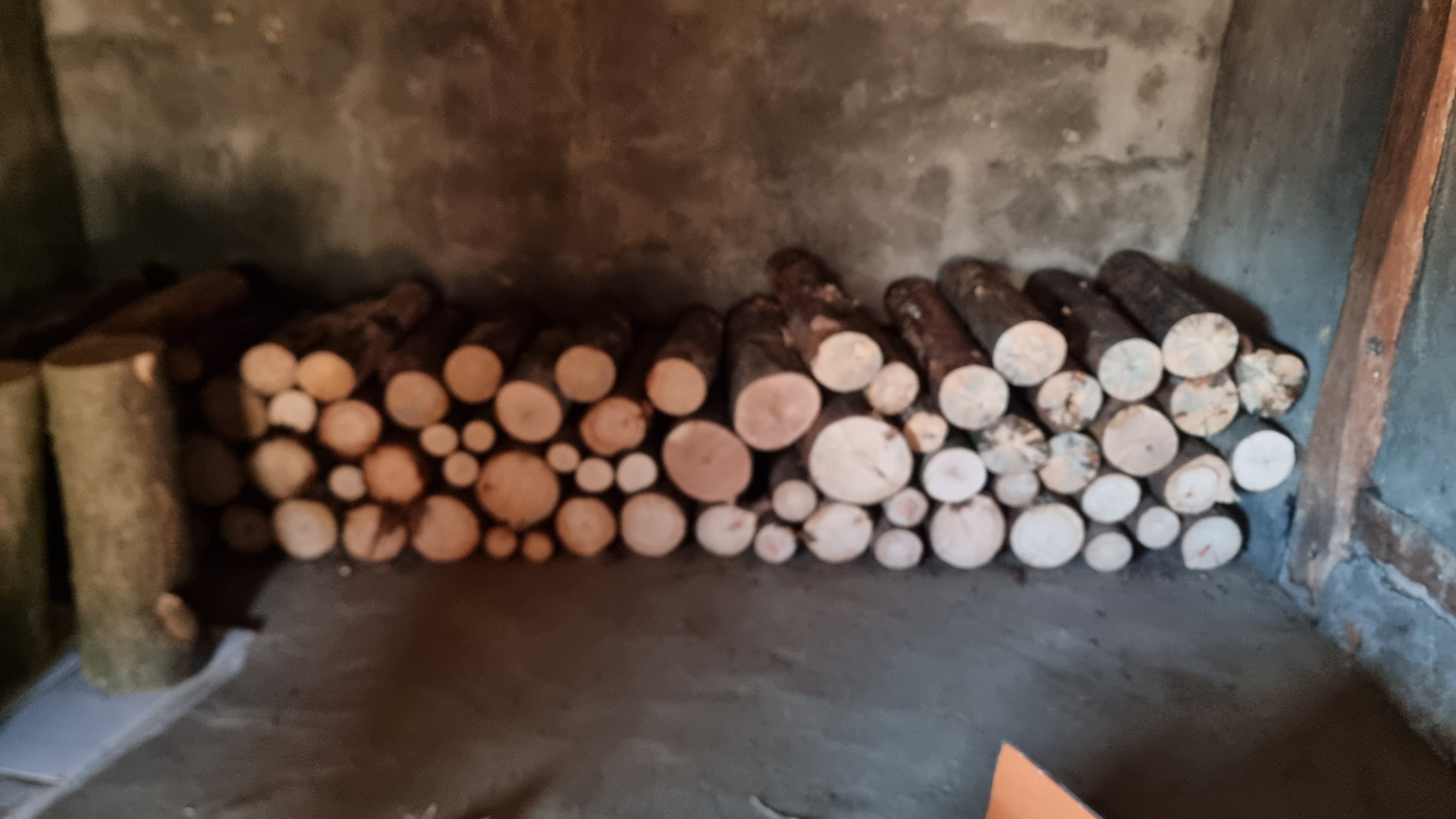 - 아침을 먹고는 주변 산책을 여느 때처럼 했고, 장작용으로 소나무를 여섯 토막을 잘라왔다. 요즘 때는 군블은 2년 전 밭을 만들면서 잘라 낸 아카시아 나무와 지난 해 만들어 창고 가득 들여 놓은 대나무 장작을 사용하고 있다. 보관하고 있는 장작만으로도 몇 년의 겨울을 때고 남을 양이다. 그렇지만 산책을 하면서 겸사겸사 몇 개씩 가져온다.