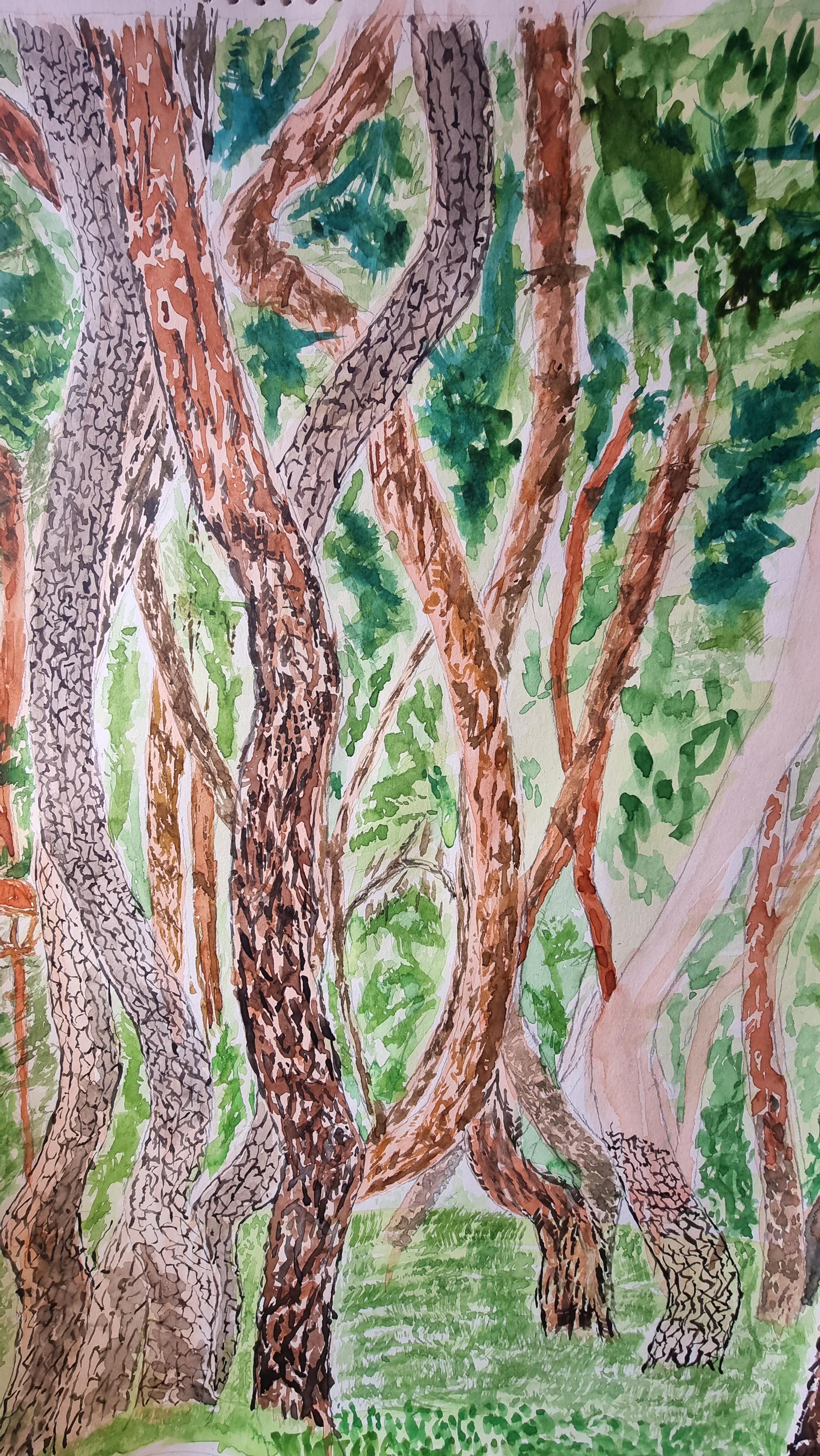 - 오후에는 스케치 연습도 좀 하고, 채색 연습도 좀 했다. 그림 연습을 할 때는 자주 쉬어야 할 듯하다. 조금 오래하면 대충 해지는 느낌이 든다. 그래서 조금씩 자주 하는 게 맞을 듯하다. 저녁이 되니 바람이 불면서 조금 쌀쌀한 느낌이다. 오늘 산책하면서 가져 온 편백나무 장작 중 몇 개로 군불을 때 봤는데, 화력은 별로 좋지 않는 것 같다. 대나무나 아카시아 나무가 화력이 좋고, 편백나무, 감나무는 화력으로는 별로다. 산책하면서 가져오는 장작들은 작은 방 만한 올돌 부엌 공간에 쌓아 놓았다가 몇 년 후에 사용할 생각이다. 그전에 사용할 땔감은 많이 있다.