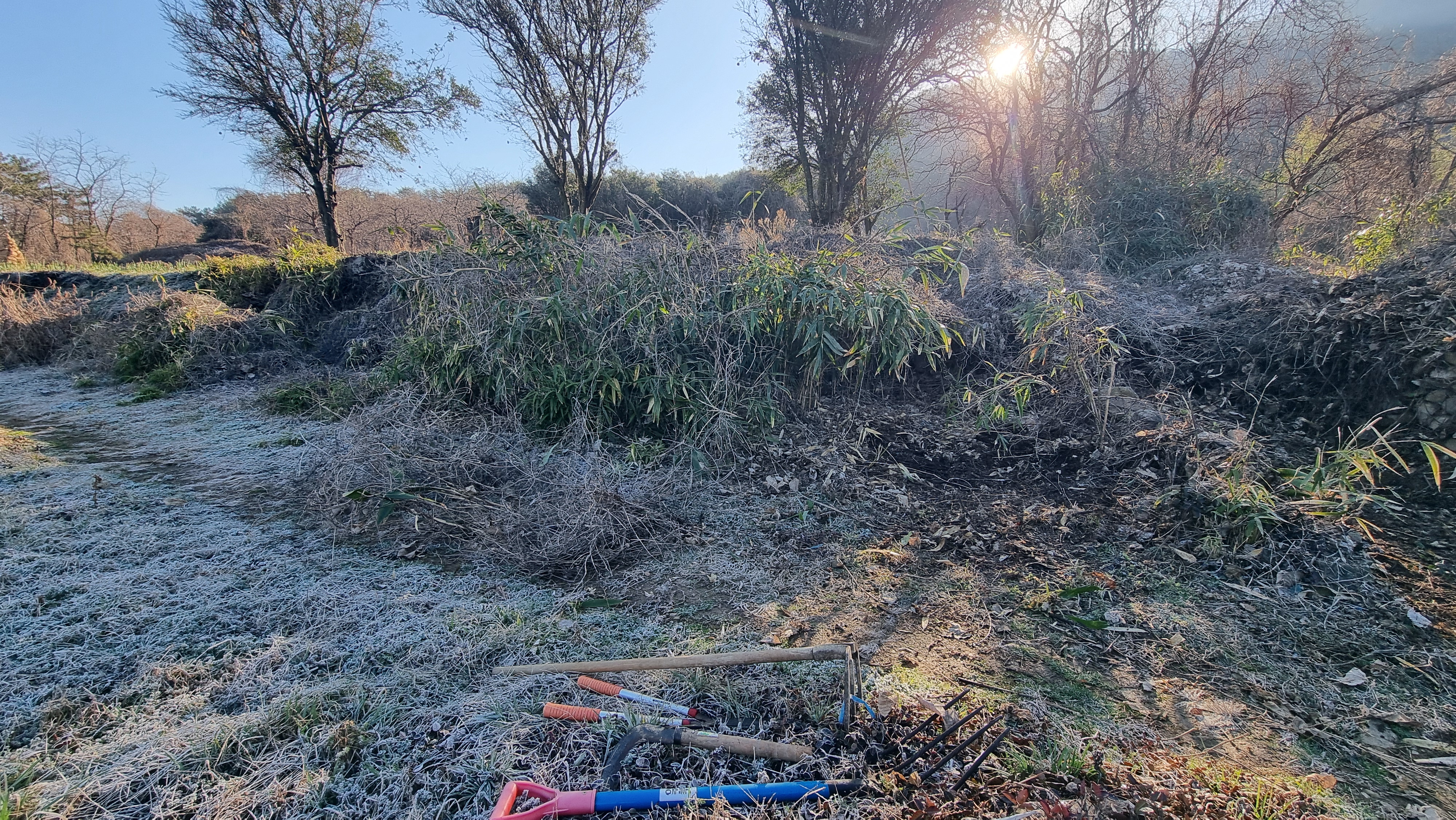 ※ 2024.02.17 - 남해, 토(맑음) : 자투리 땅 밭 만들기, 이웃집 퇴비 수령, 도로 보수 등.