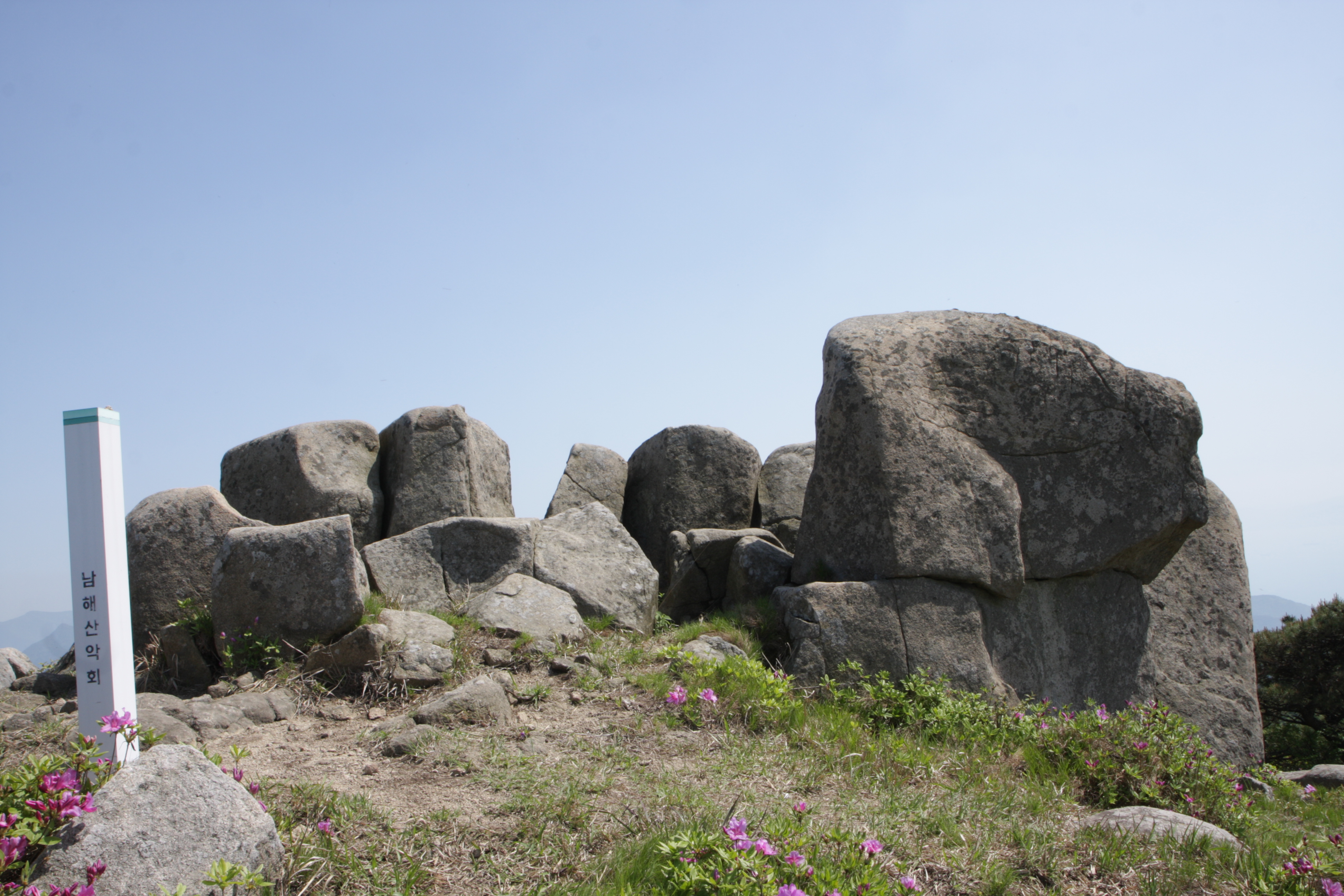 언제나 정상에는 사람들이 있다. 하지만 손가락으로 셀 수 있을 정도의 사람이다. 아주 젊은 여자 세 명이서 그 나이에 맞게 웃고, 행동하면서 사진을 찍고 있었는데, 그 중 한 사람에게 부탁해 나도 정상석을 배경으로 한 장의 사진을 남겼다.