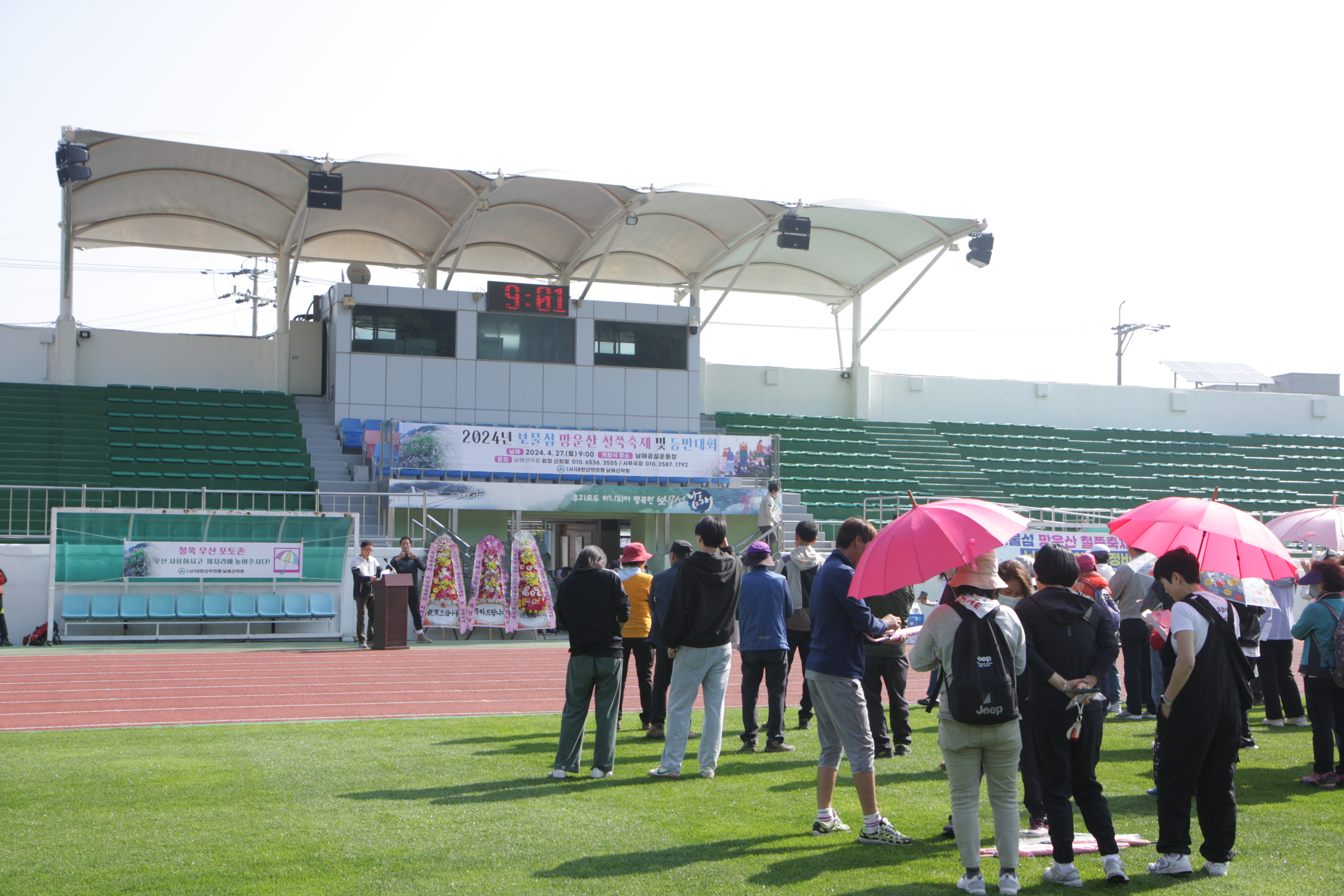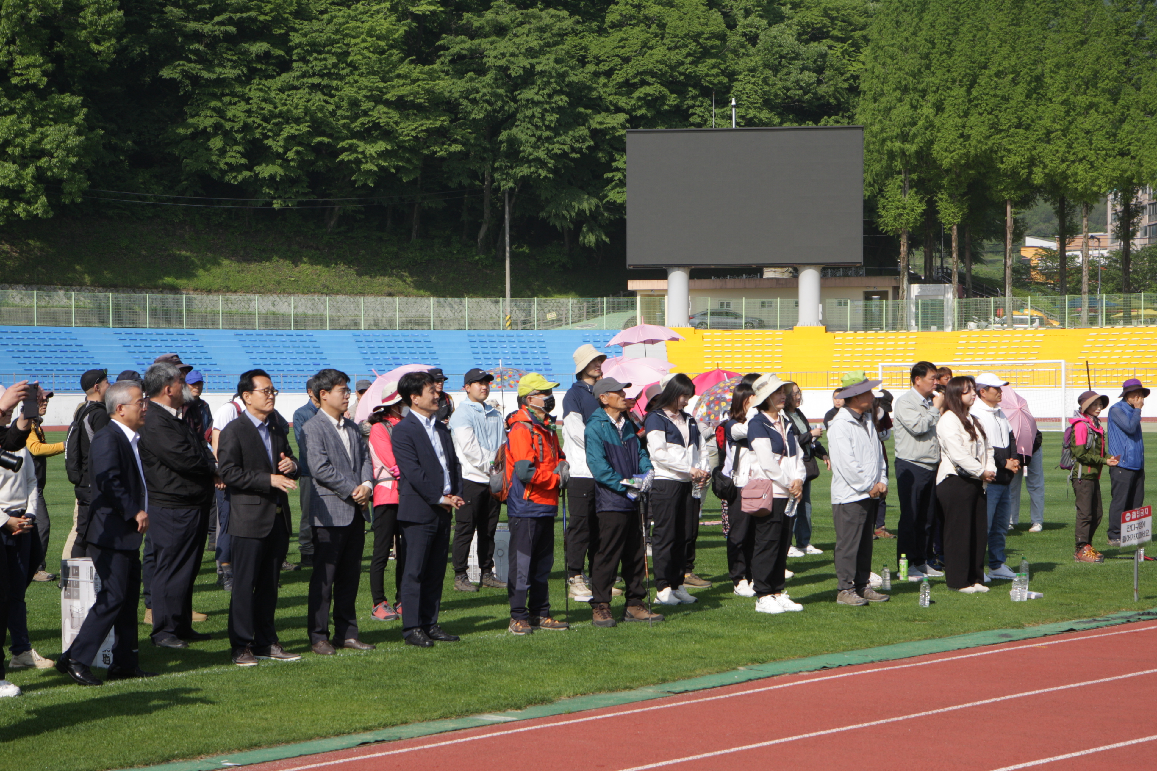 개회선언을 하고, 국민의례를 하고, 내빈 소개를 하고, 대회사를 하고, 축사를 하고....등산대회 행사인 만큼 간단한 몸풀기 체조도 하고.....